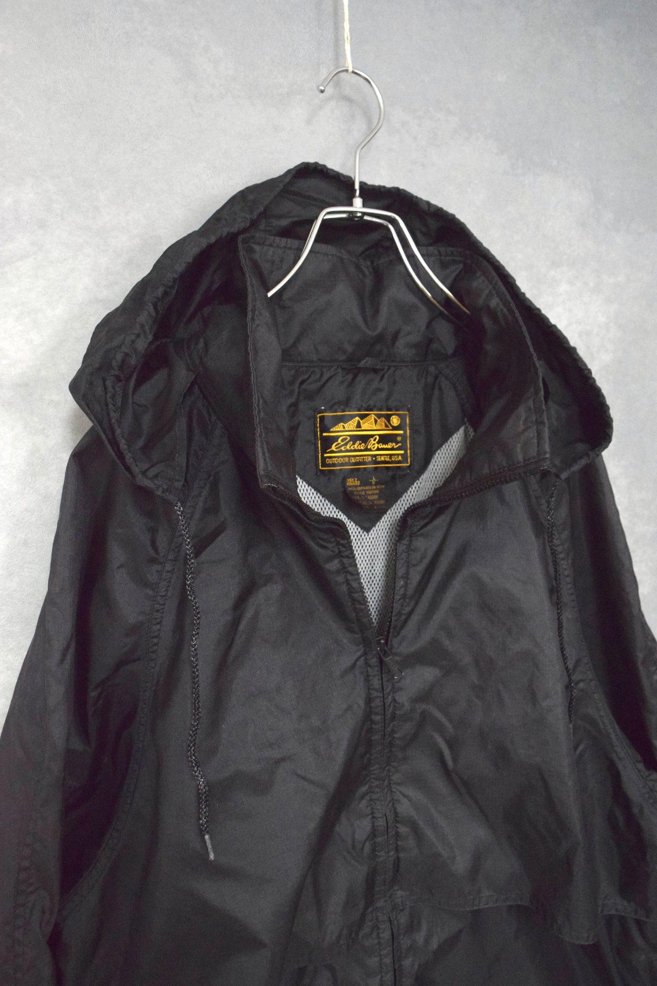80s " eddie bauer " black rip stop nylon 2way jacket / size L