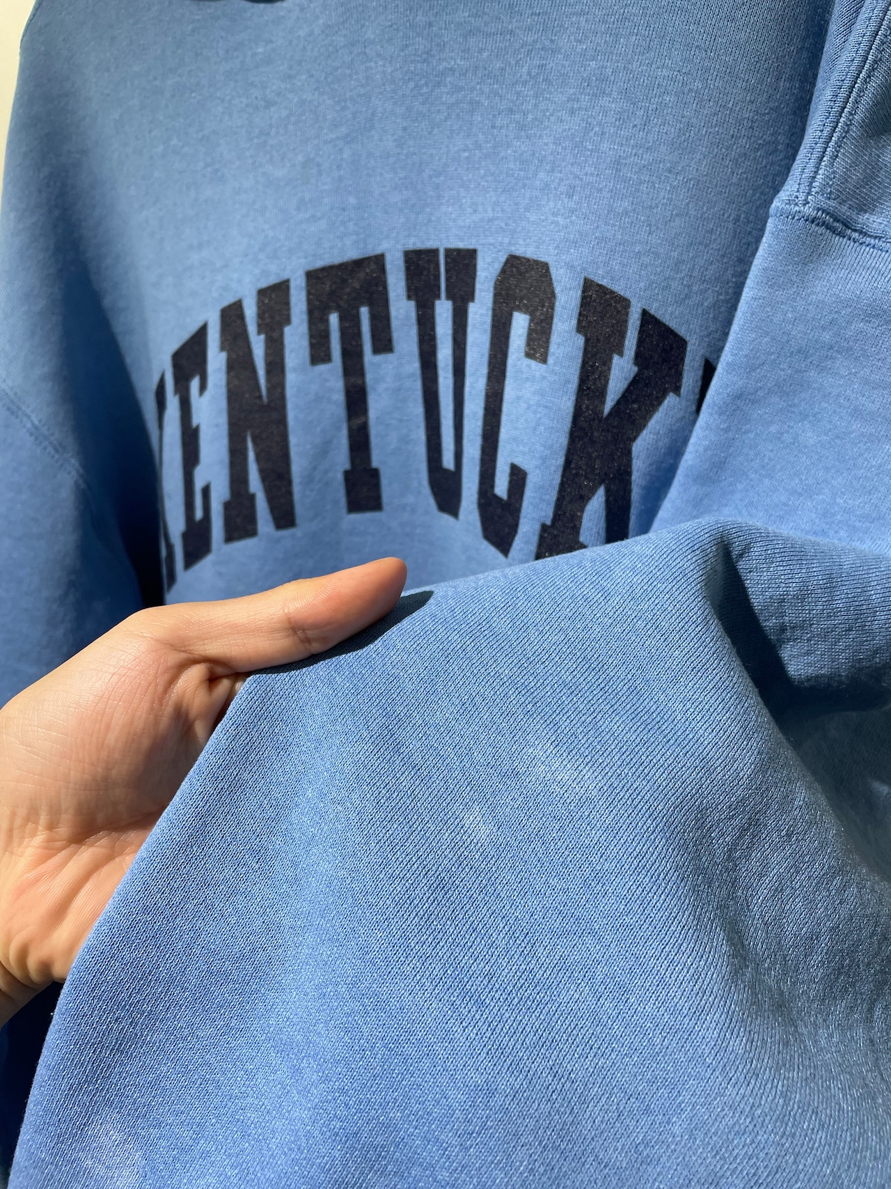 前面左肩、胸部中央、ポケット左手口、ポケット上部、右袖先、右袖リブに若干の薄汚れがあります。