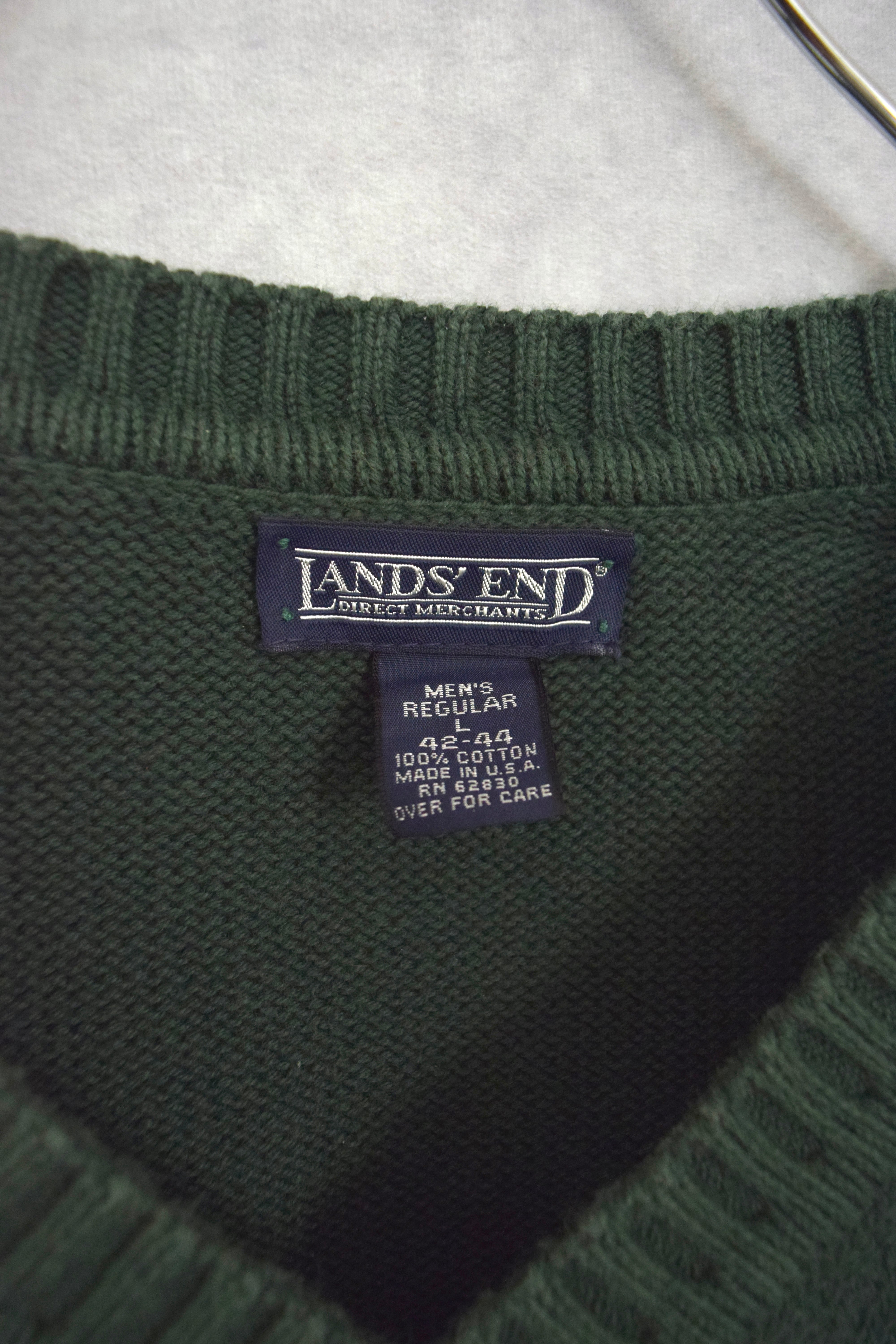 90s " lands'end " cotton V-neck knit / made in usa / size L