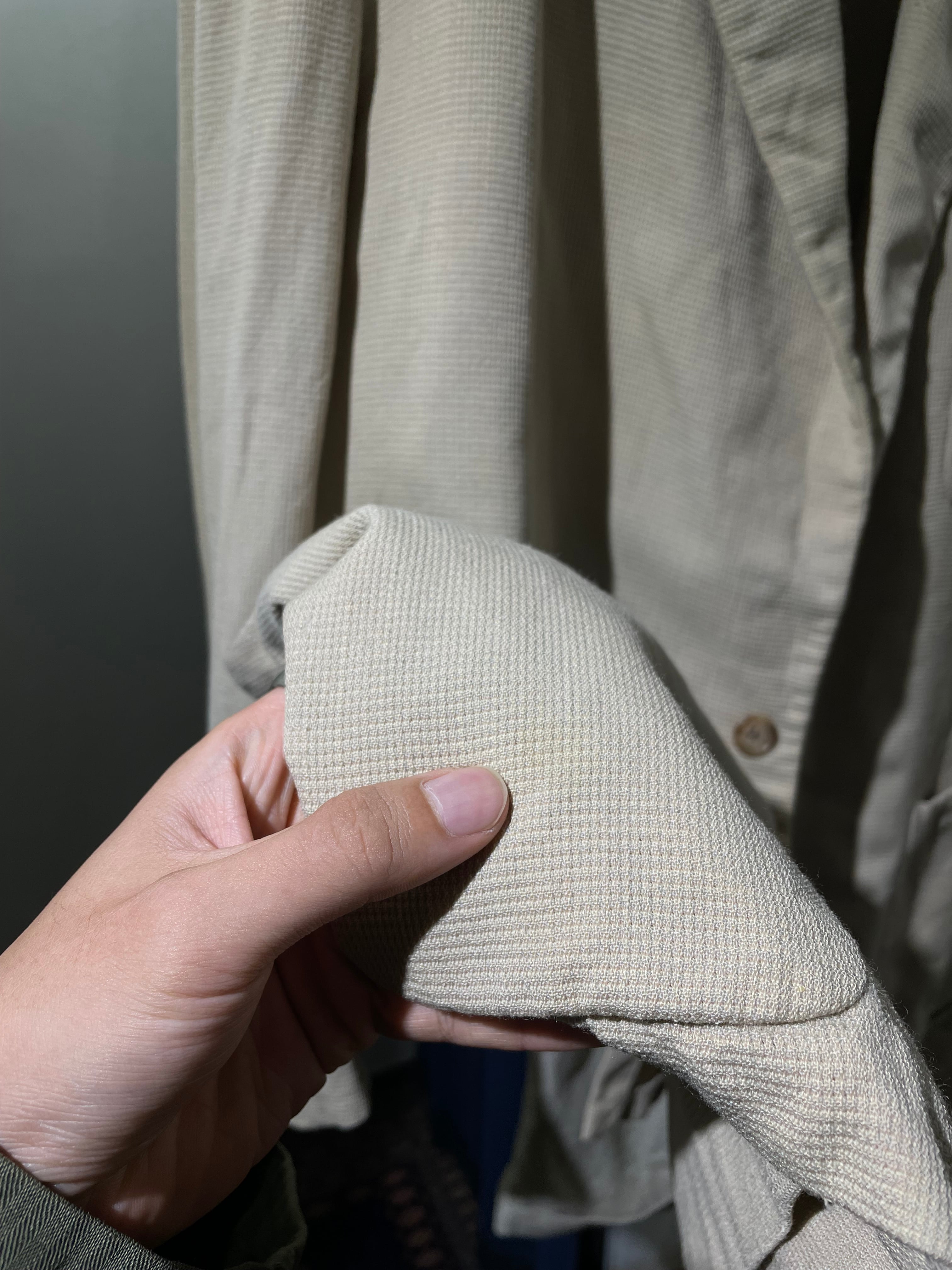生地の色味はライトベージュですが、近くで良く見ると3種類の糸から作られています。