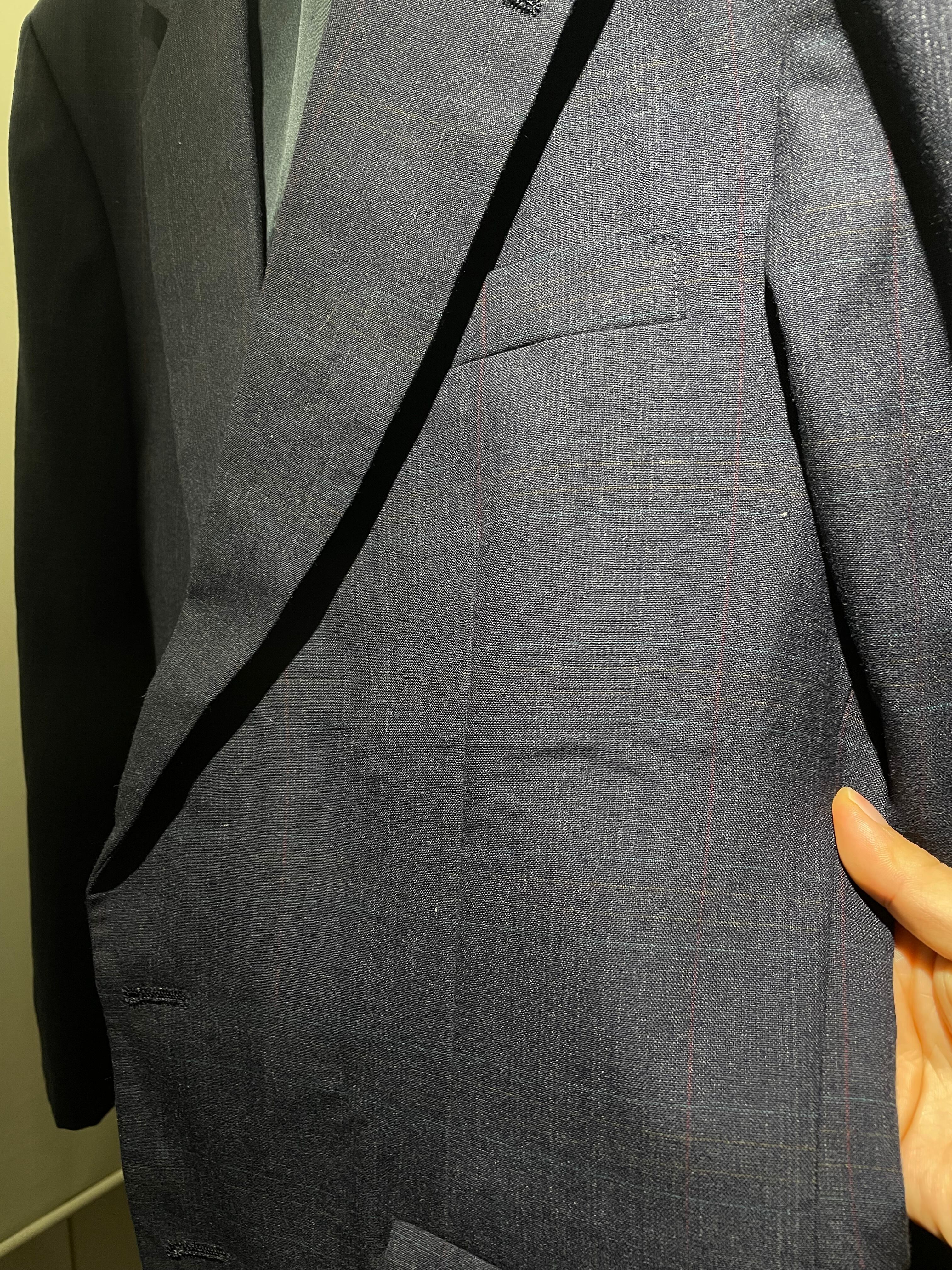 70年代らしいやや大ぶりなラペルも形が綺麗で主張も控えめ。