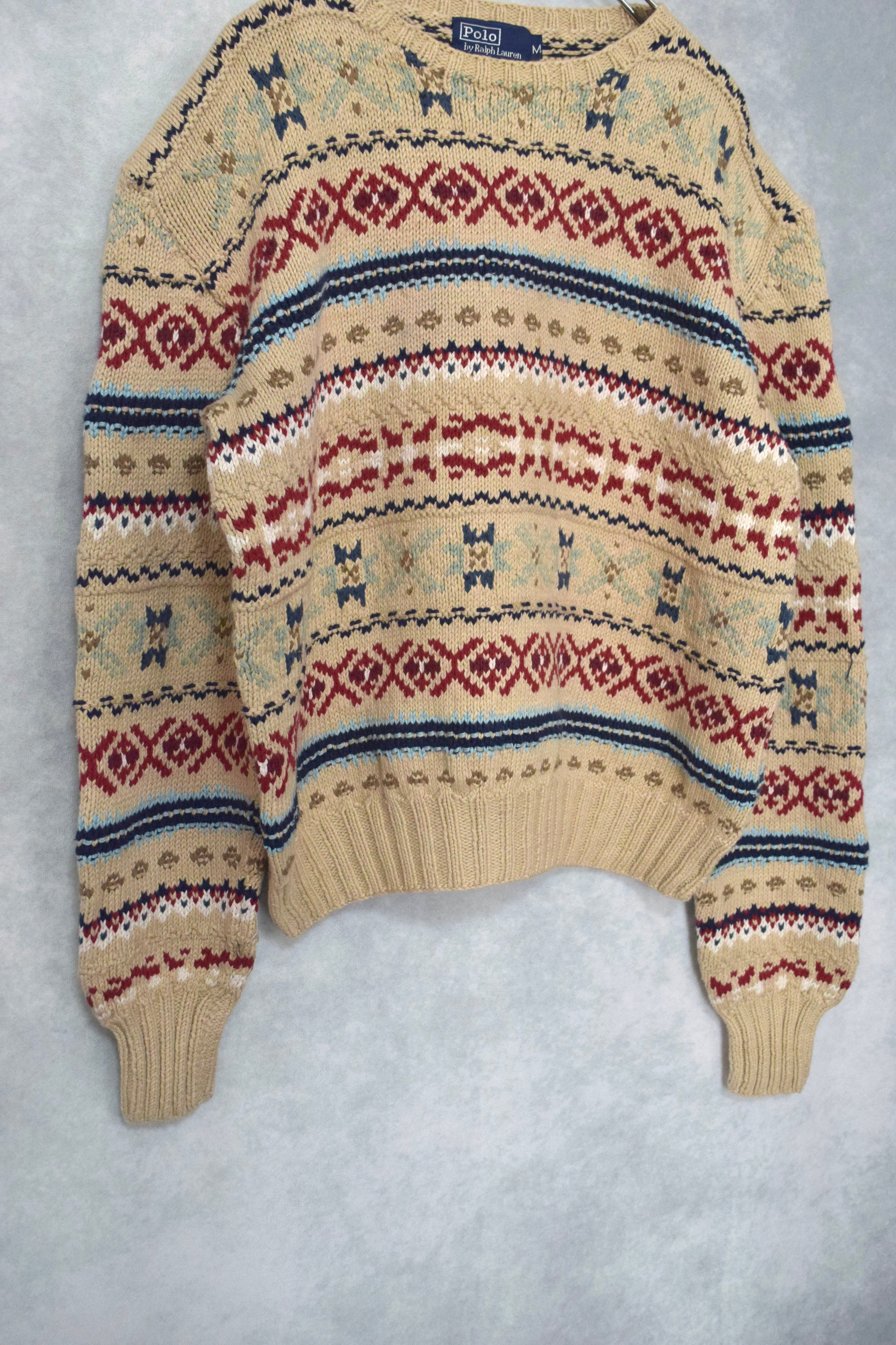 90s " polo ralph lauren " cotton HAND knit / made in great britain / size m