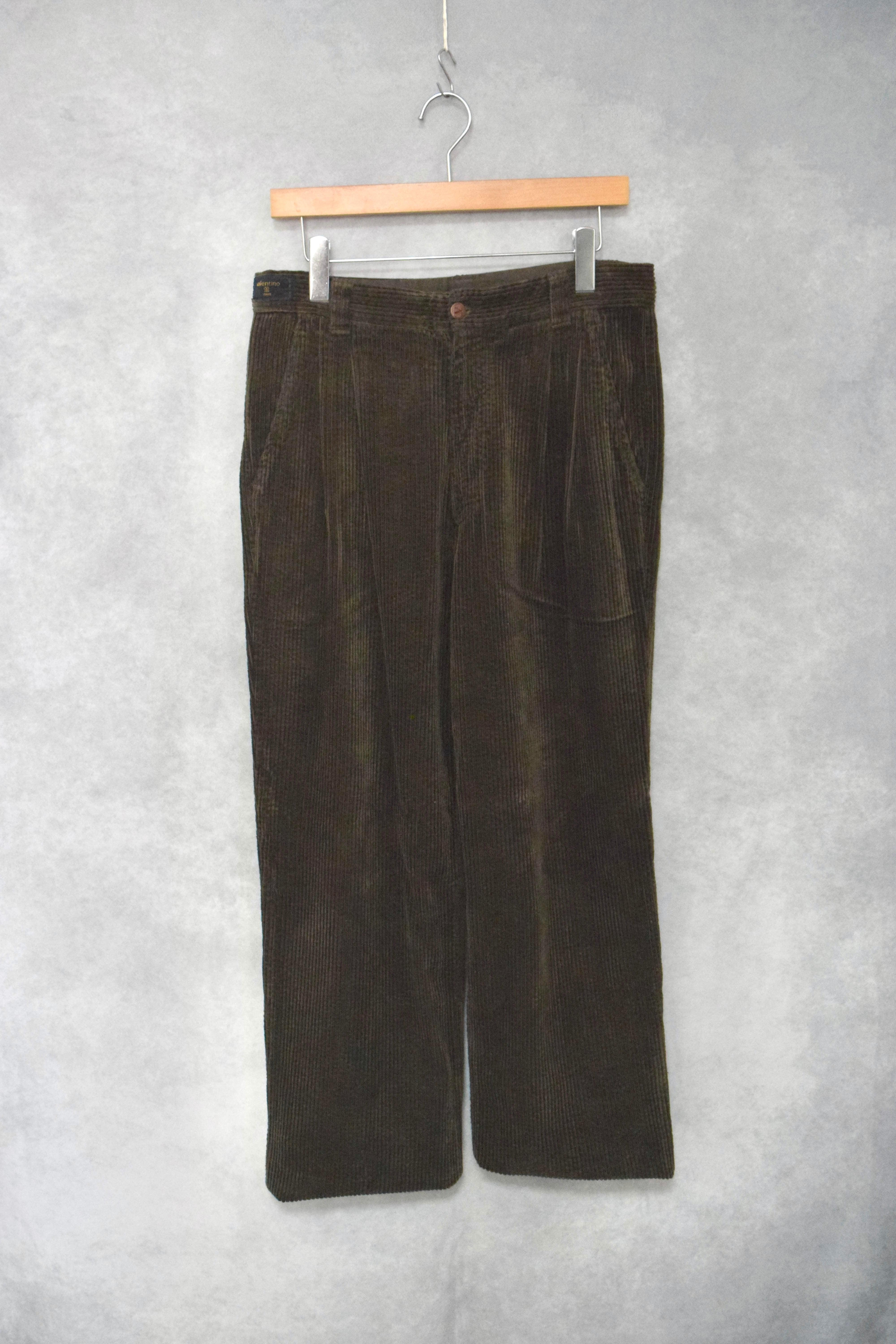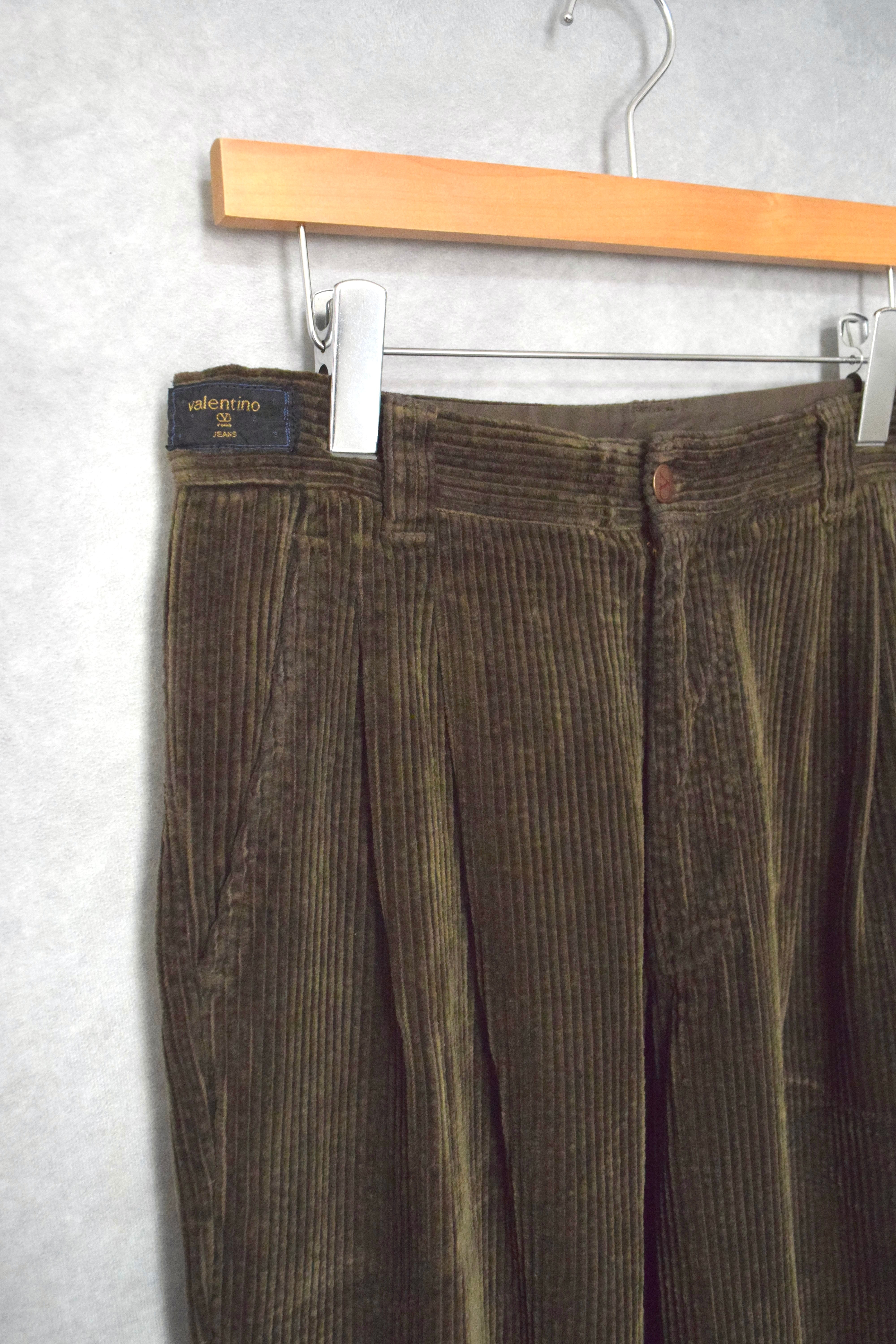 90s " valentino " wide corduroy two tuck slacks / made in italy / size 33 × 29