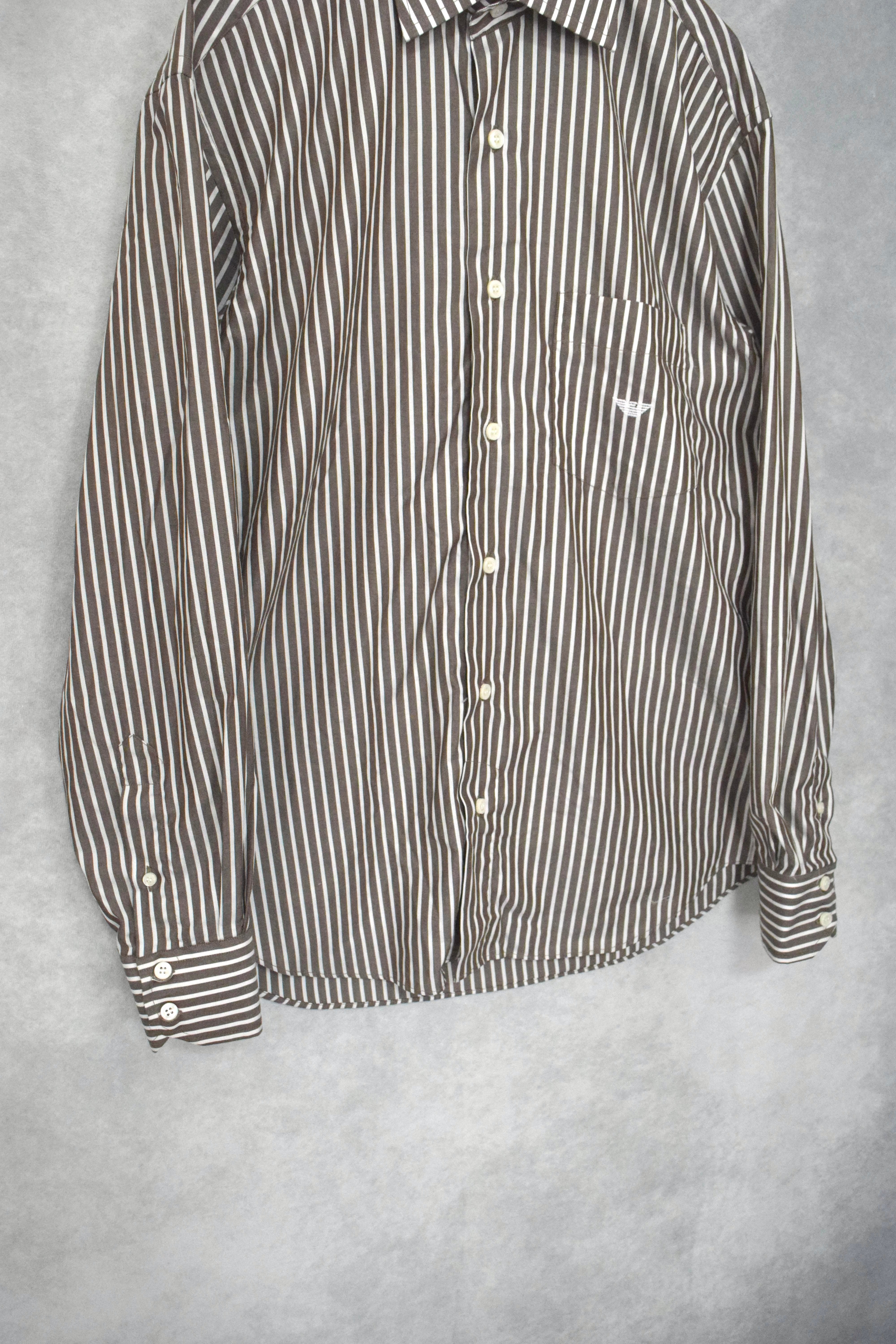 90s " giorgio armani " stripe cotton shirt / made in italy / size m