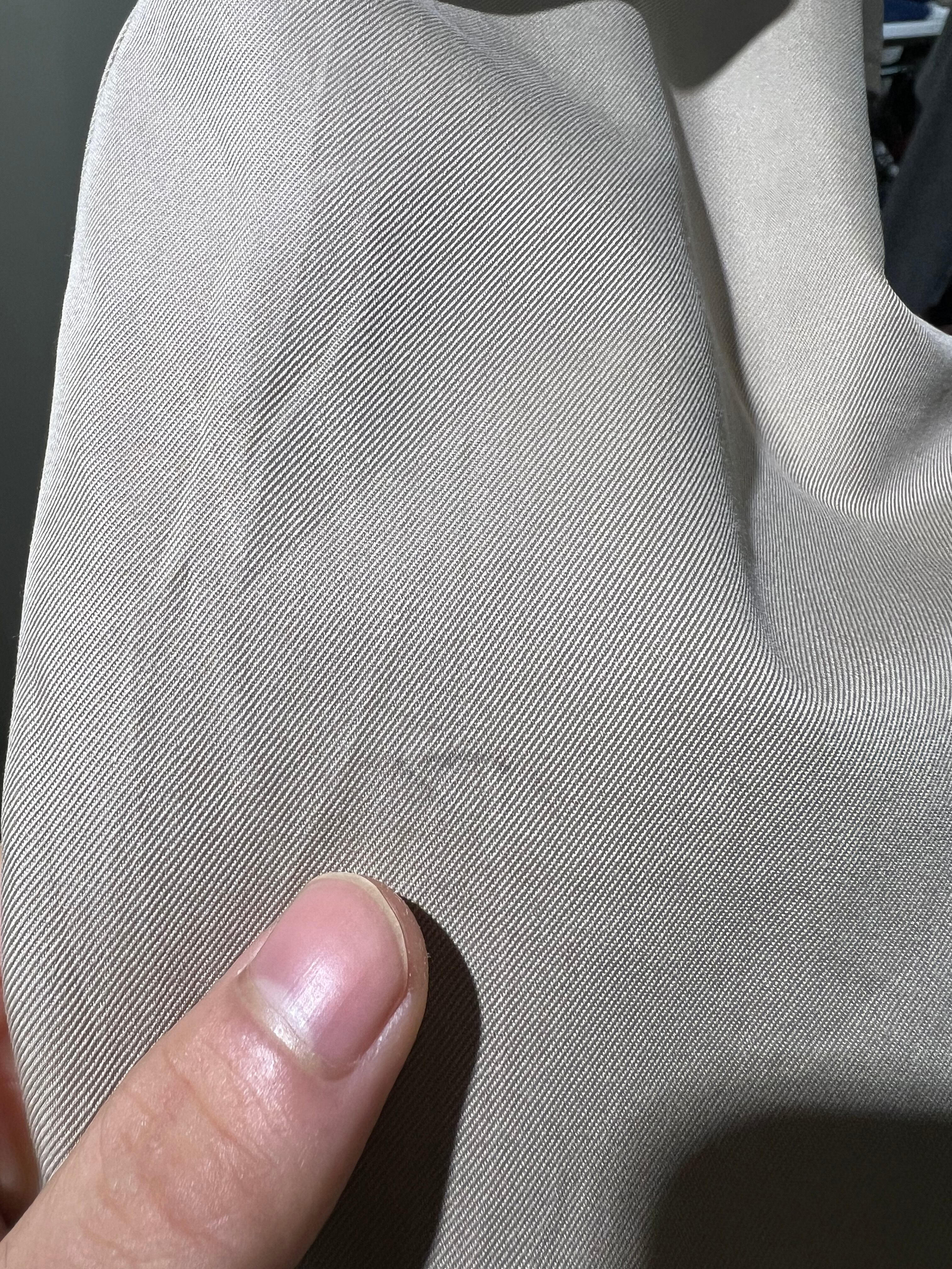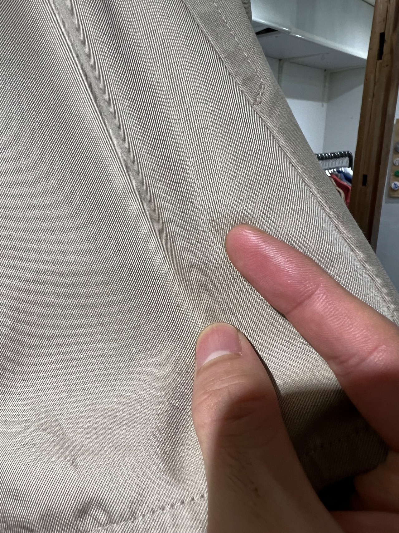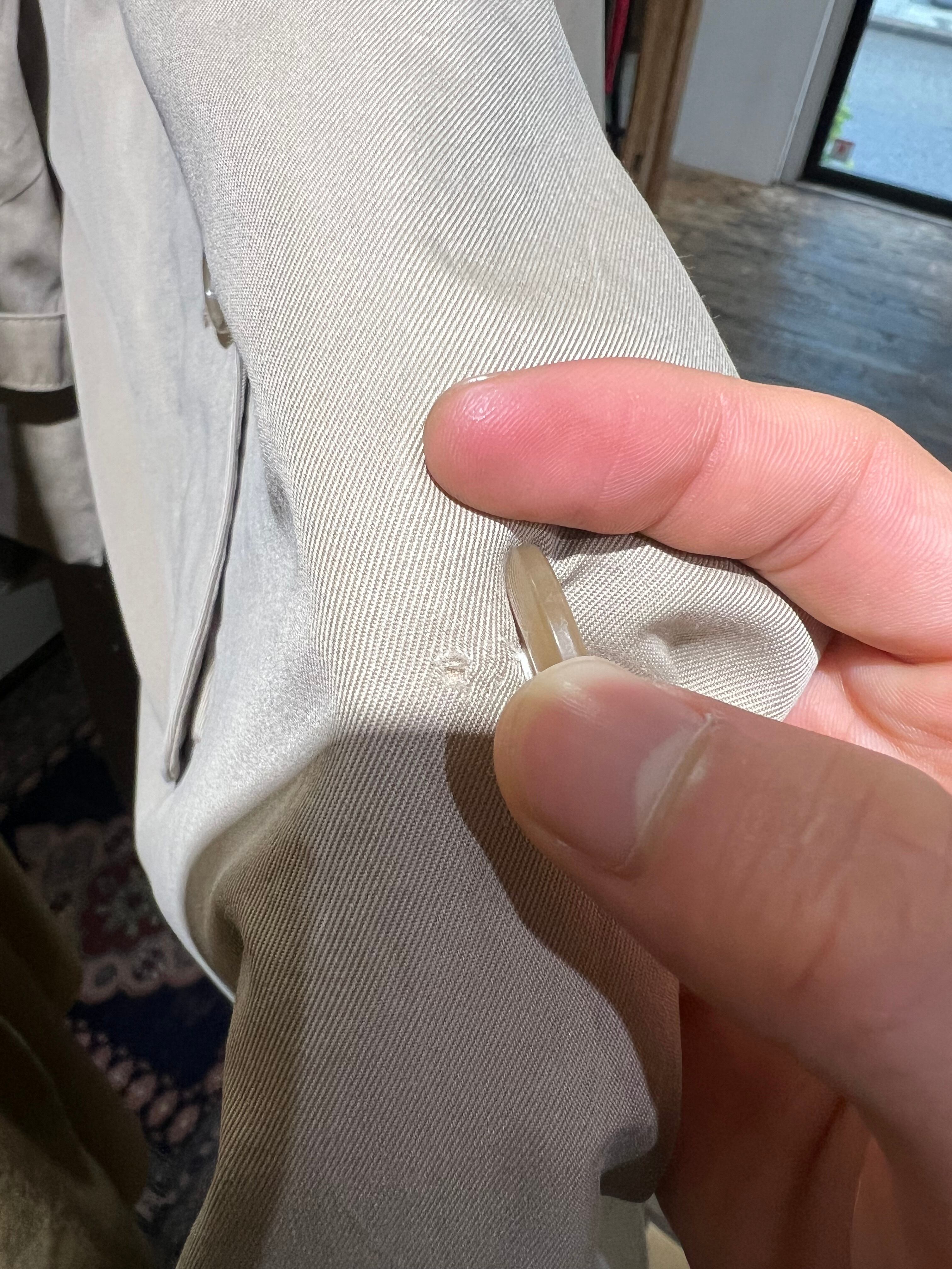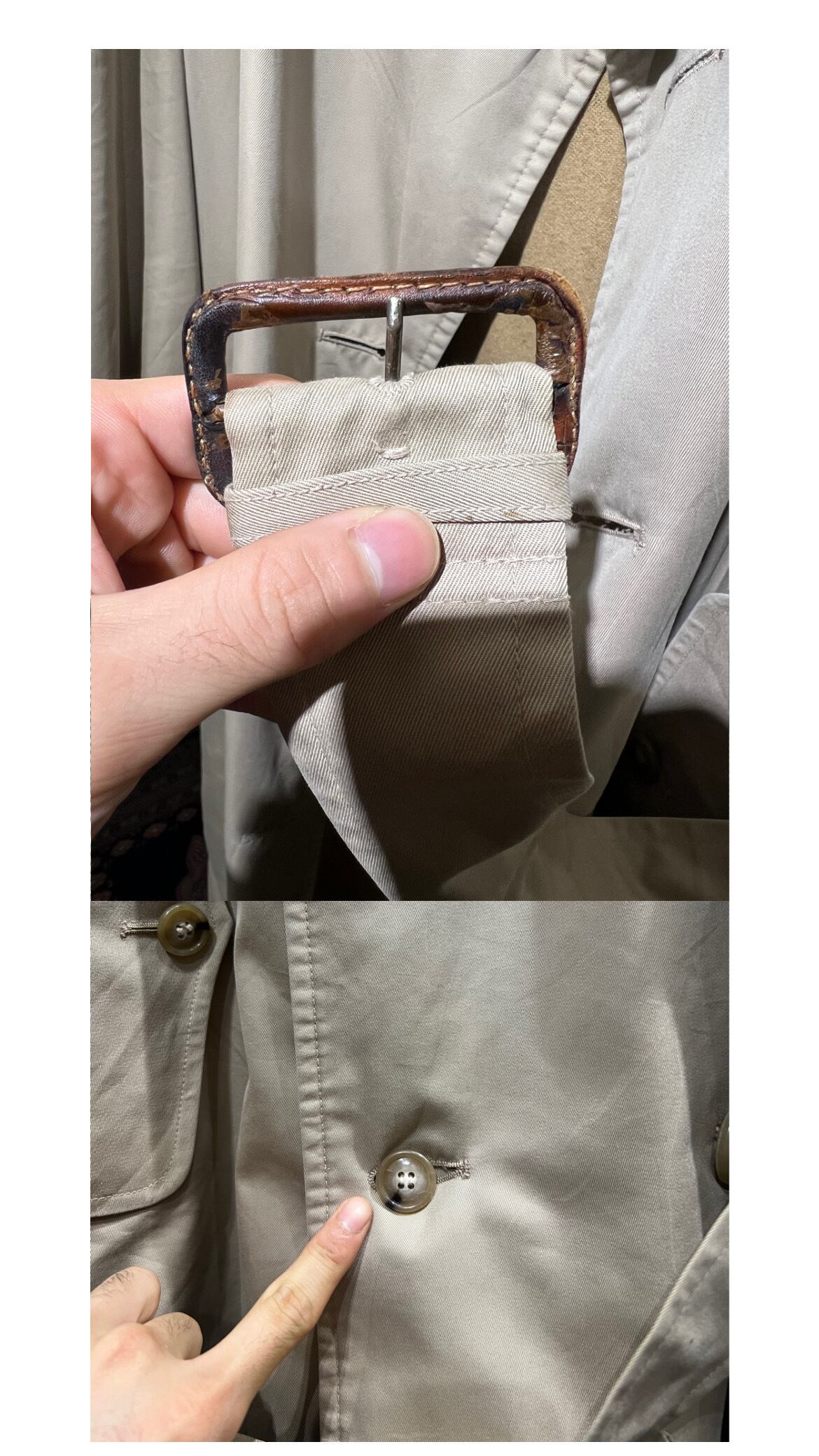 腰ベルト、左袖、背中に薄汚れがあります。 予備ボタンのあった位置、フロント右1番下ボタン裏に小穴がありますが着用に問題ありません。