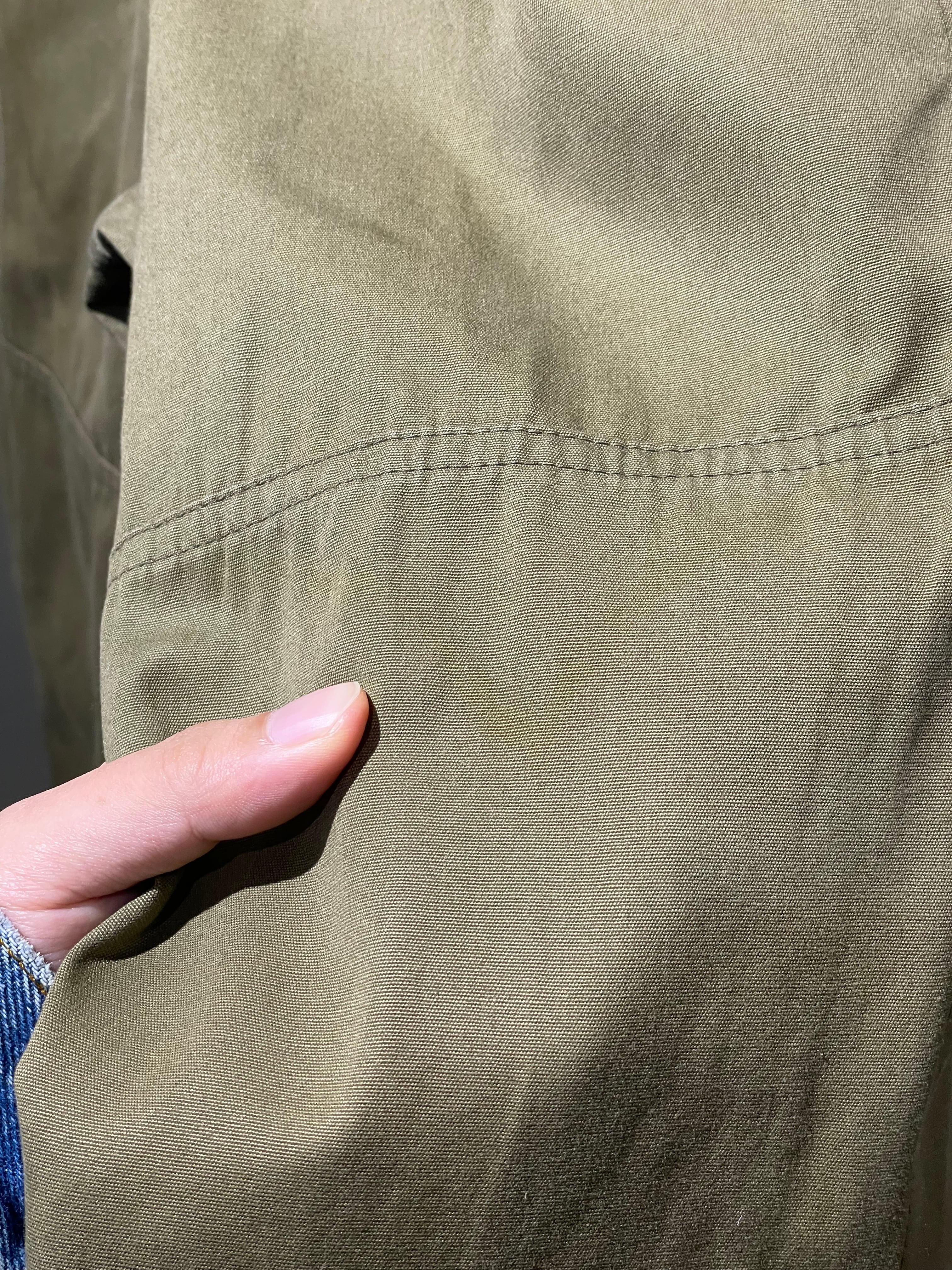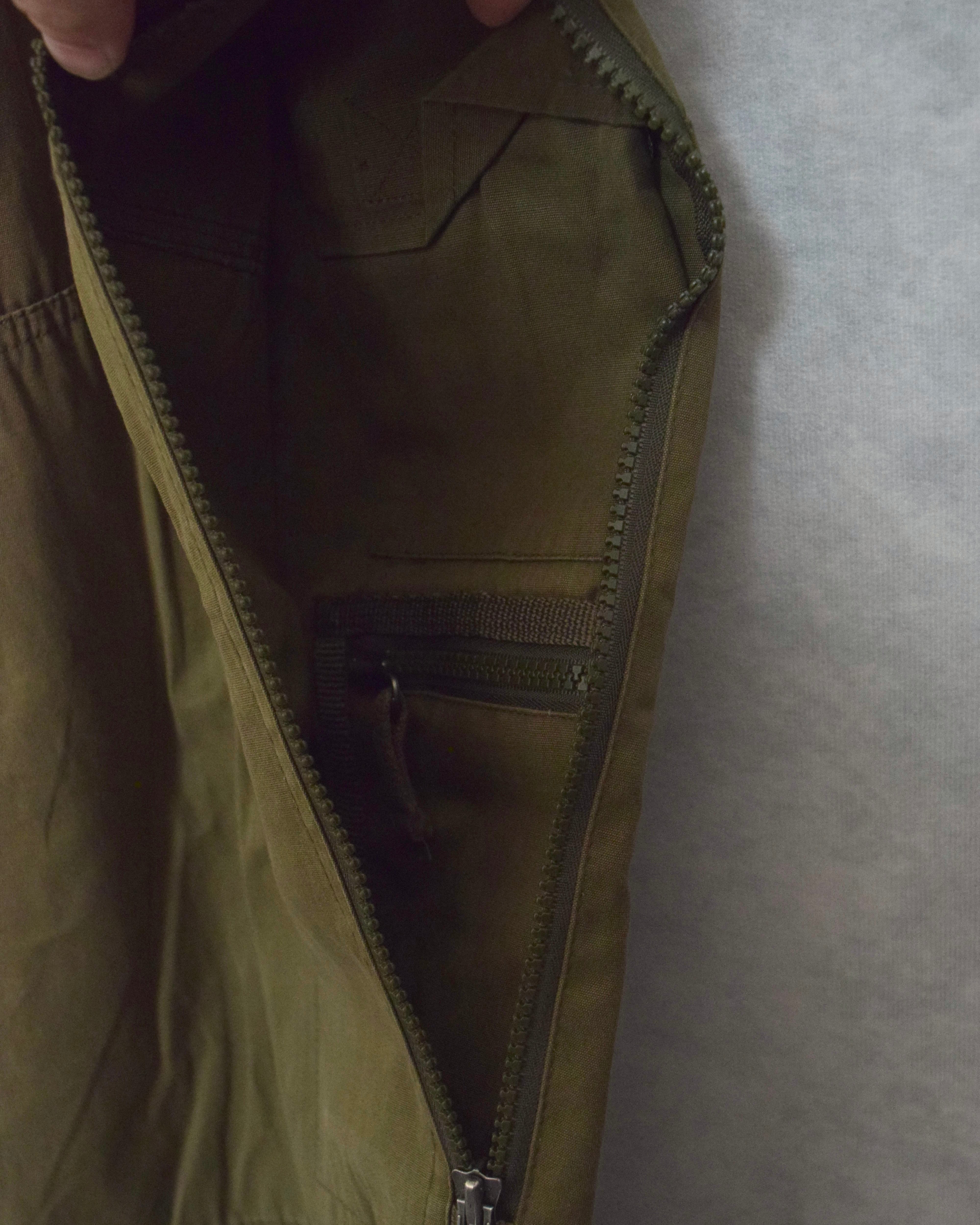 特徴的な両腿のジップを開くと中には2つのポケット。