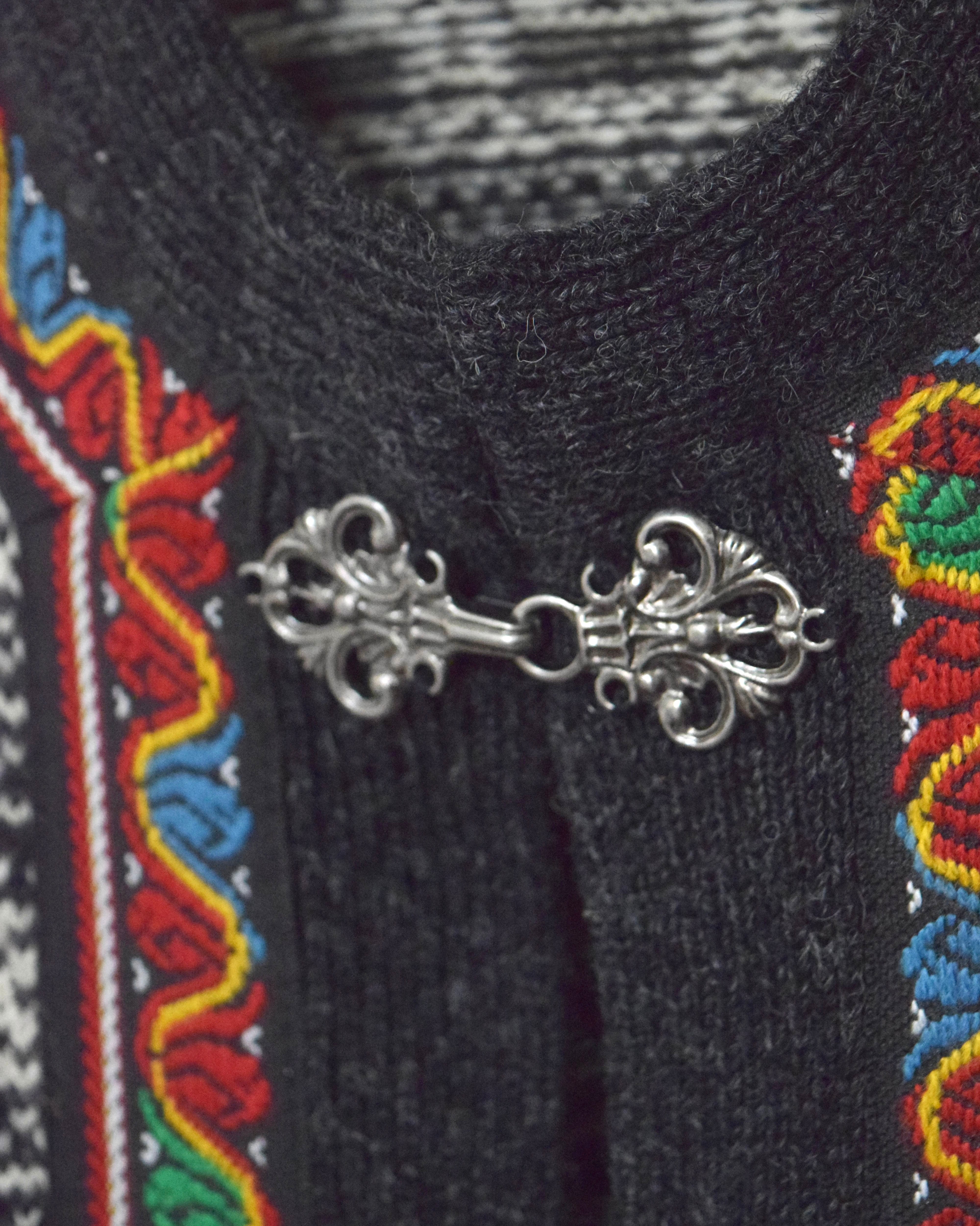 ノルディックパターンの中性的な見た目にチャコールグレーを使うことで非常に引き締まったルックスになっています。