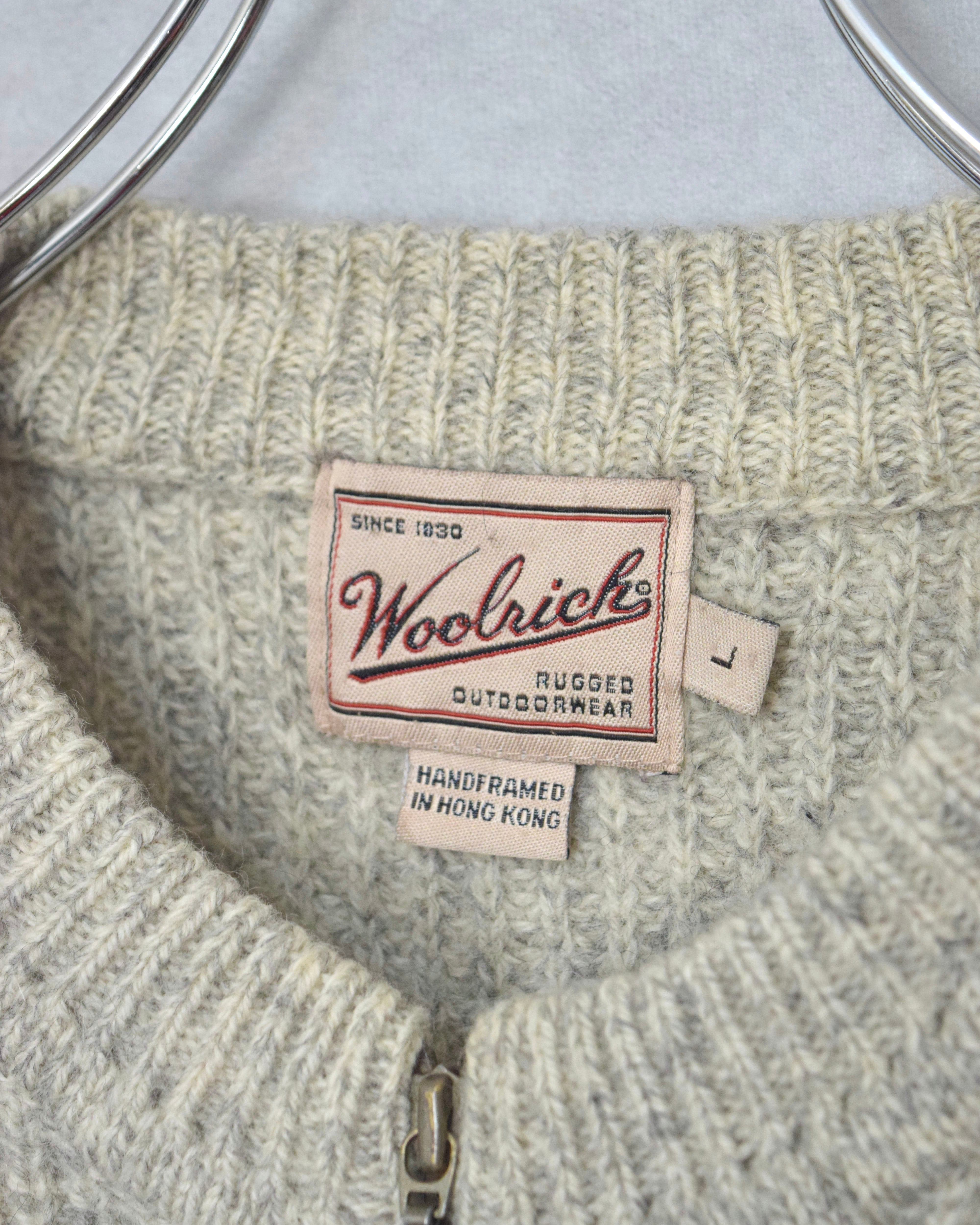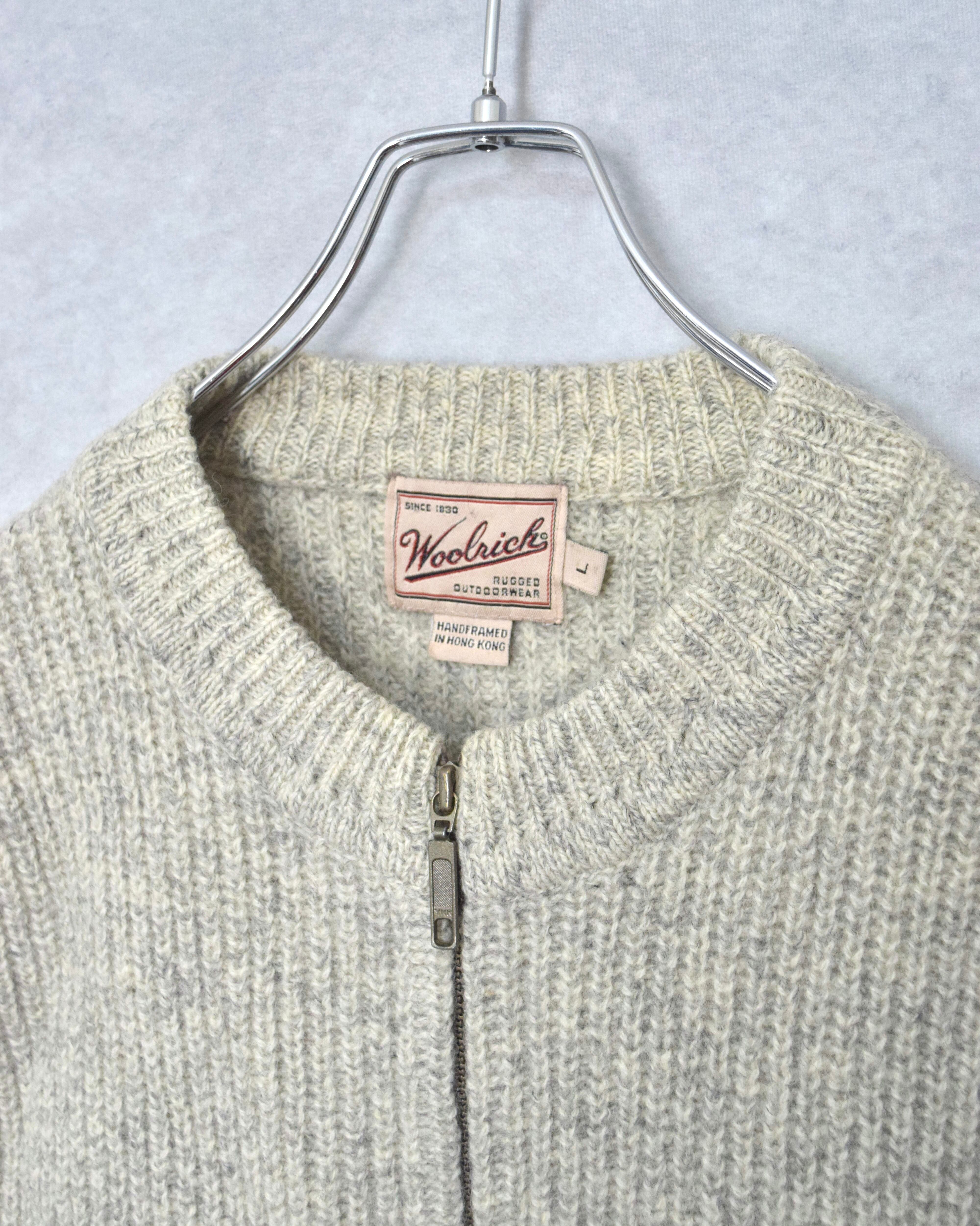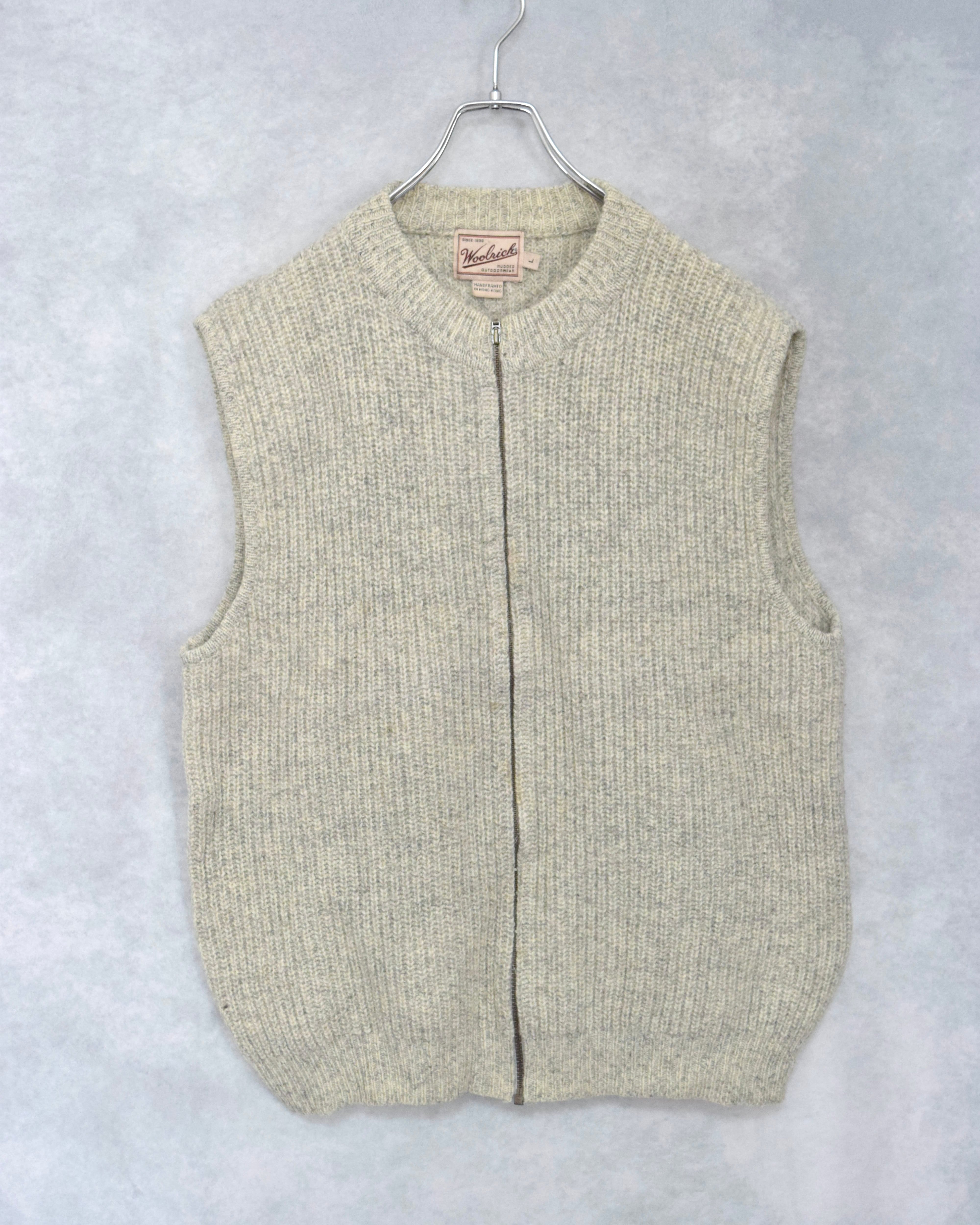 90s " woolrich " wool no collar HAND knit vest / size L