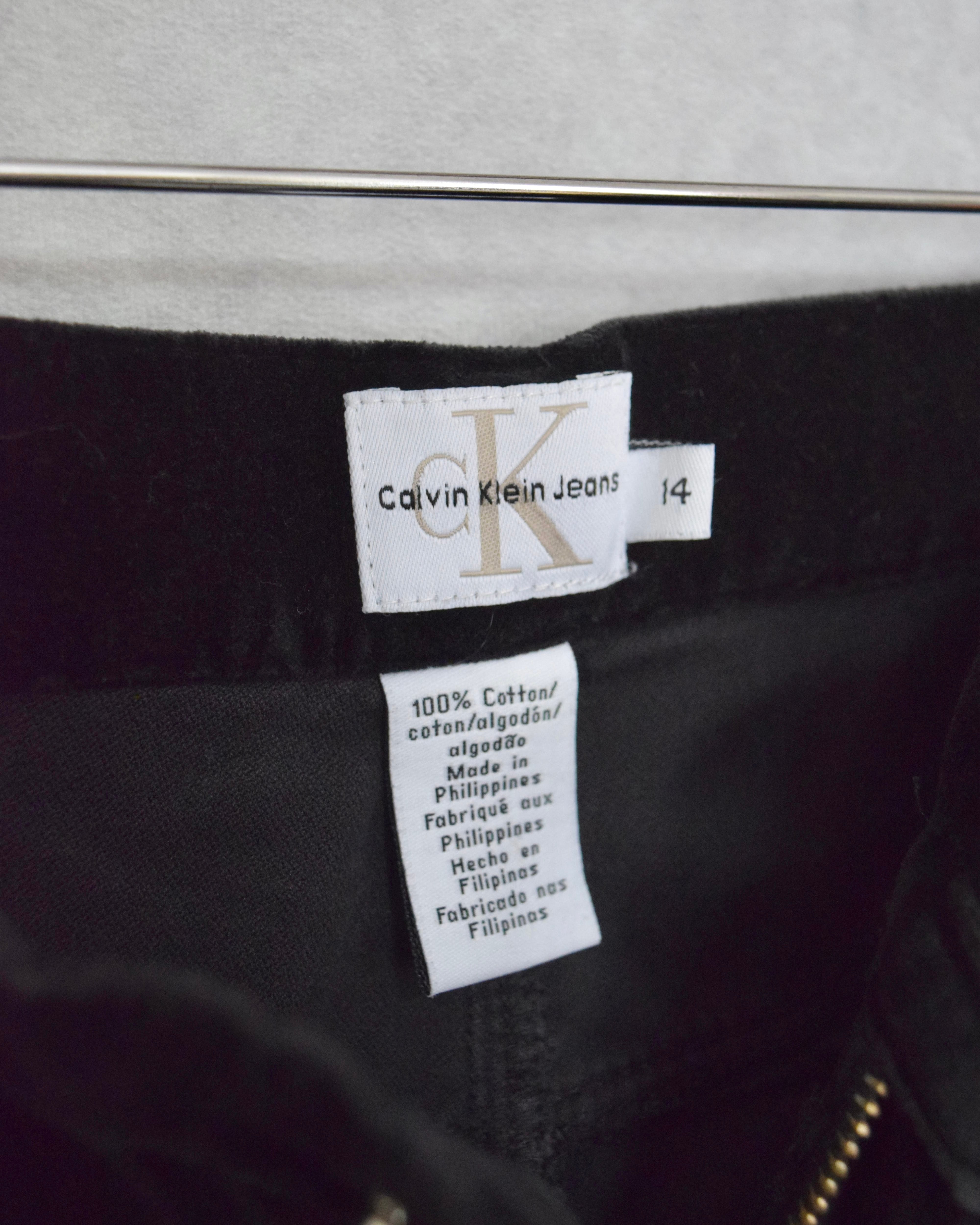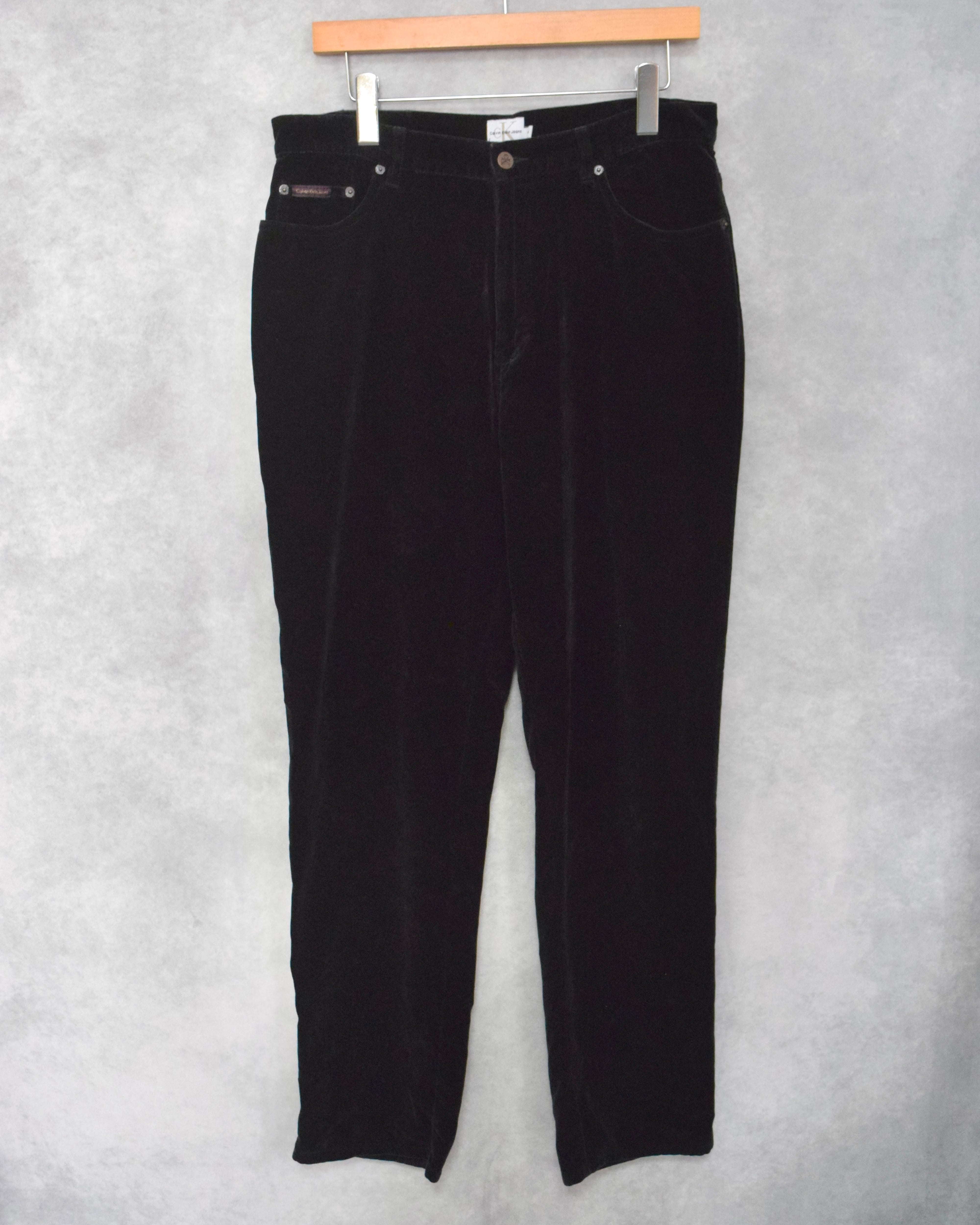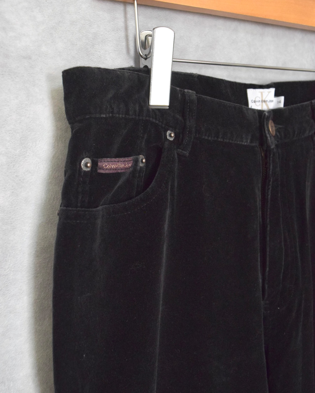 90年代頃のカルバンクラインのブラックベロアテーパードパンツ。