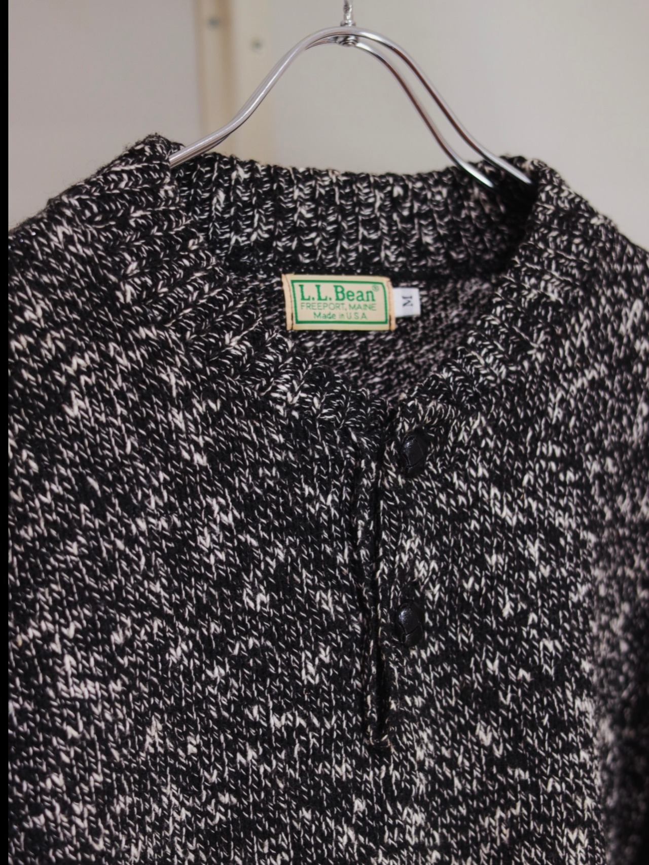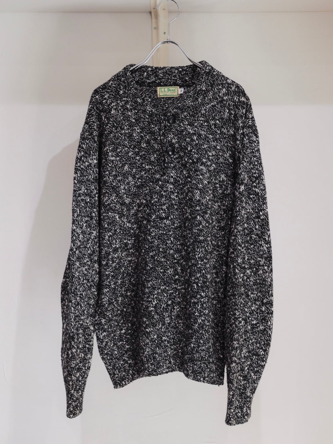 80s " L.L.bean " henley neck wool knit / made in usa / size m