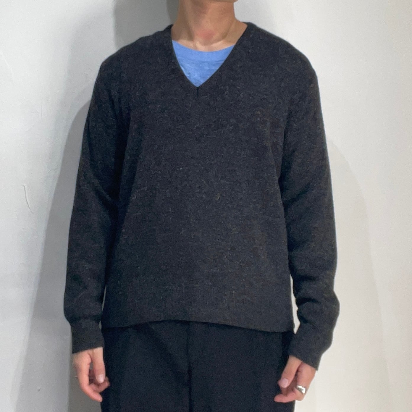 合わせるアイテムによって表情も変わってくるVネックニット。