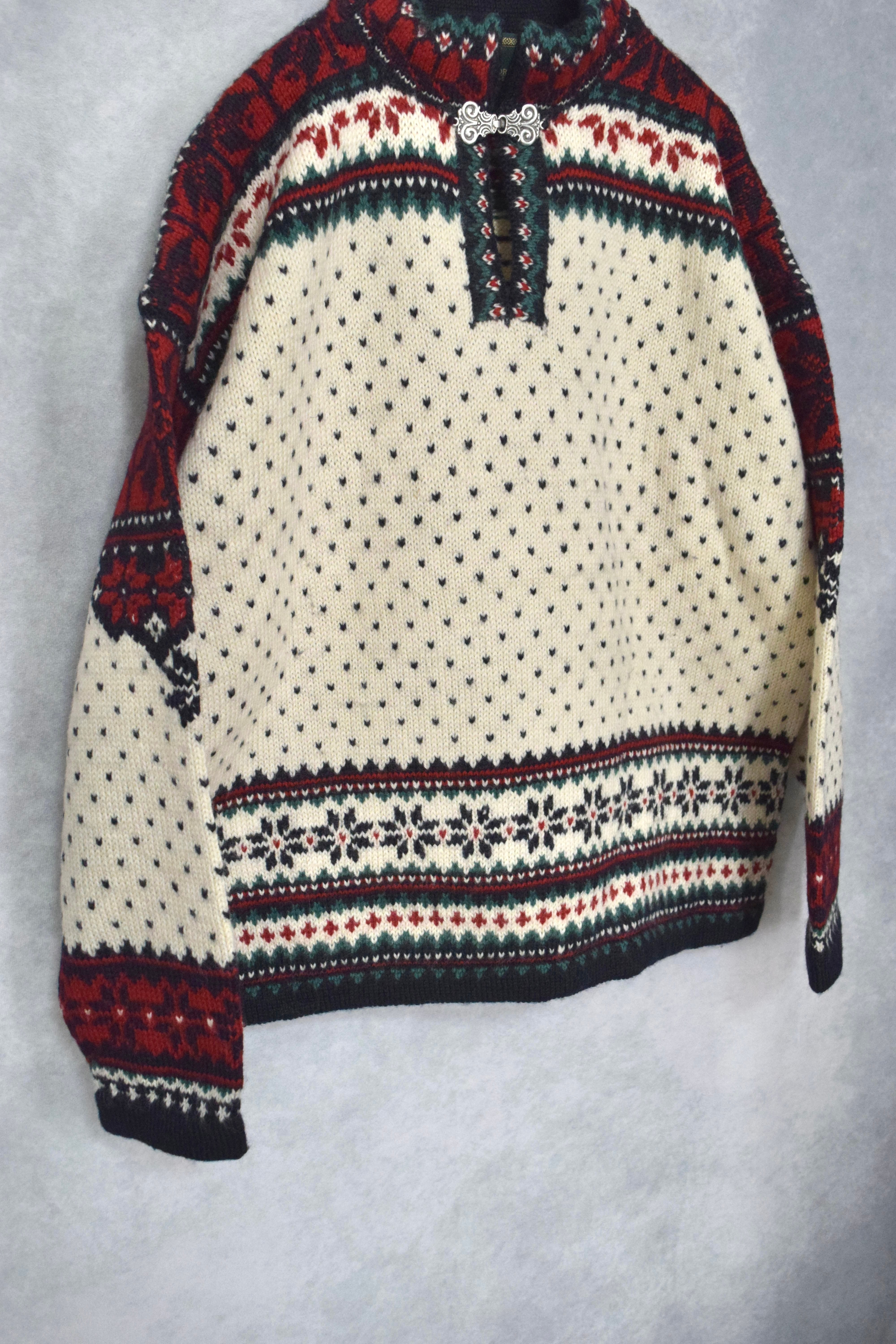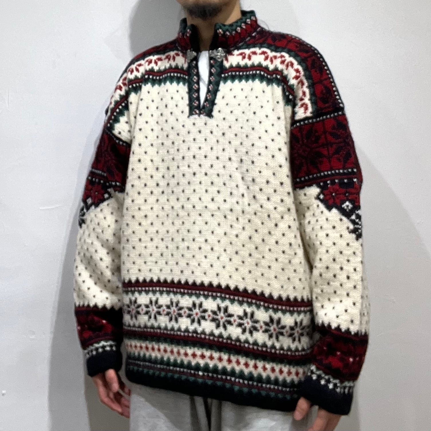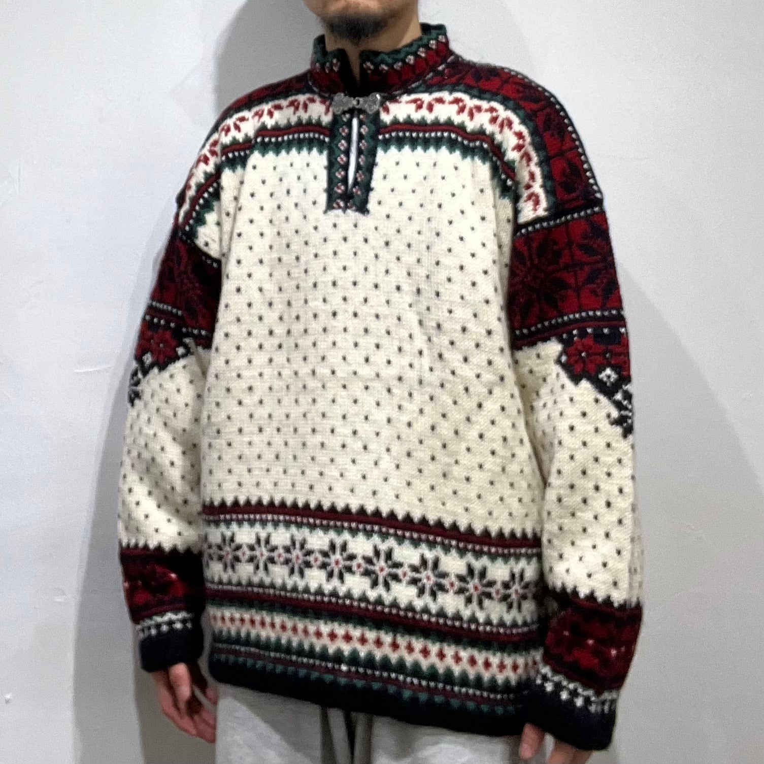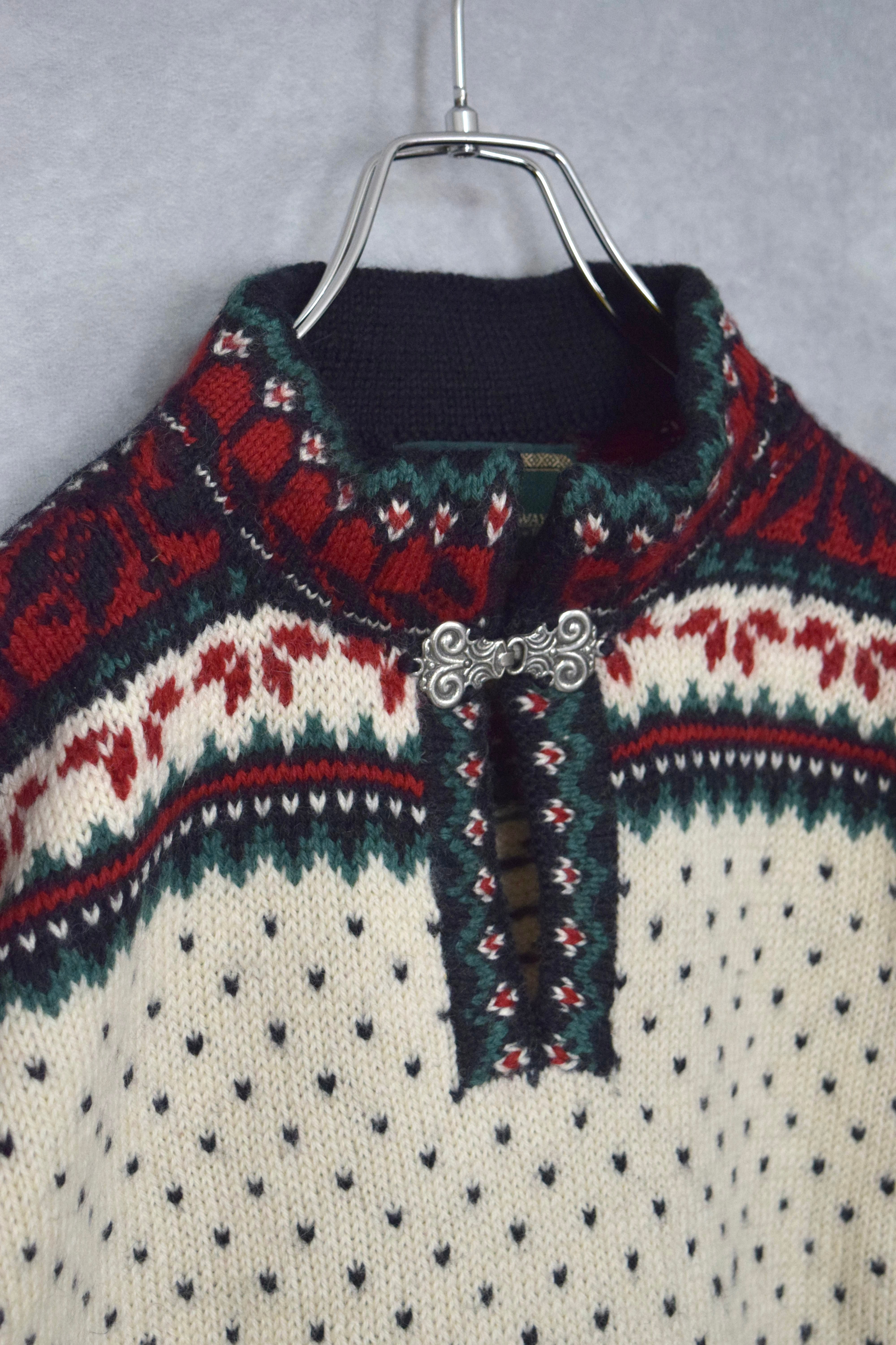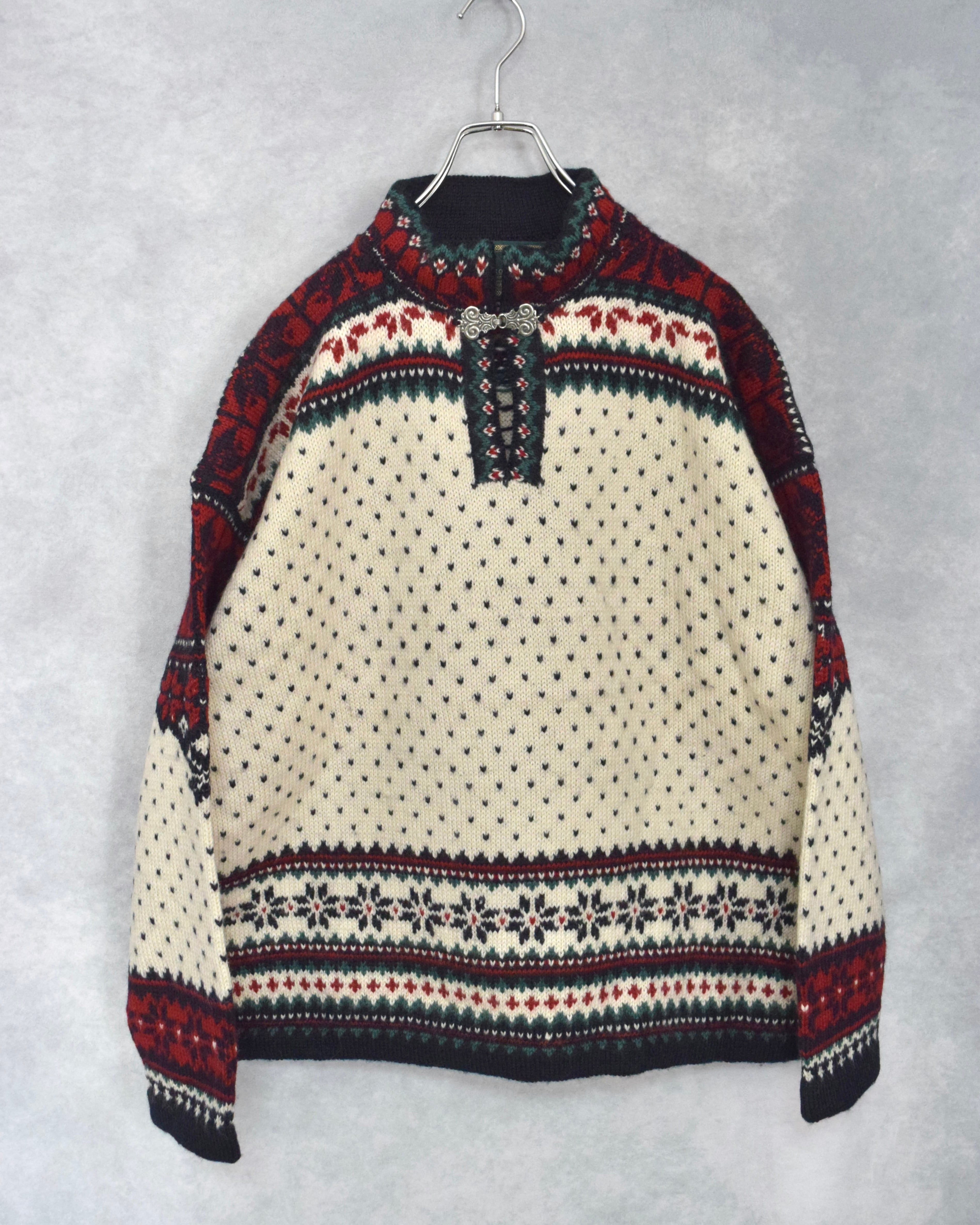ダーレオブノルウェイのウールスタンドカラープルオーバーニット。