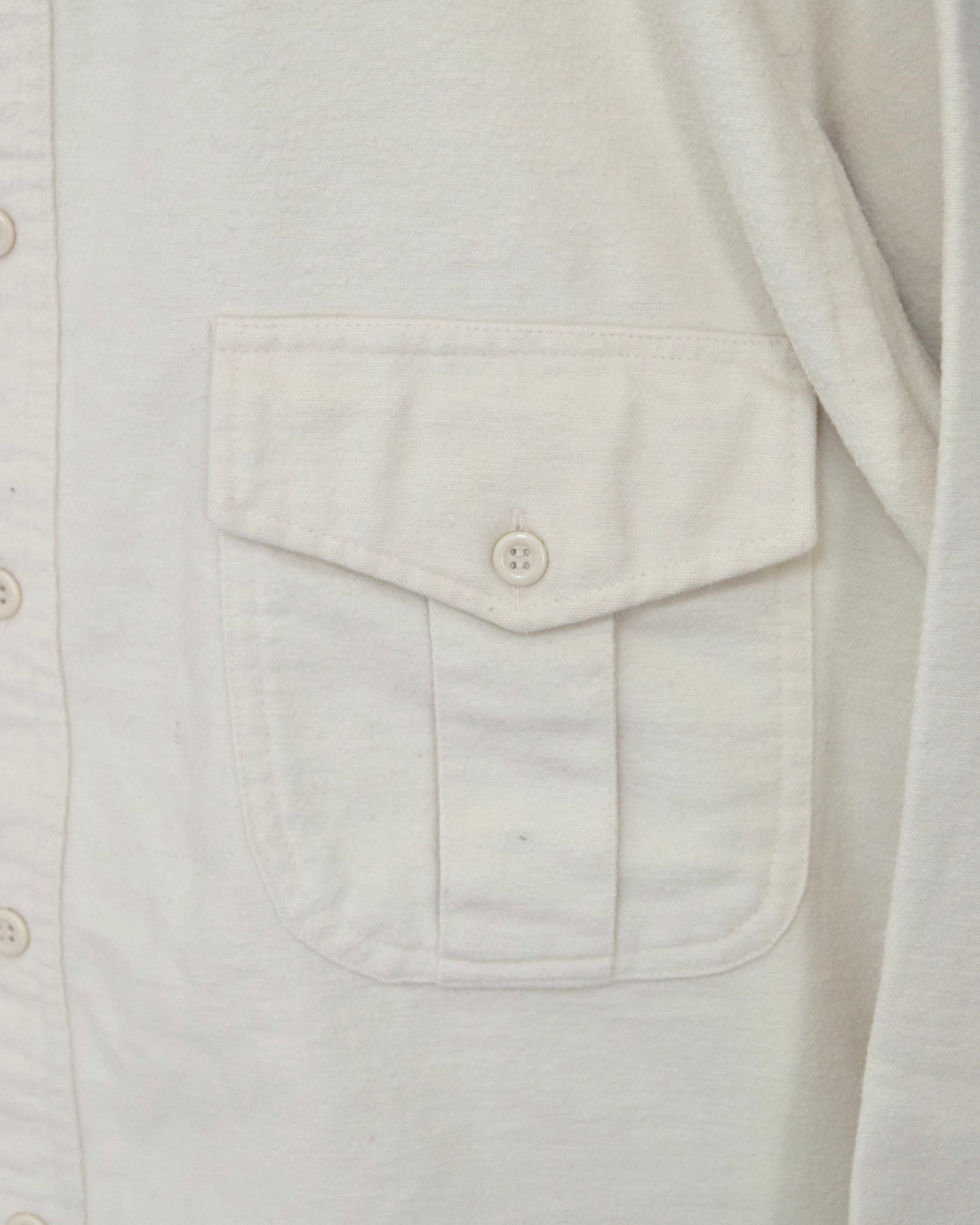 両胸にはフラップボタンのマチ付きポケットを装備。