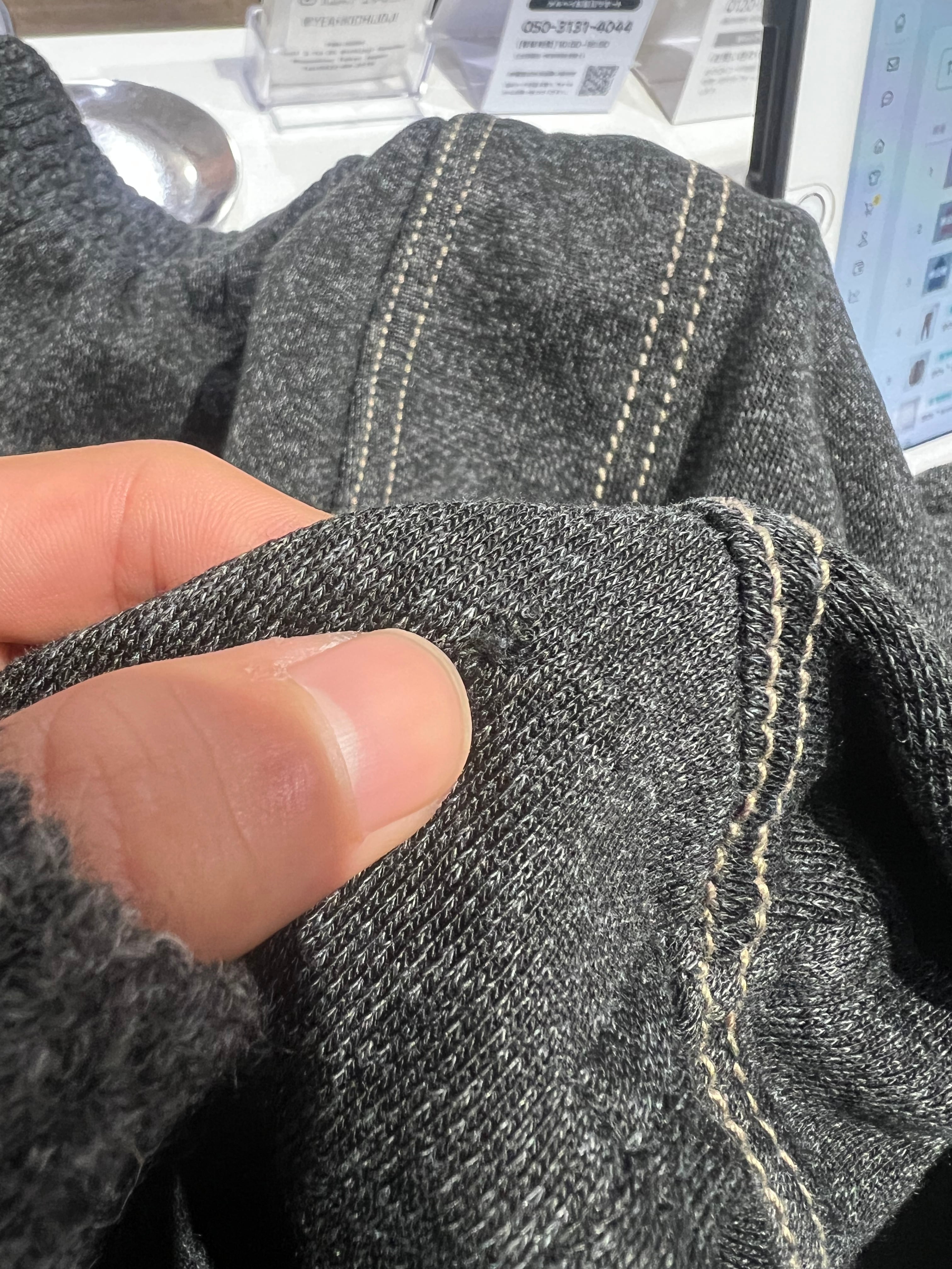 右ポケット、右足付け根に小さなリペア跡がありますが目立ちません。