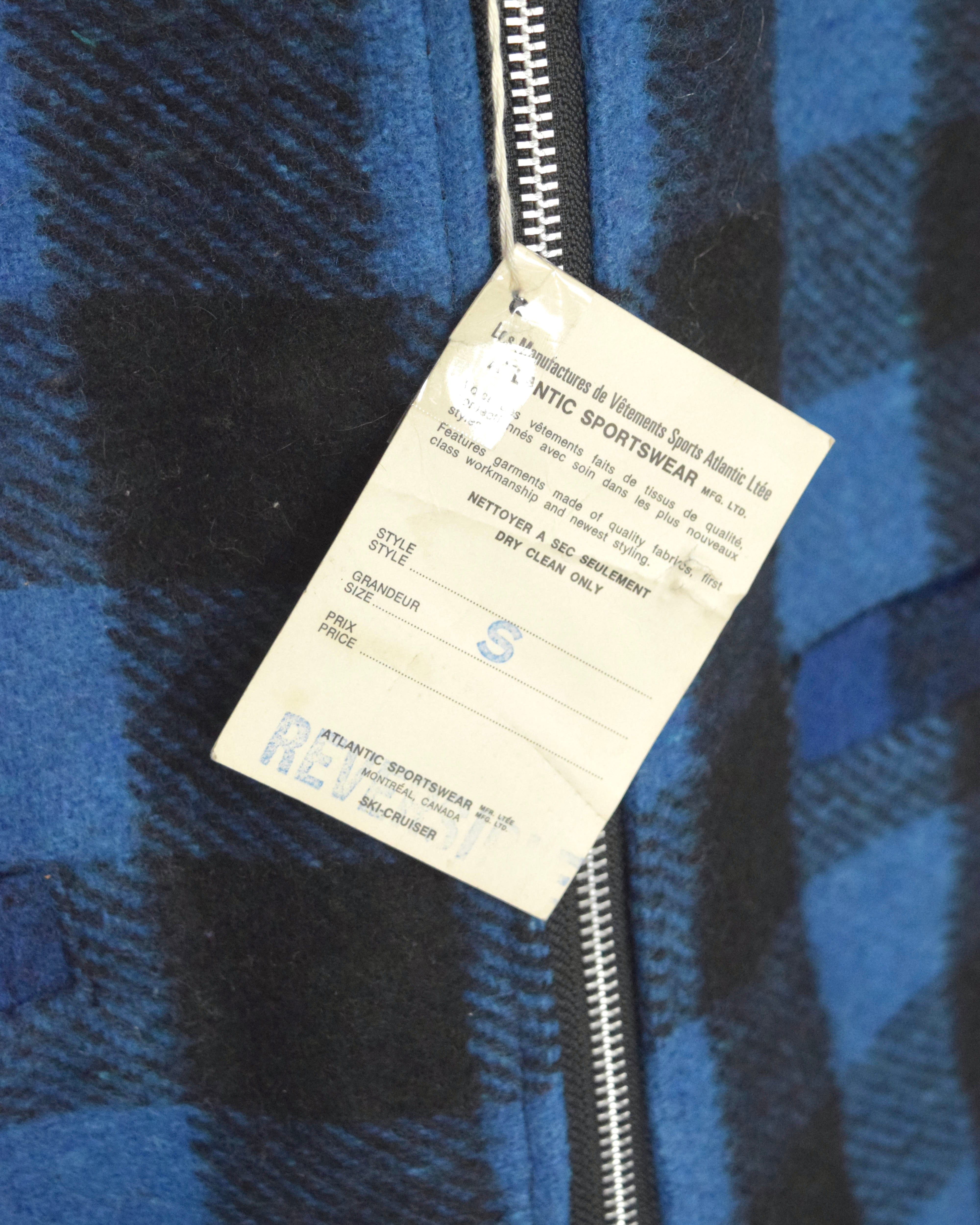 ブルーxブラックのバッファローチェックが目に留まるウール混合のジップアップベスト。