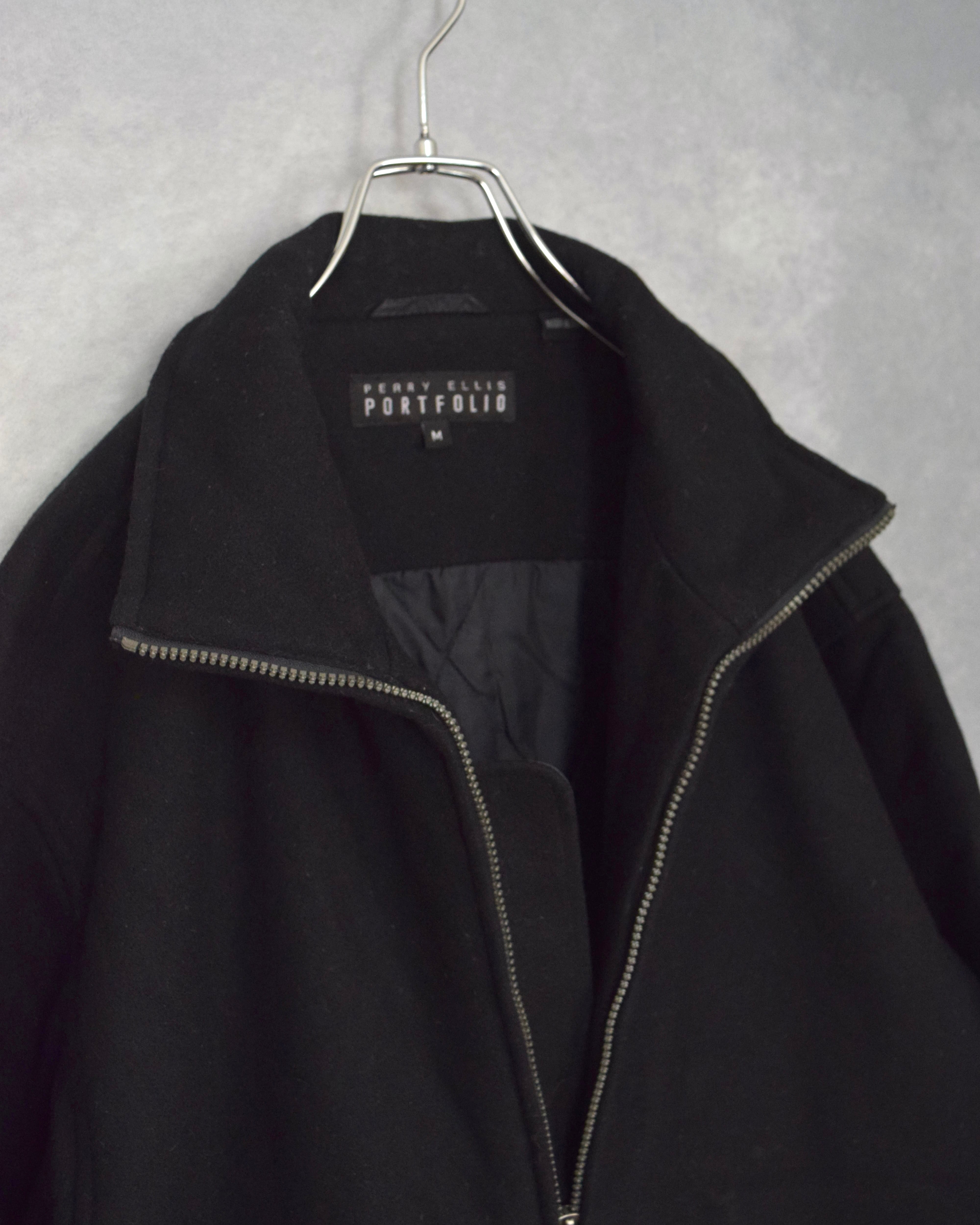 90s " perry ellis " black wool melton turtle neck half jacket / size m