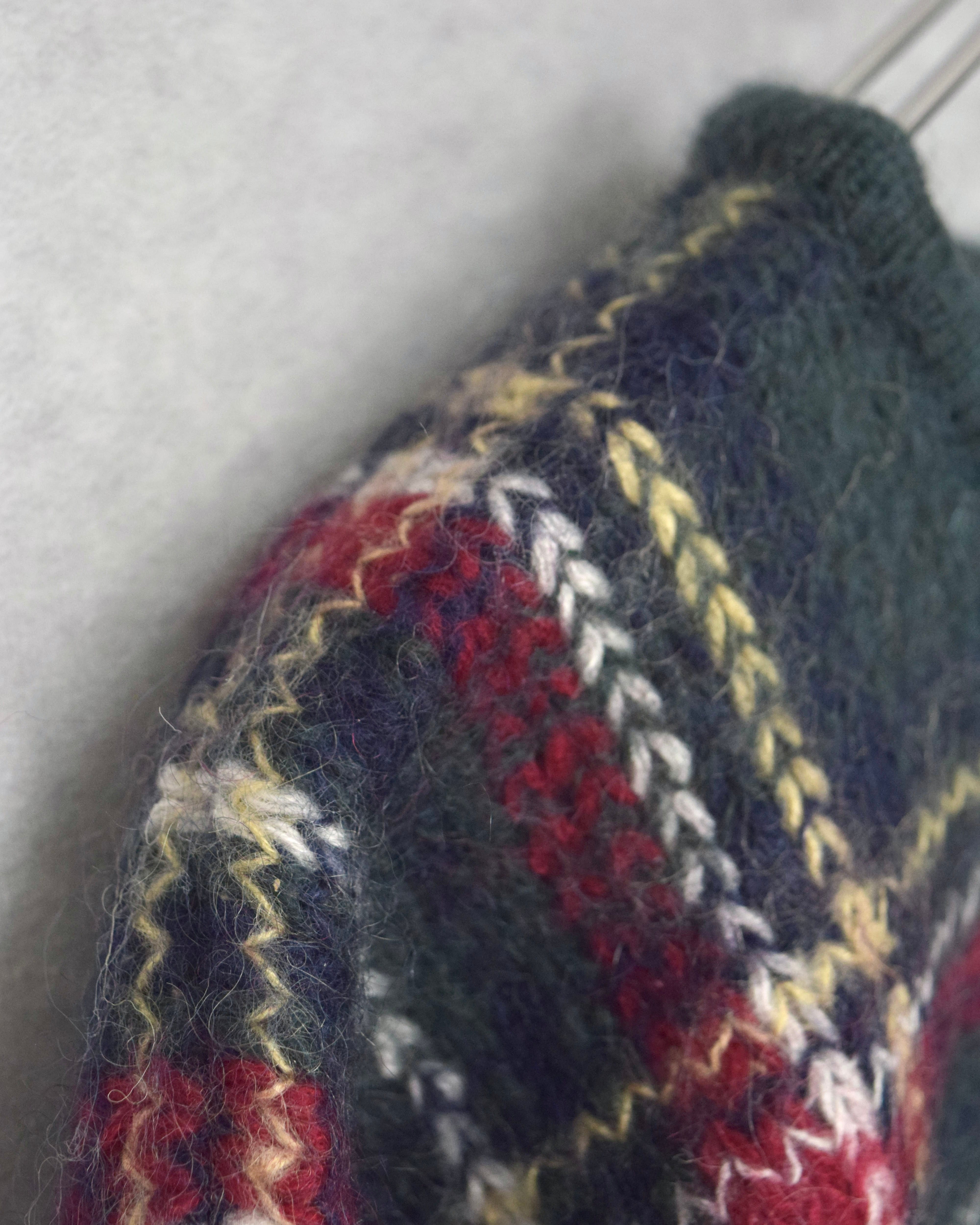 まとまりのある多色使いにモヘア特有の生地感、重ね着が増える季節に程良いアクセントを加えてくれる1着です。