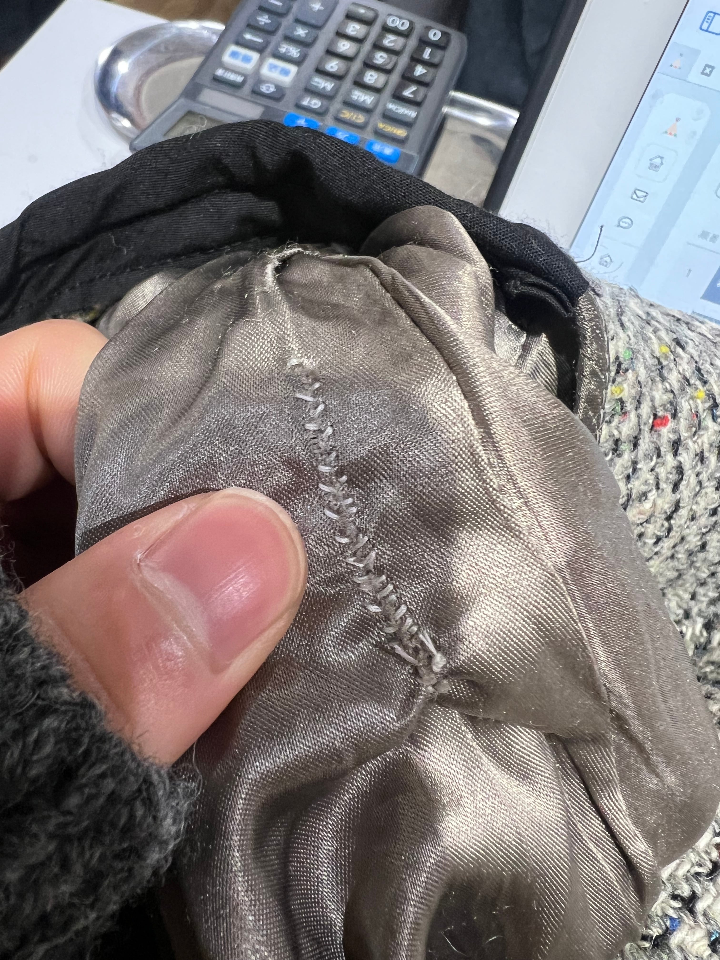 右袖付け根裏地に軽いスレがあります。