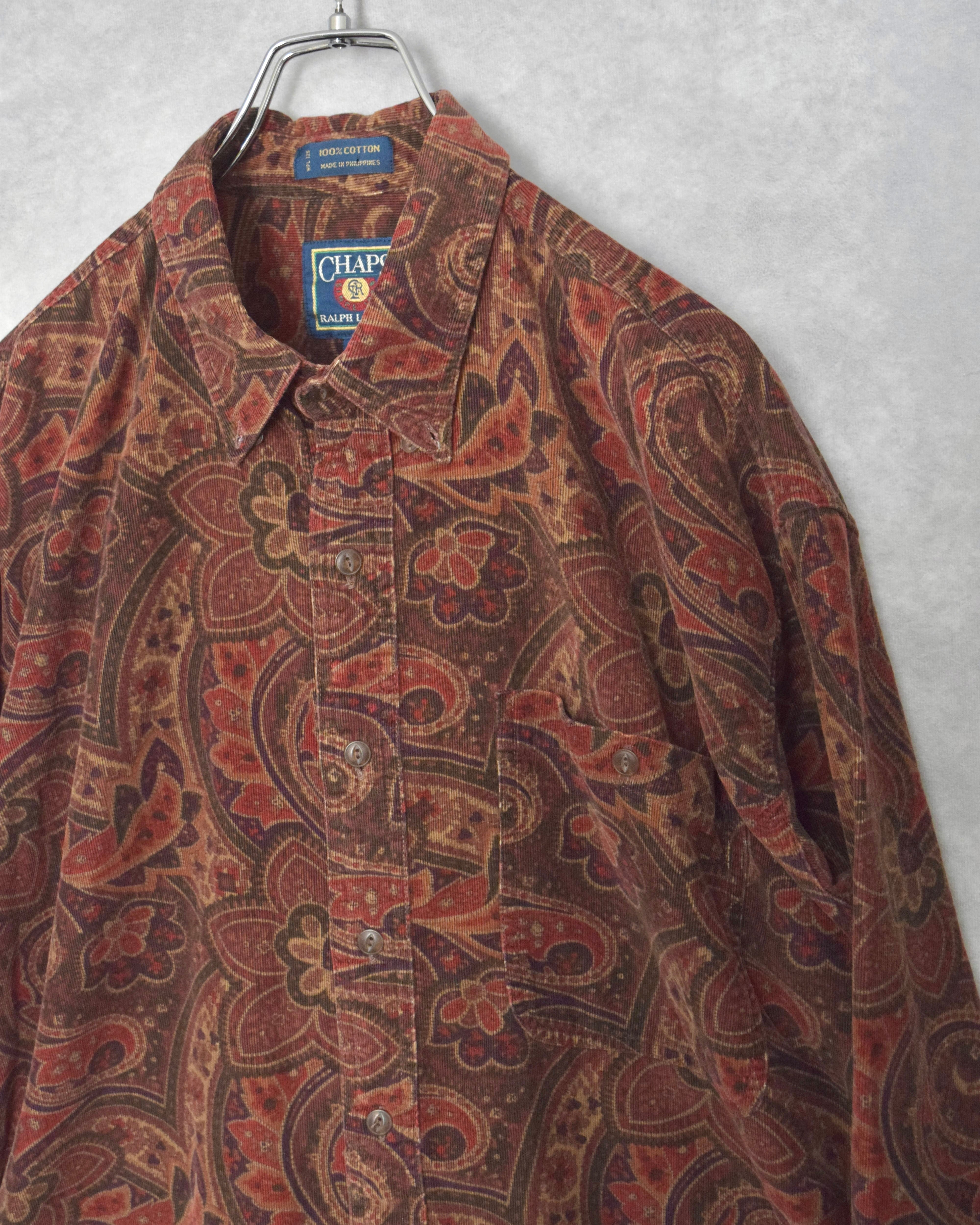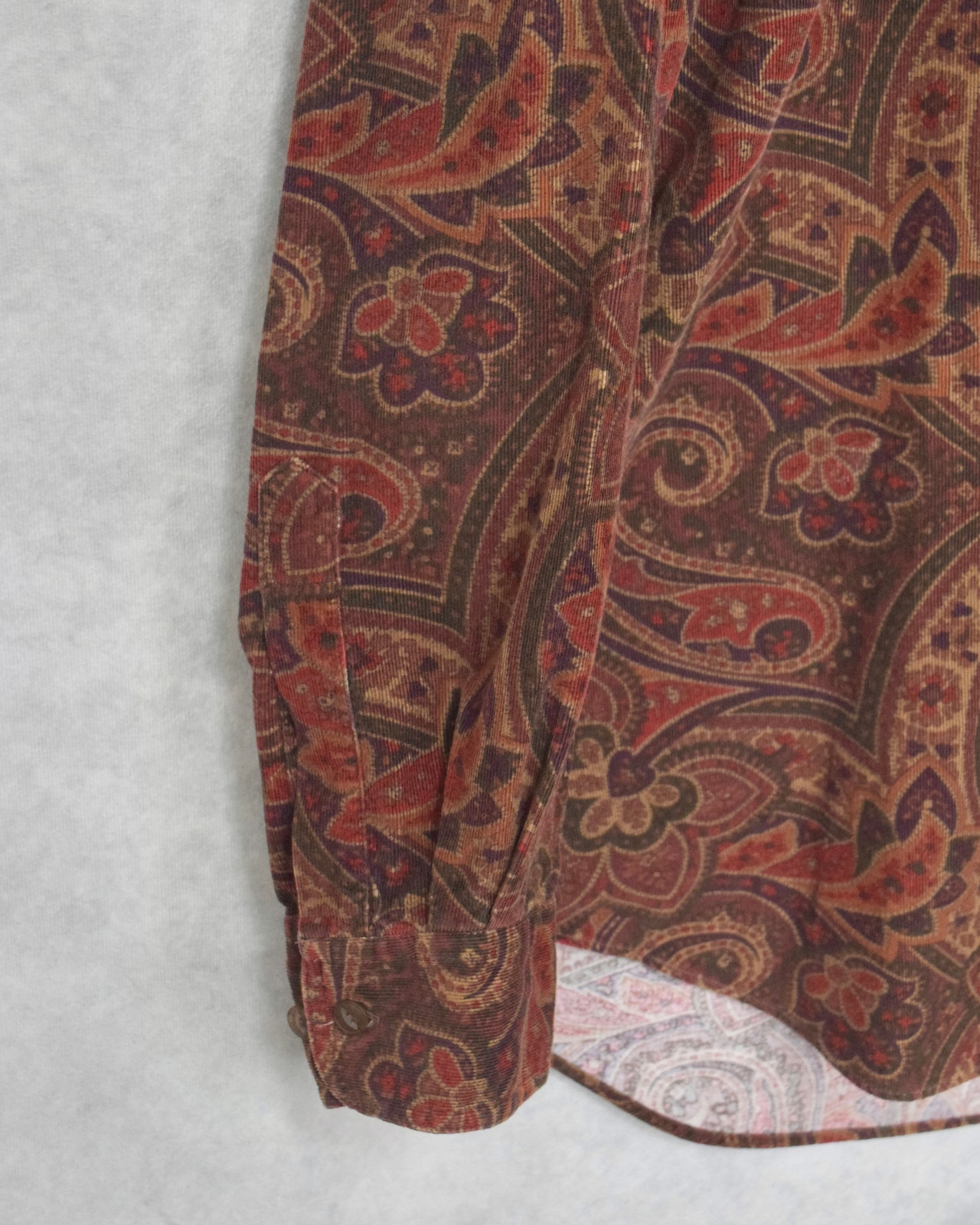 90s " chaps / ralph lauren " paisley corduroy BD shirt / size L