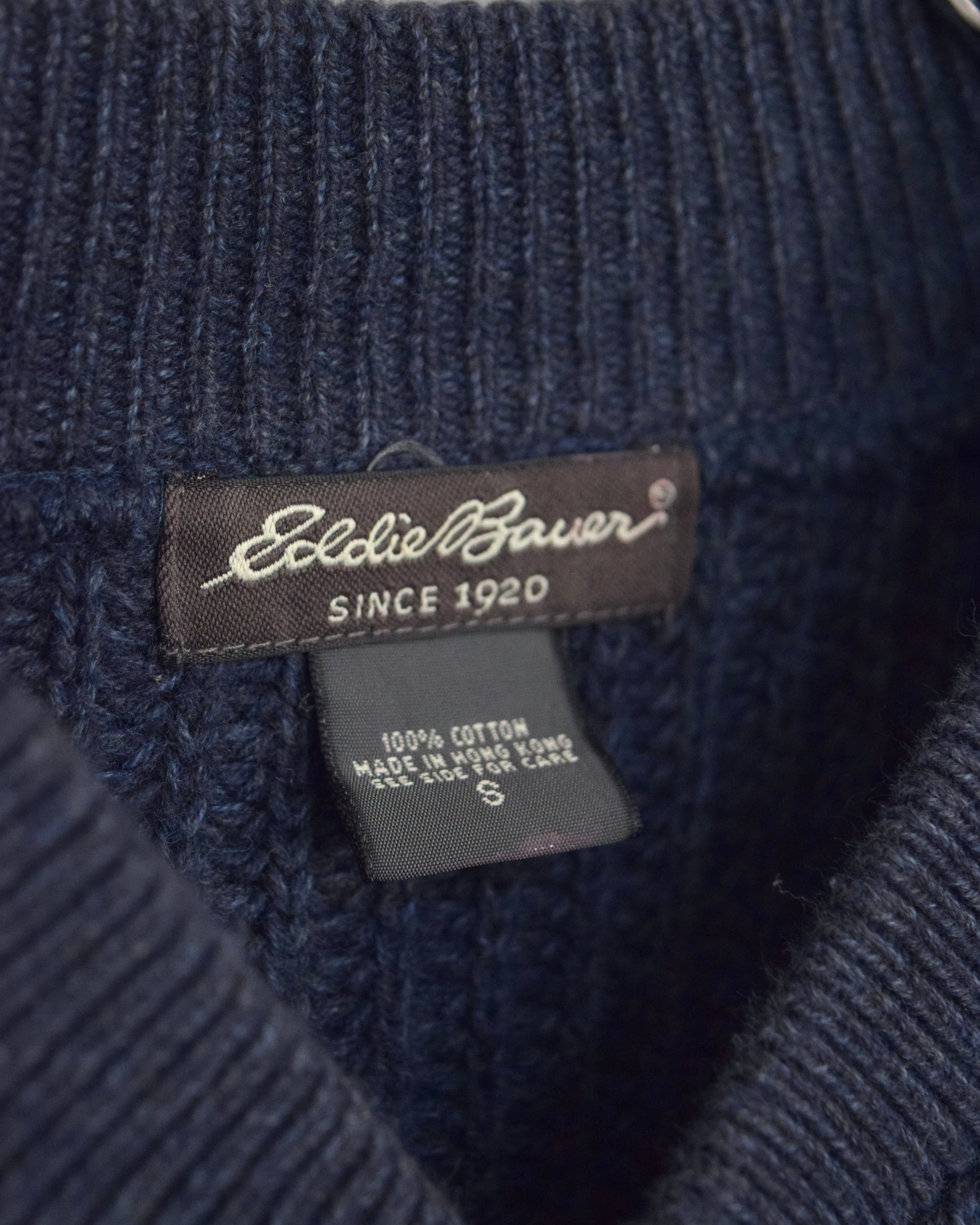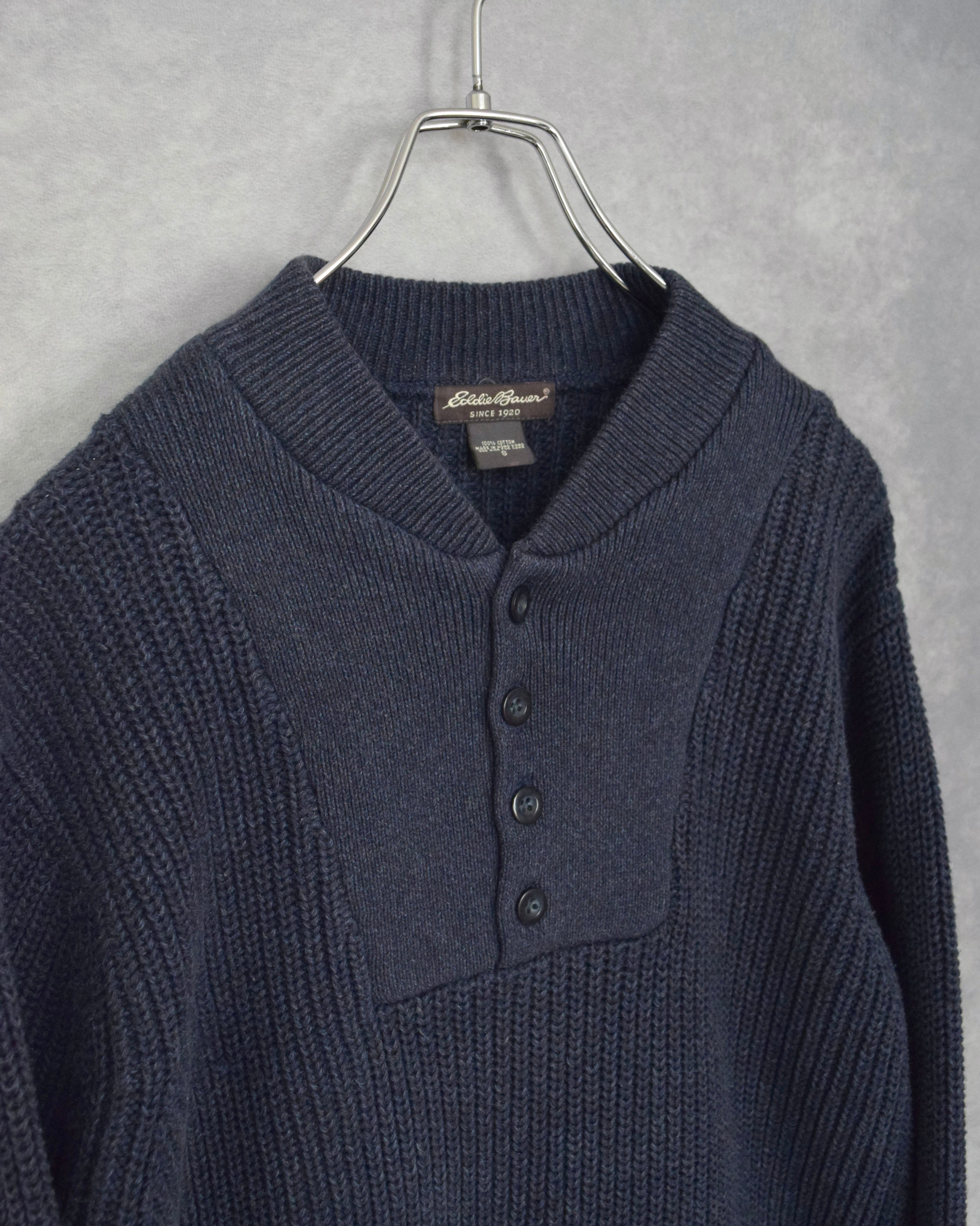 90〜00年代頃のエディバウアーのミリタリースタイルヘンリーネックコットンニット。