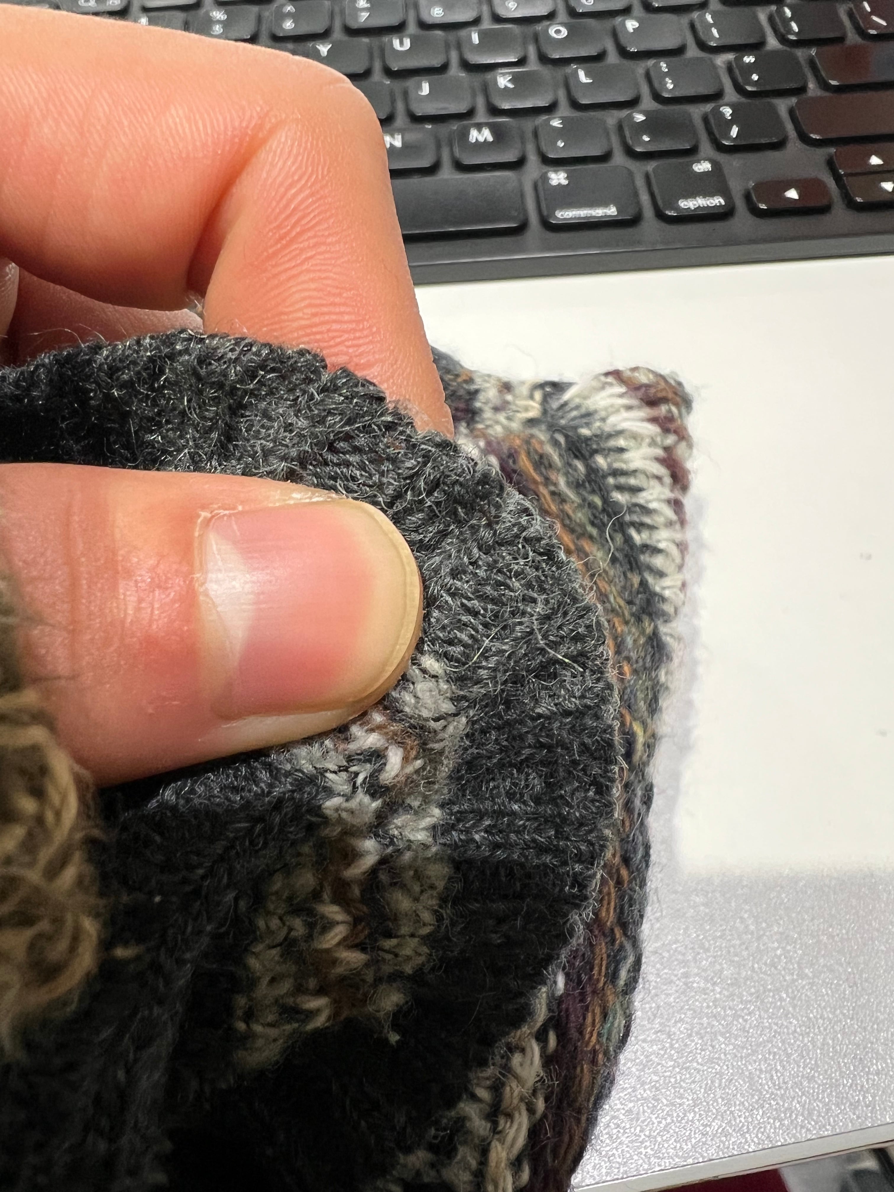 さらによく見るとネップのようにカラフルな色味の糸がちょこちょこ混ざっています。