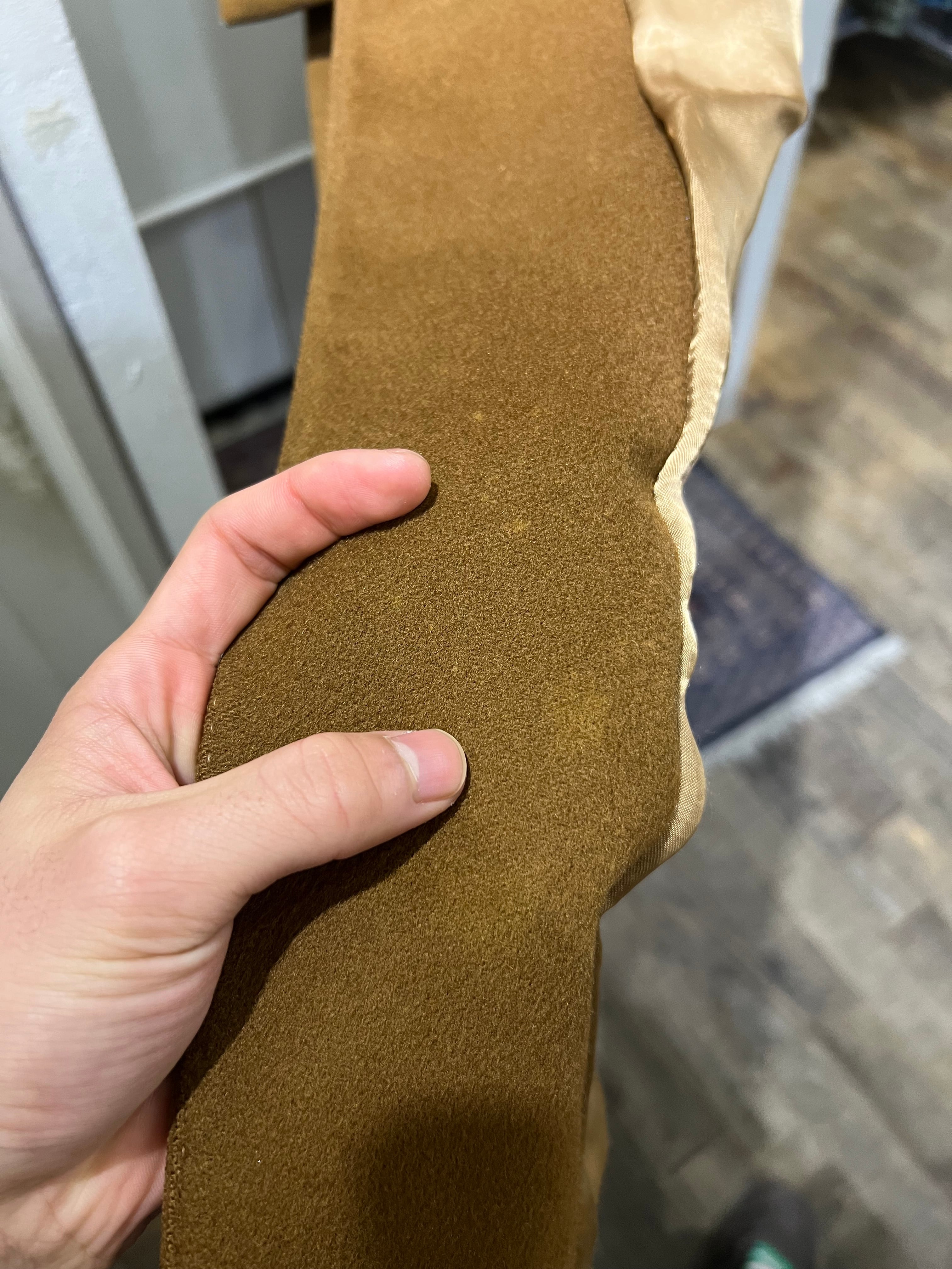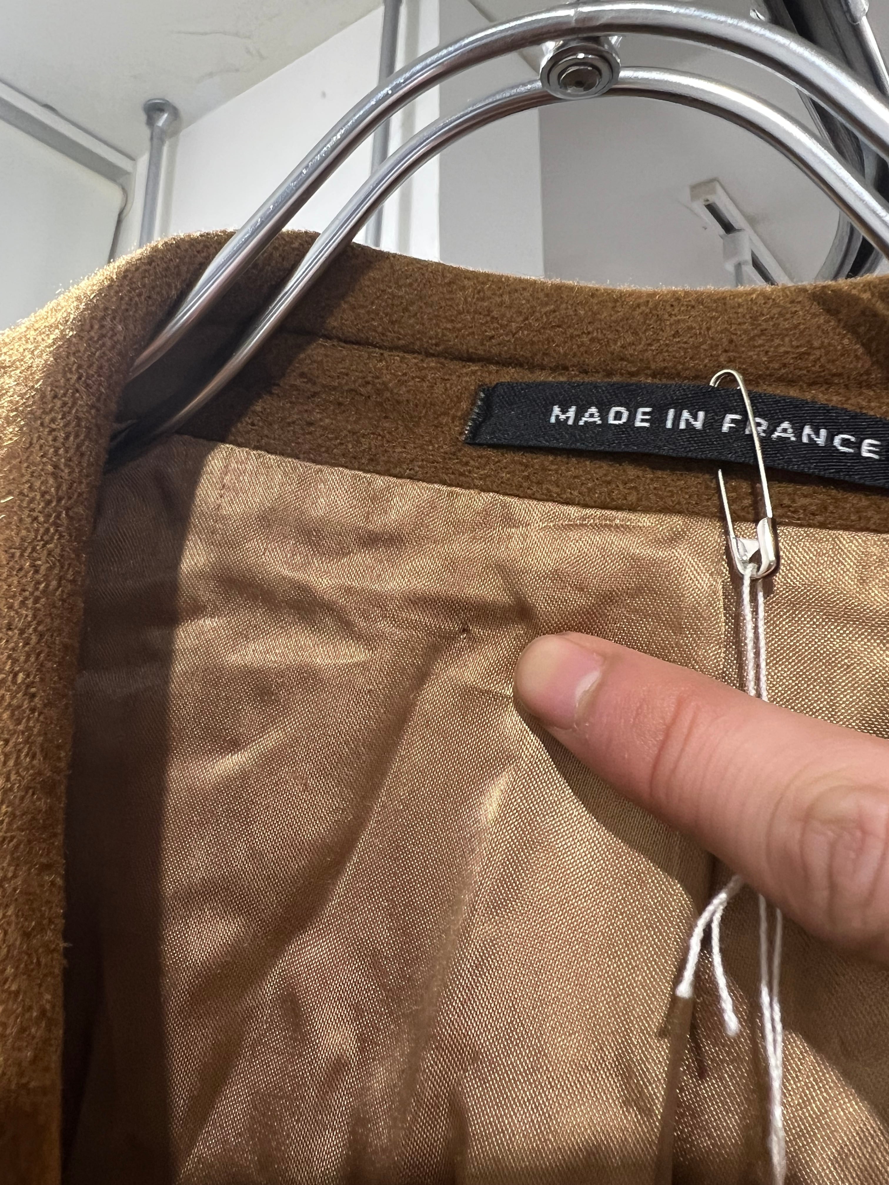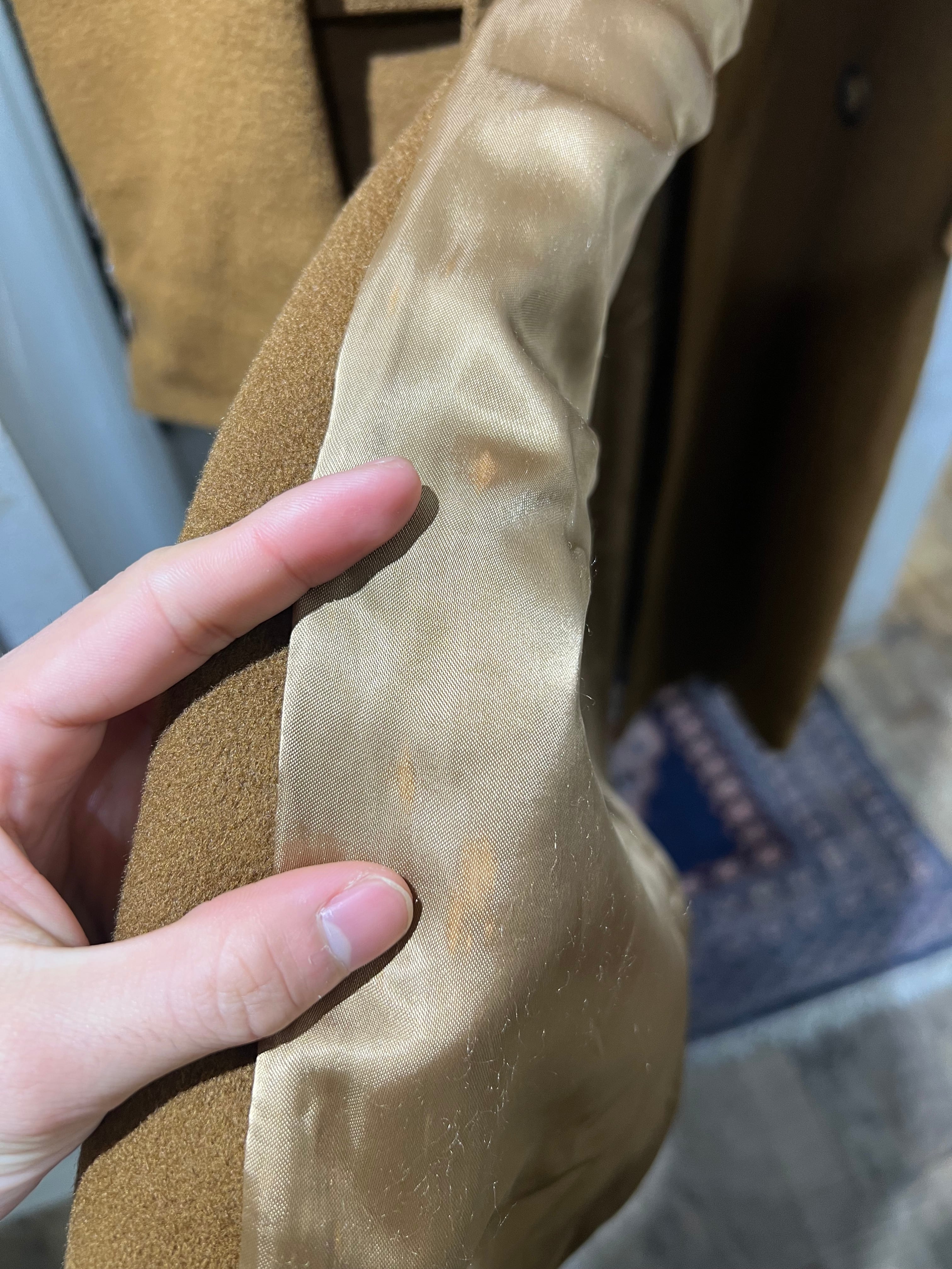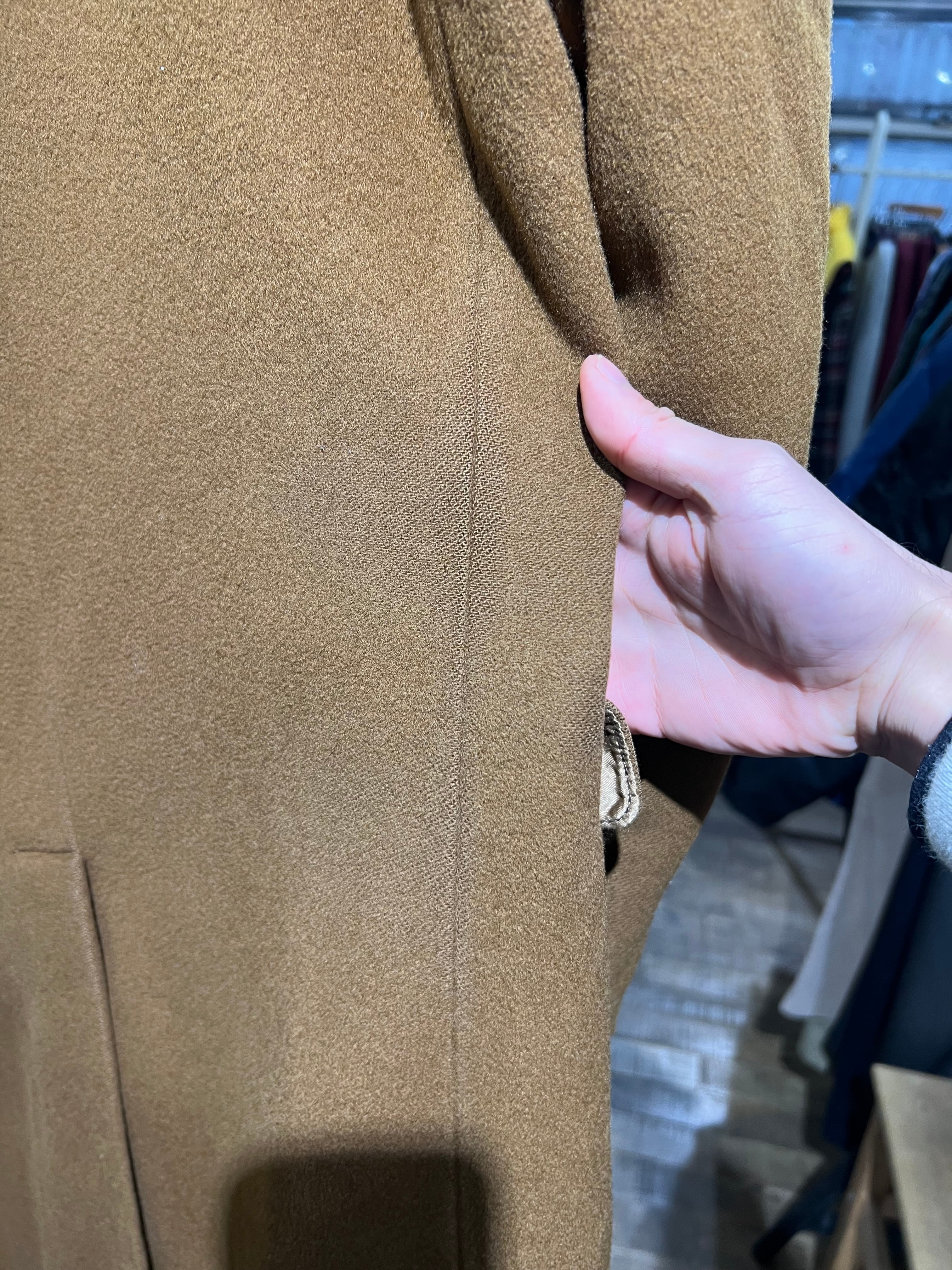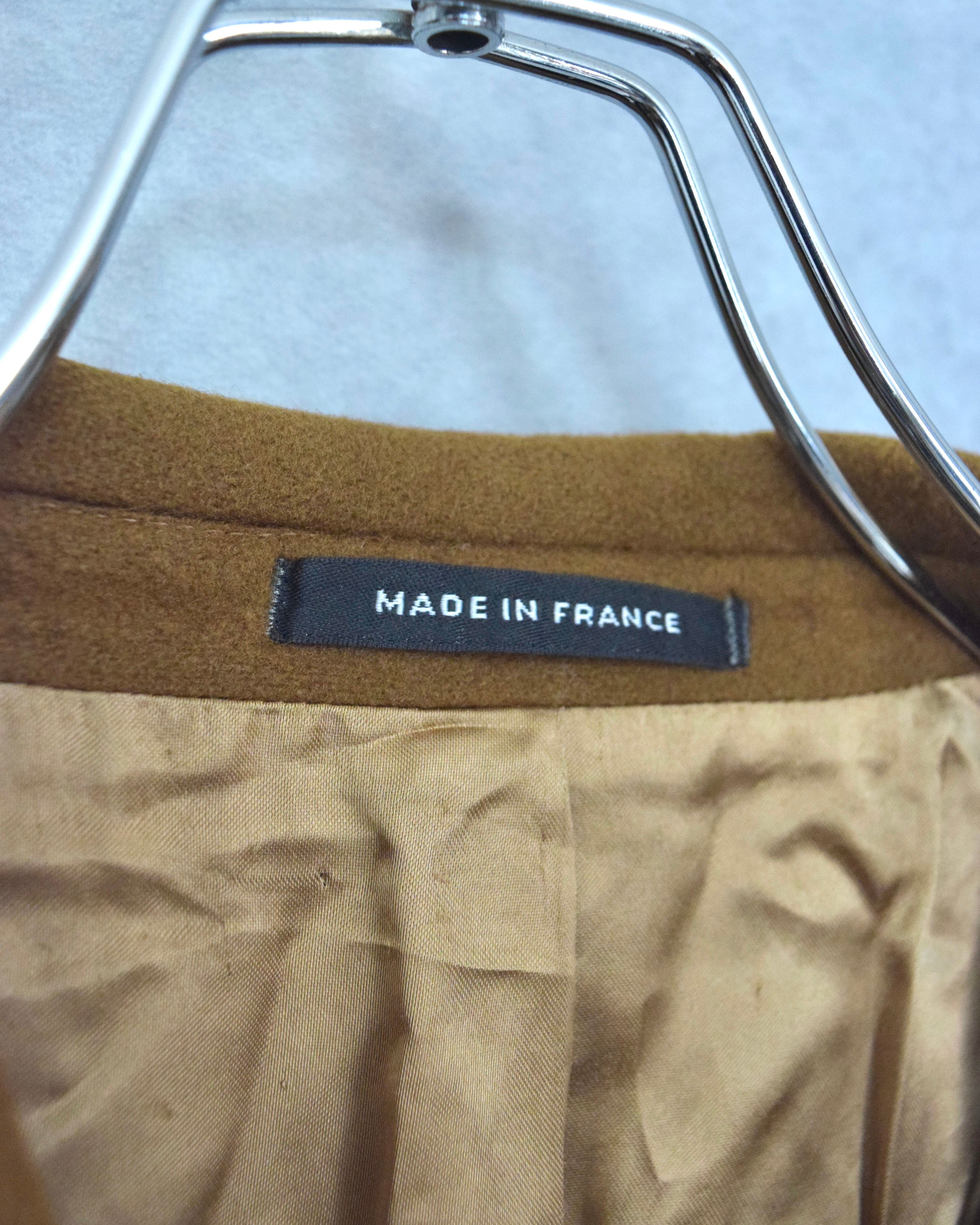 この手のコートはキャメルヘアーが多いですが生産国がフランスだからかカシミヤ混なのかと。