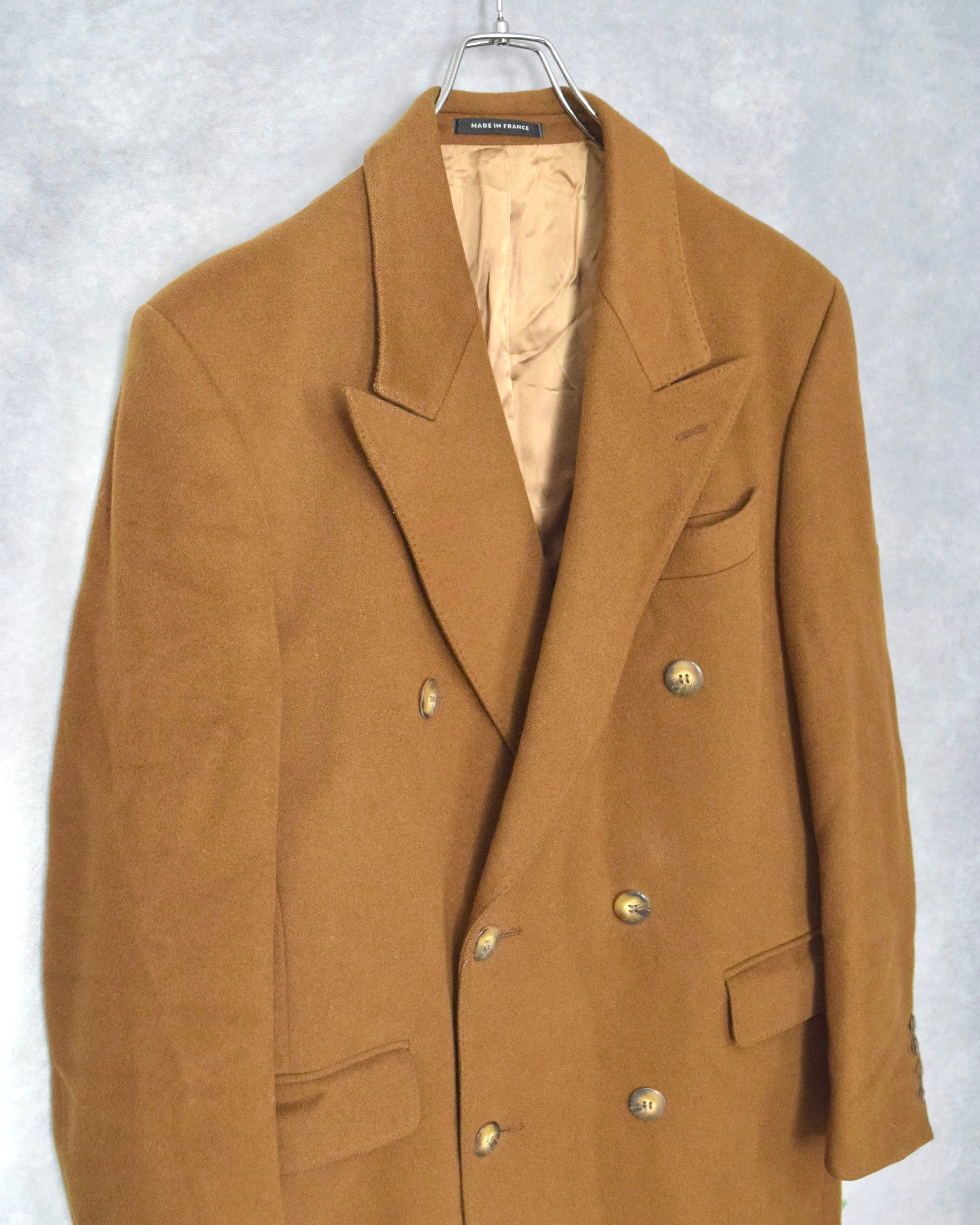 80〜90s cashmere mix double brested long coat / made in france / size m