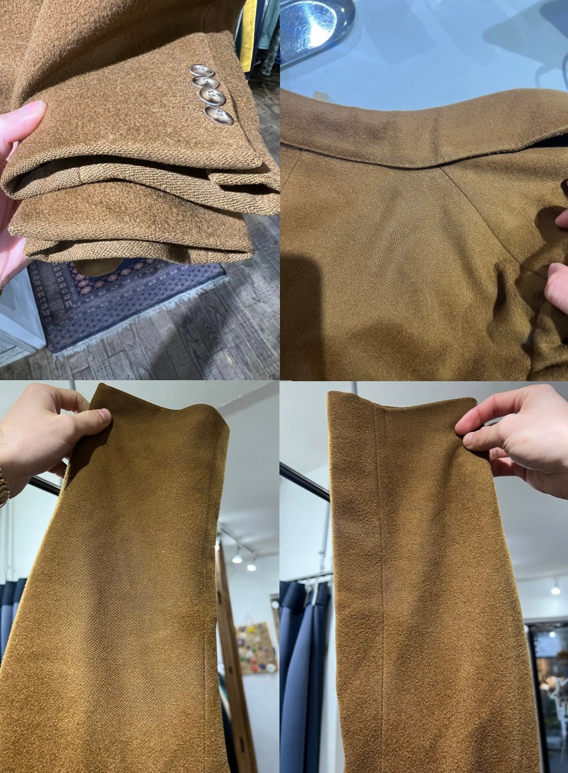 着用による両袖先、両ポケット付近、右肩付近、右腰、両肘に表面の毛の若干の抜けがあります。