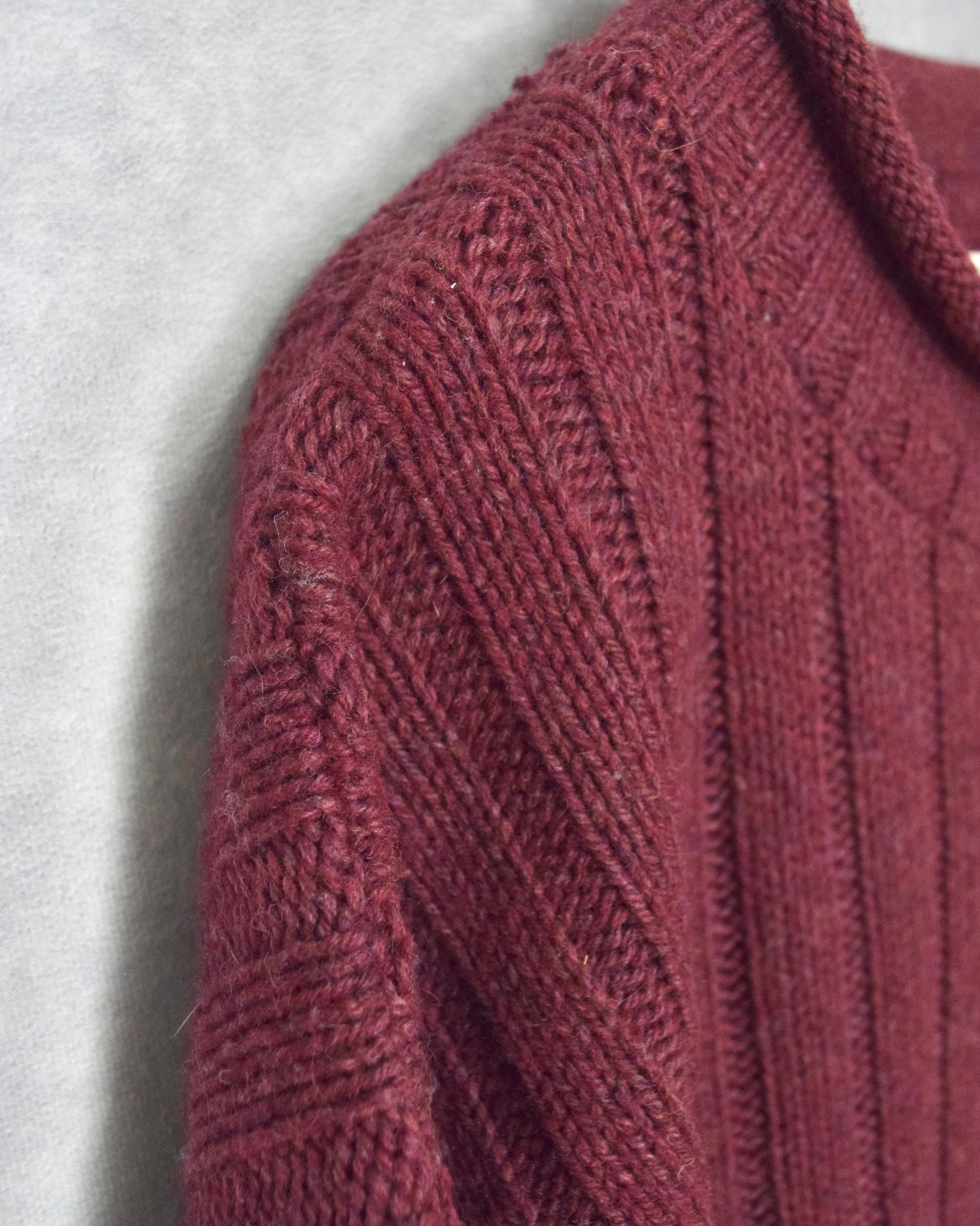 ボディから袖まで畦あみとまではいかないストライプの編み柄のようになっています。