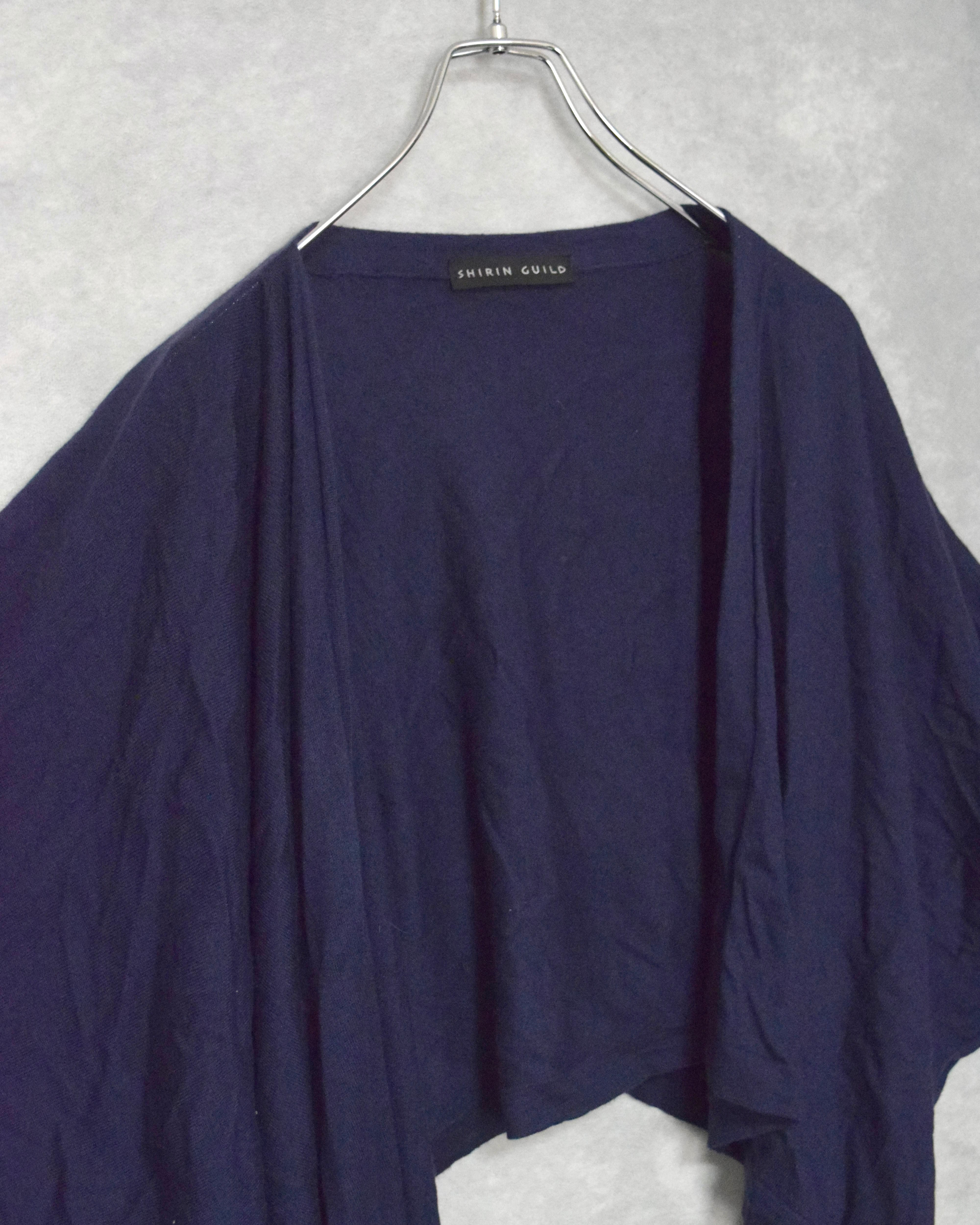たっぷり取られた肩幅と身幅に対して短めな袖丈と着丈。