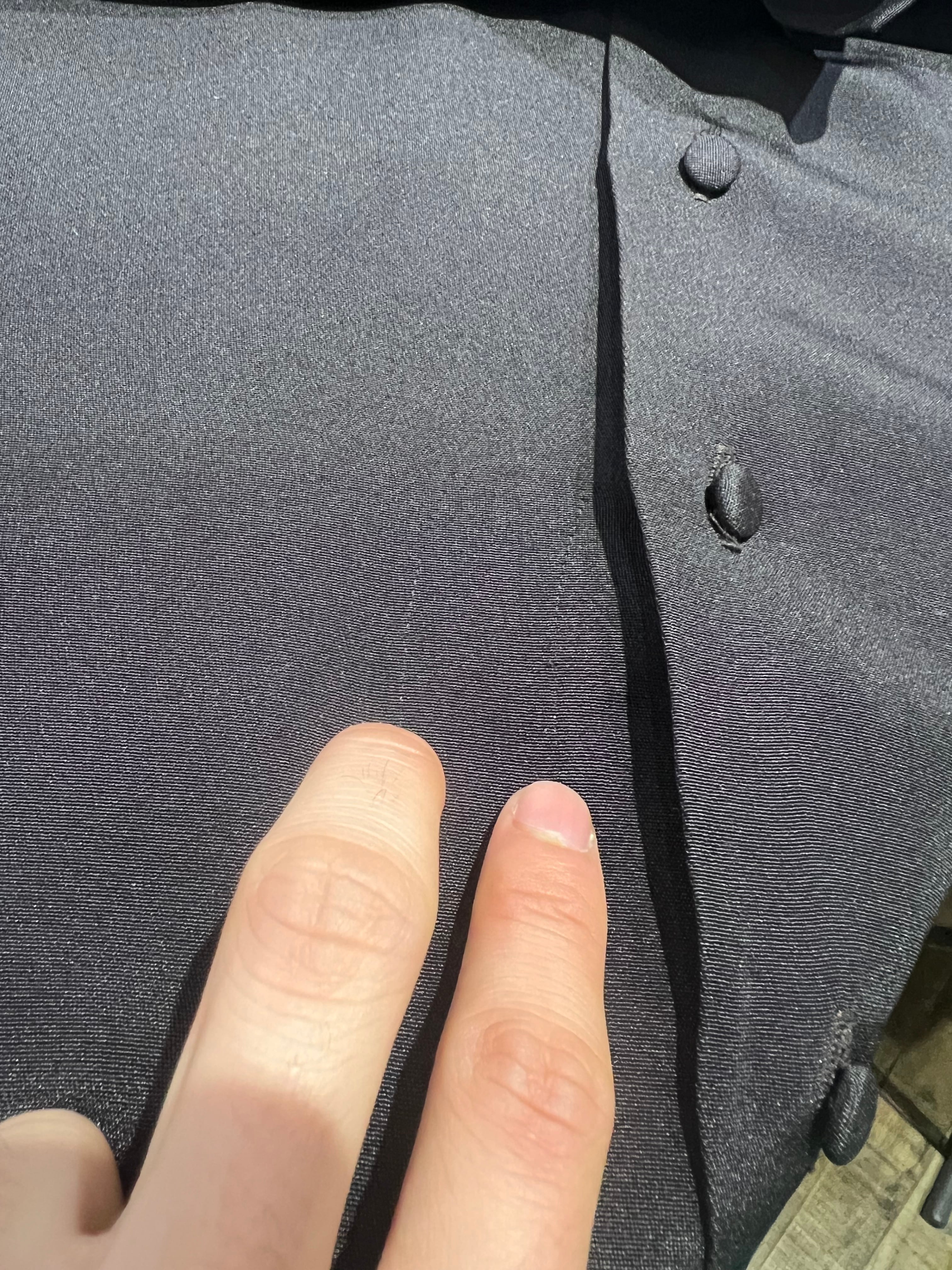フロントライン下部、左袖付け根に糸擦れによる線のようなものがありますがシルク特有の光沢感のおかげで目立ちません。
