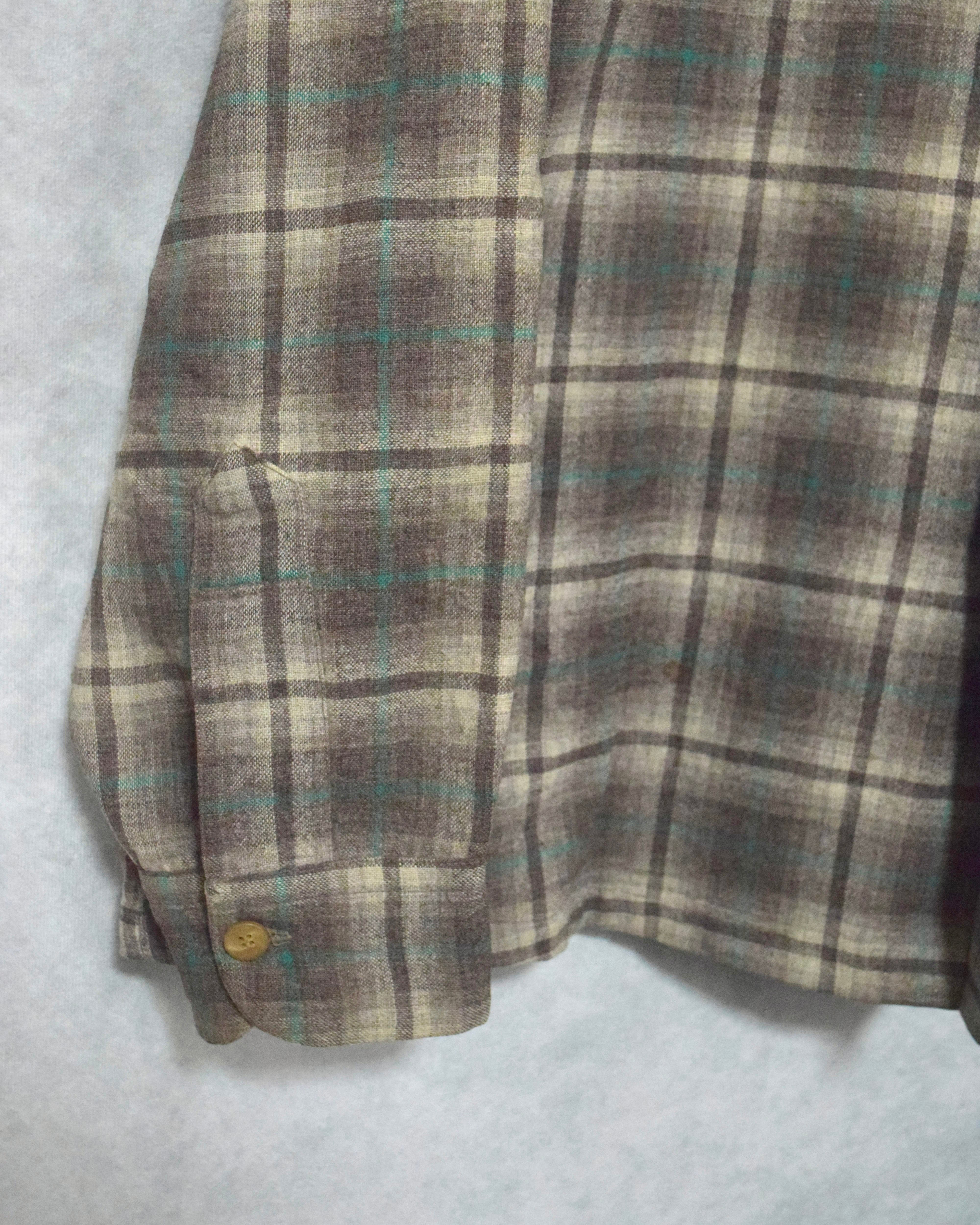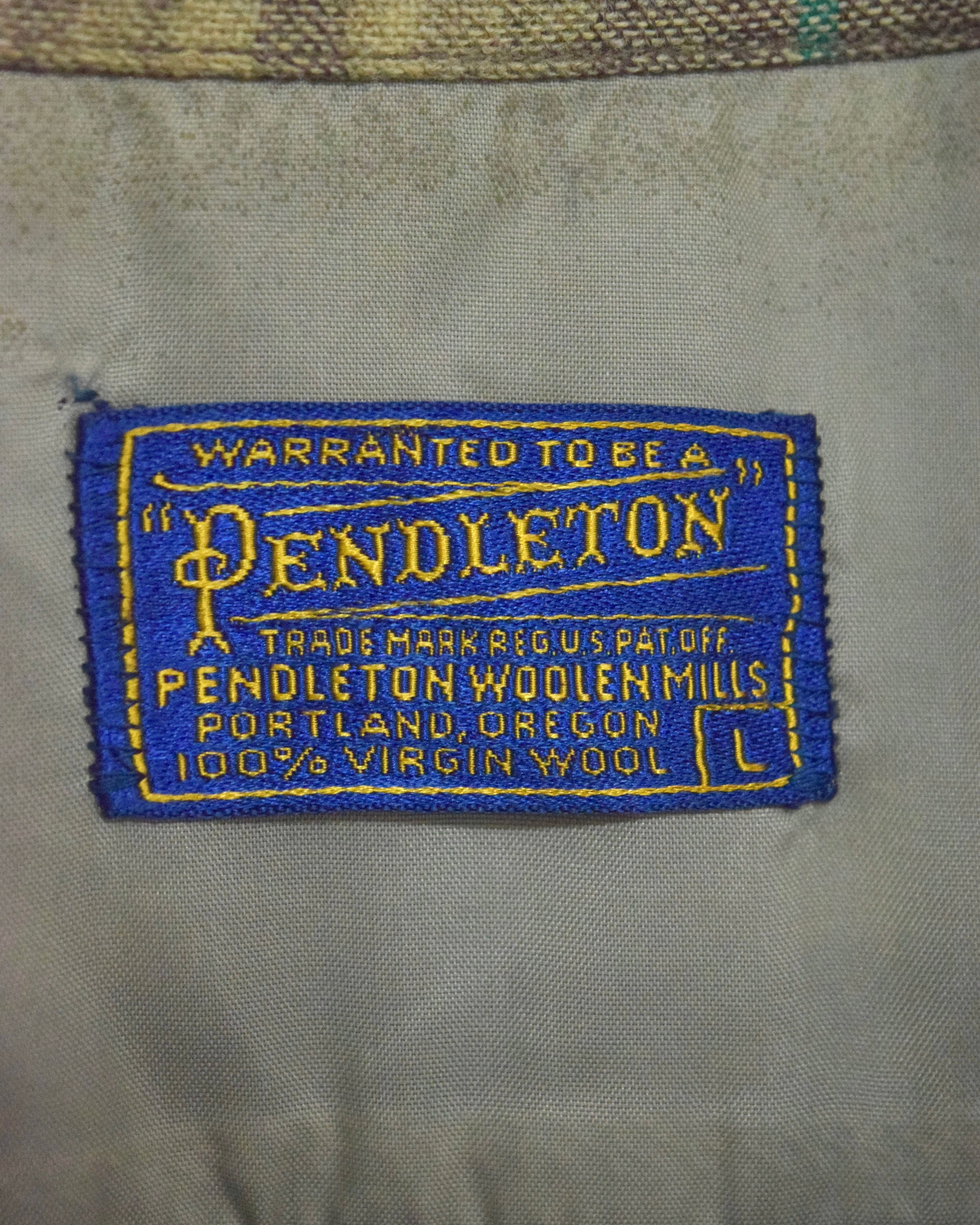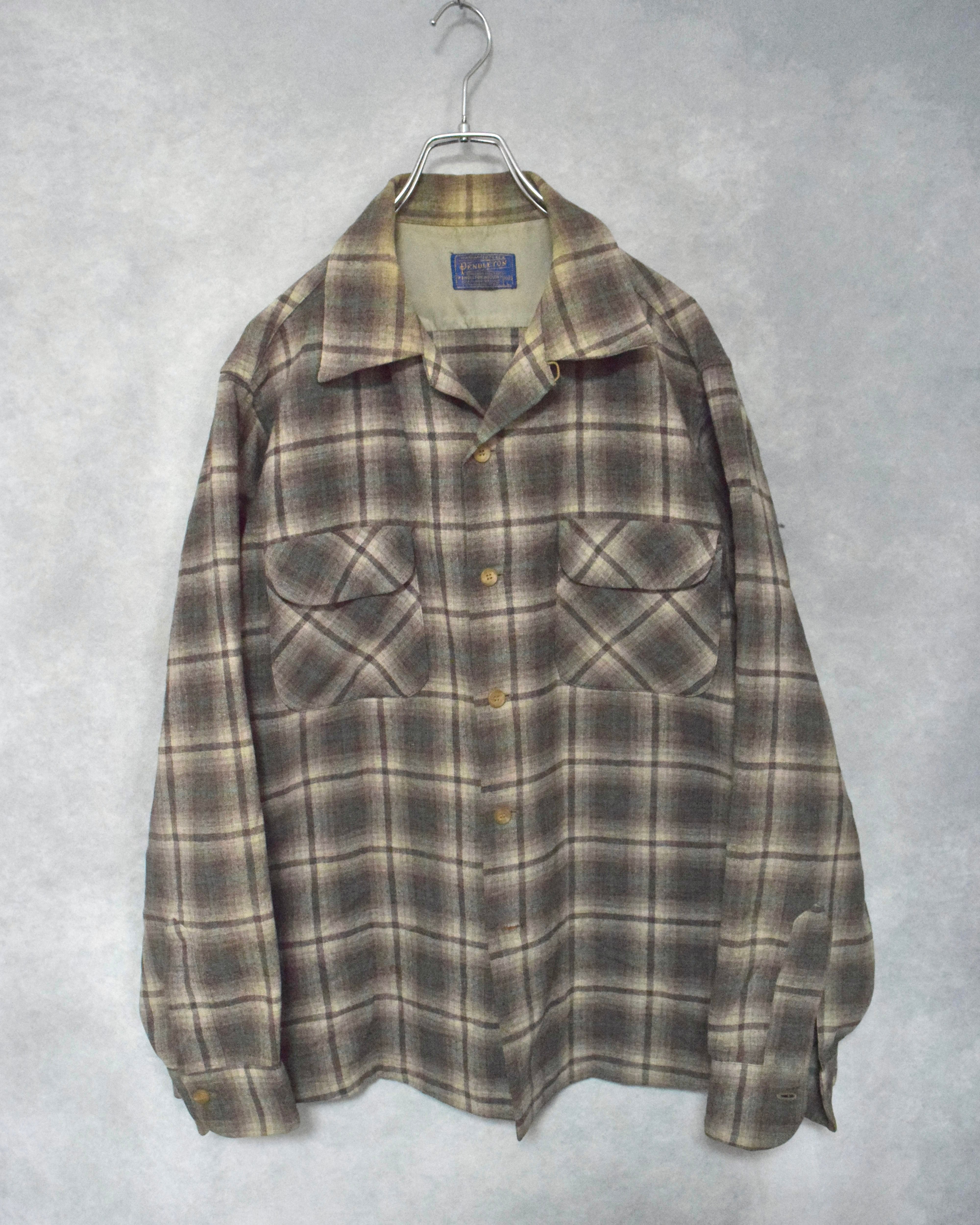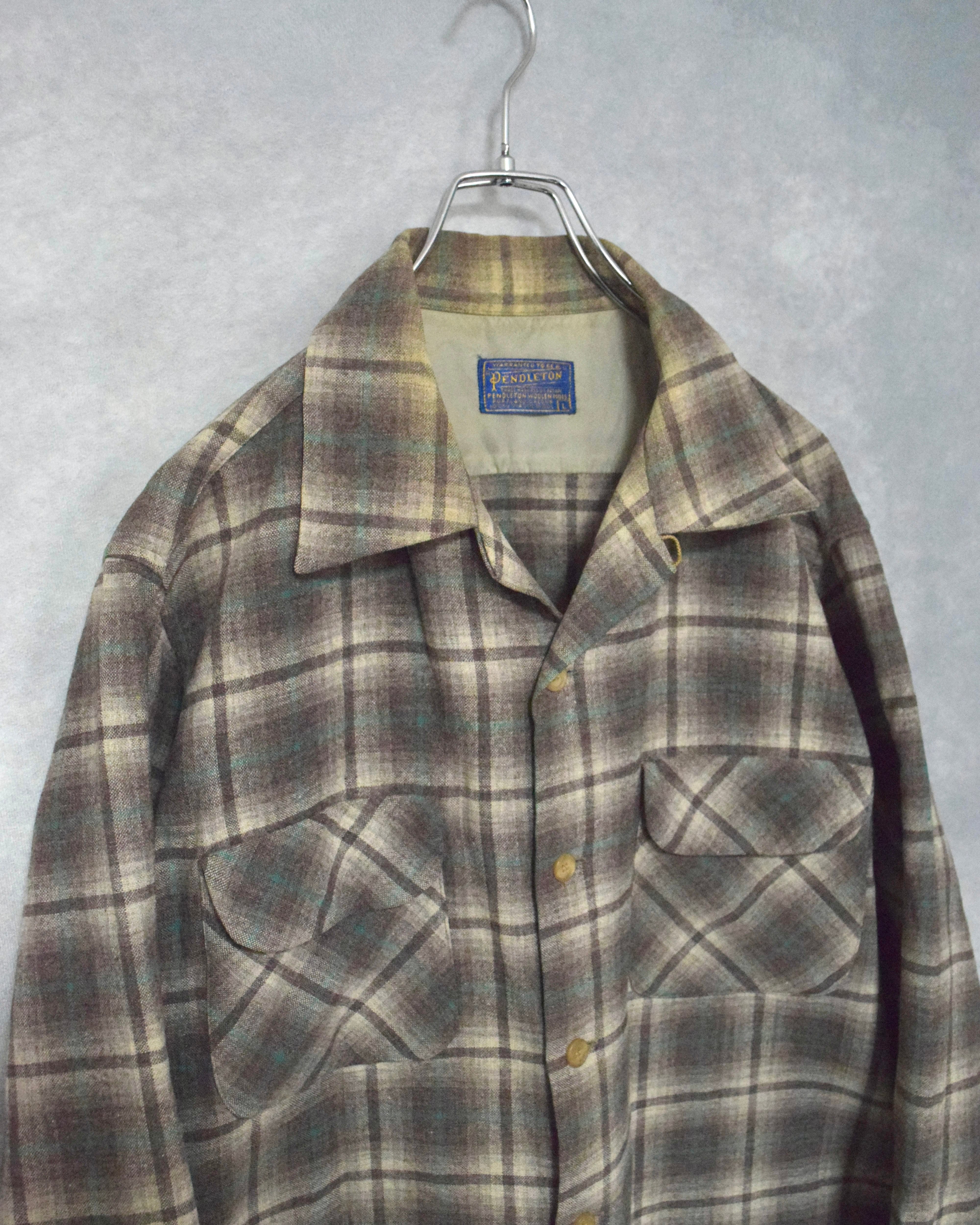 50s " pendleton " wool open collar shirt / size L