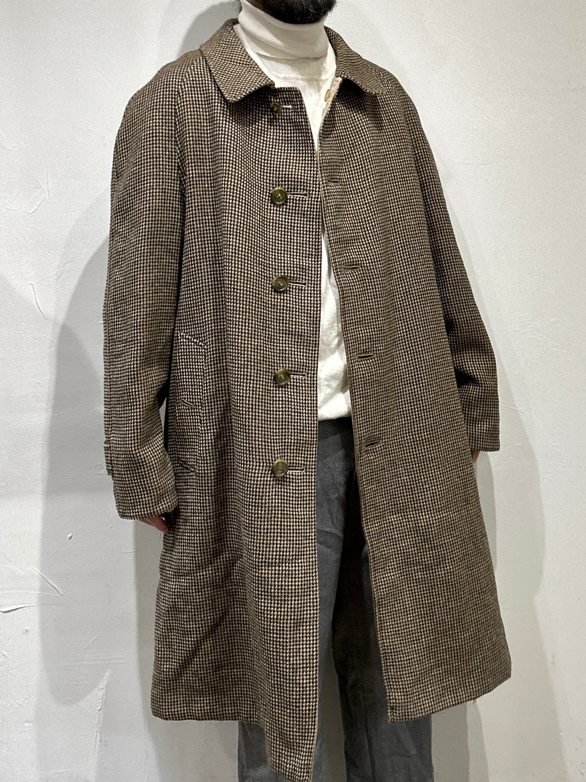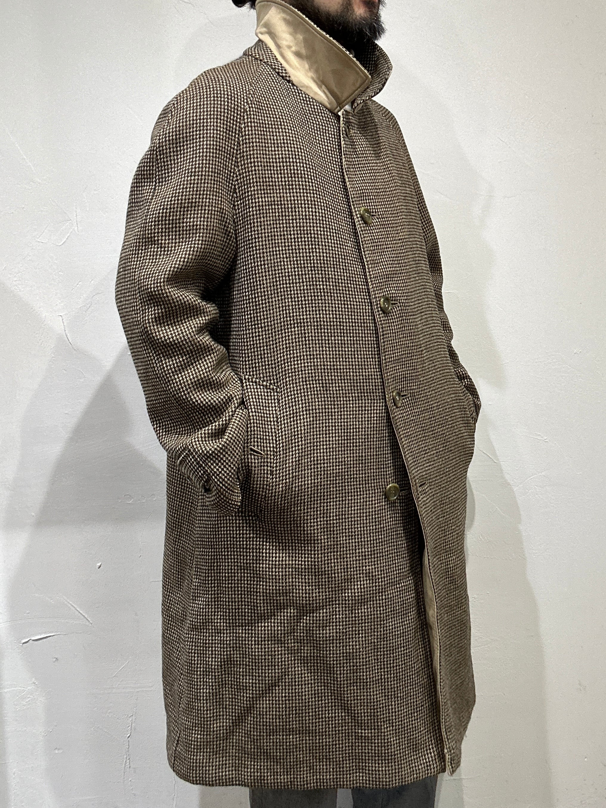 80s " berberrys " reversible tweed x cotton soutien collar coat / made in england / size m