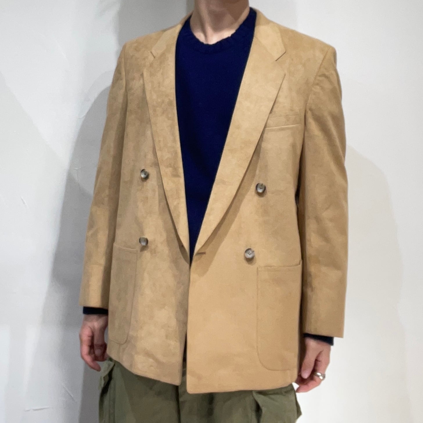 ウルトラスウェードダブルブレストテーラードジャケット。
