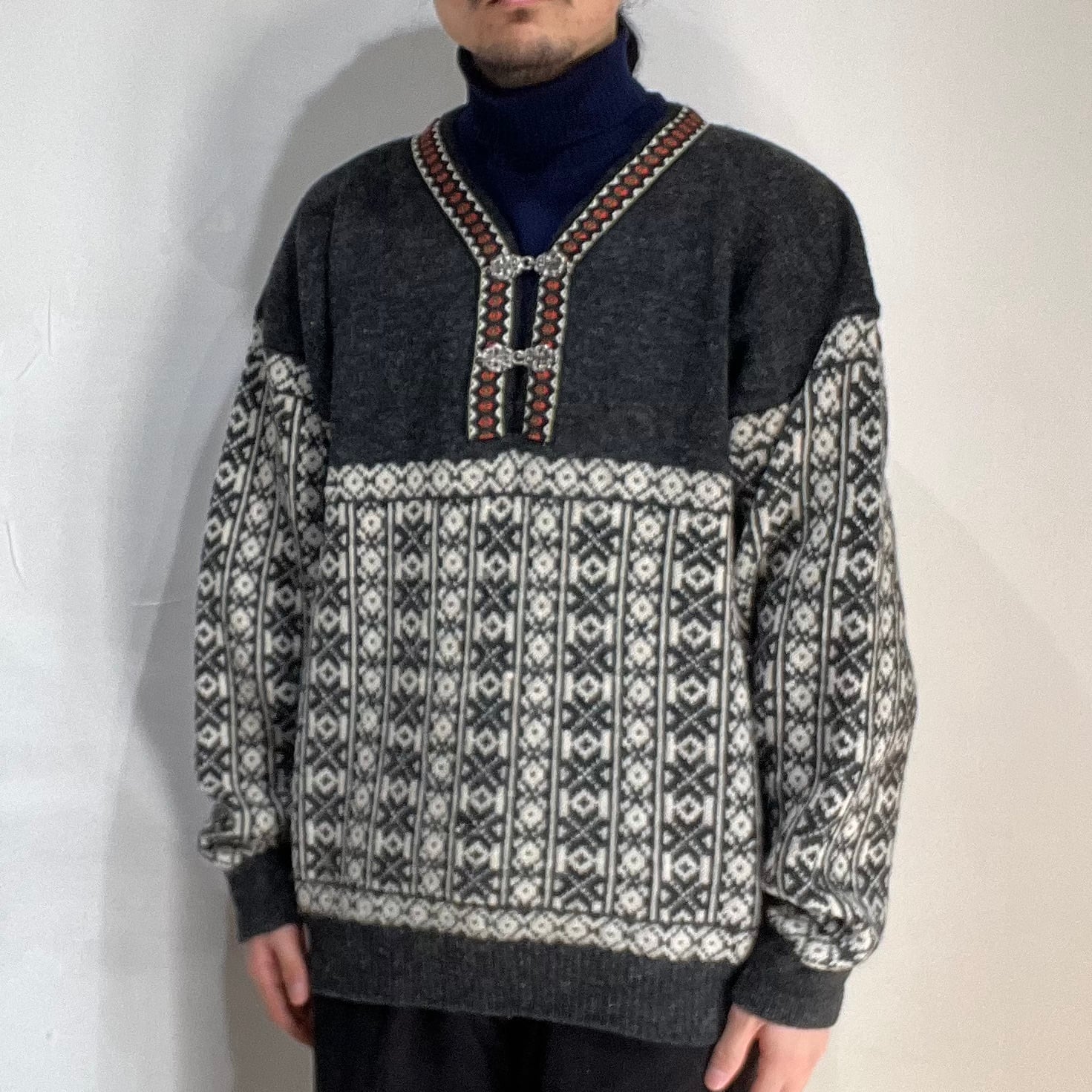 90年代頃のウールVネックノルディックニット。