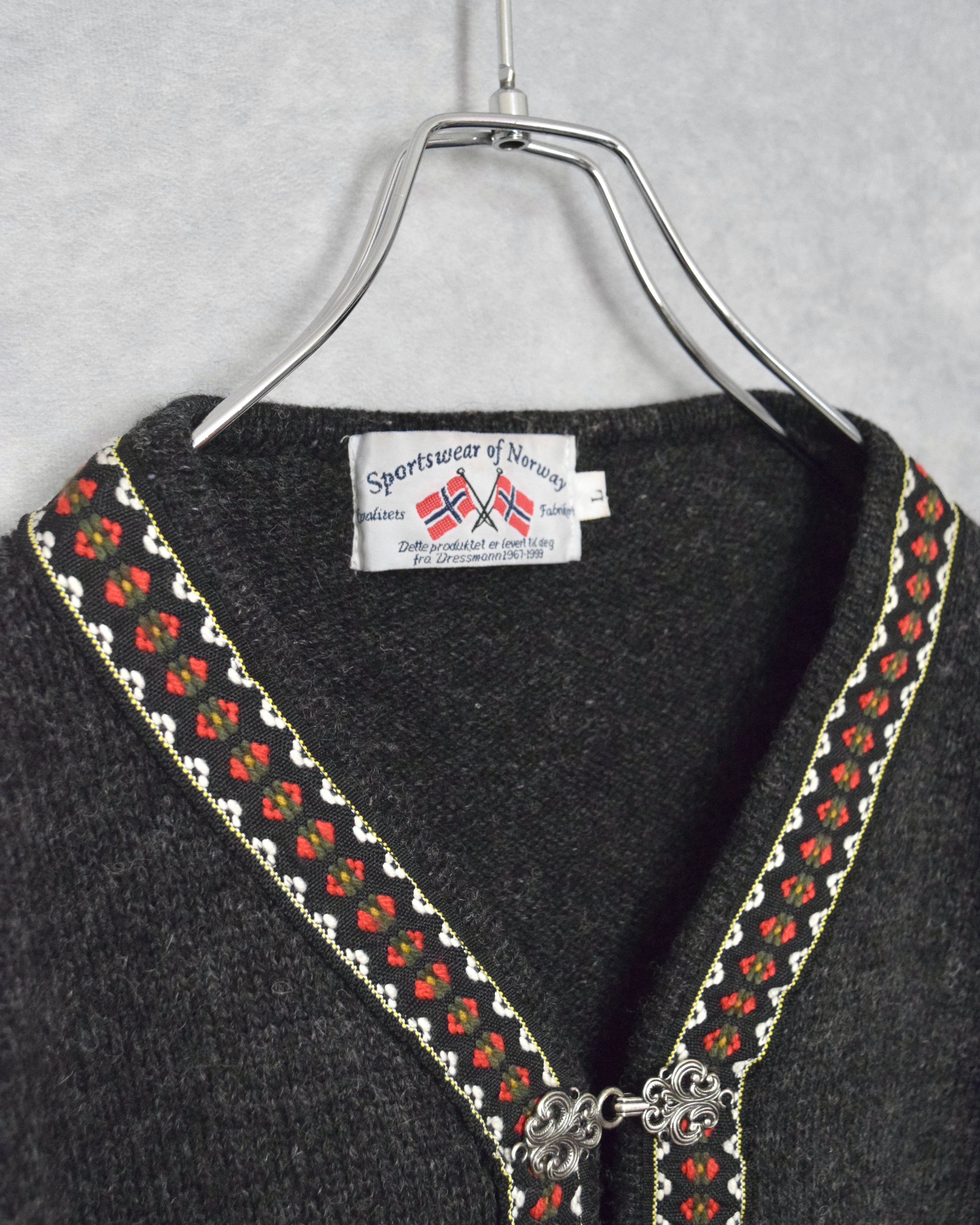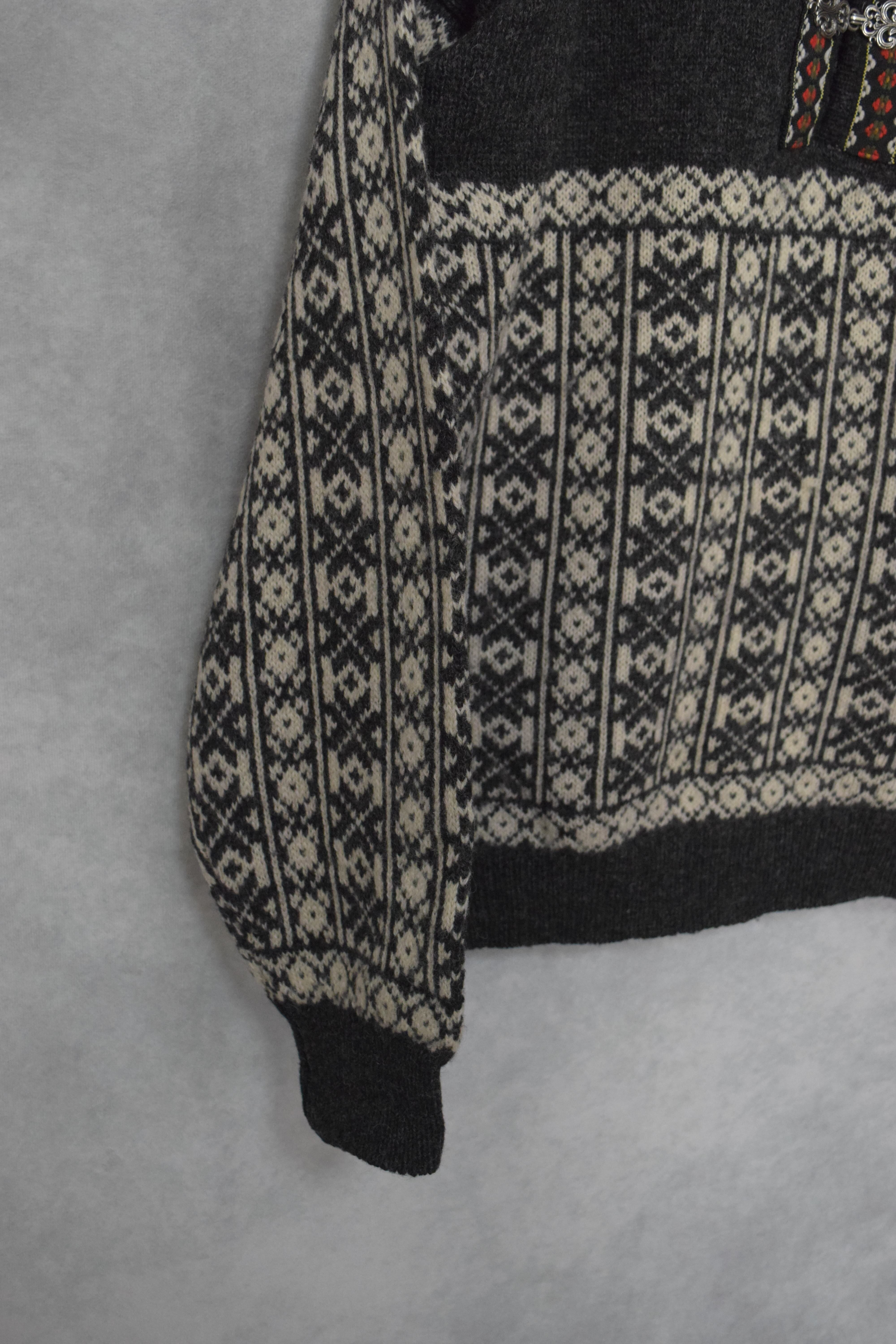 90s wool V-neck nordic knit / size L