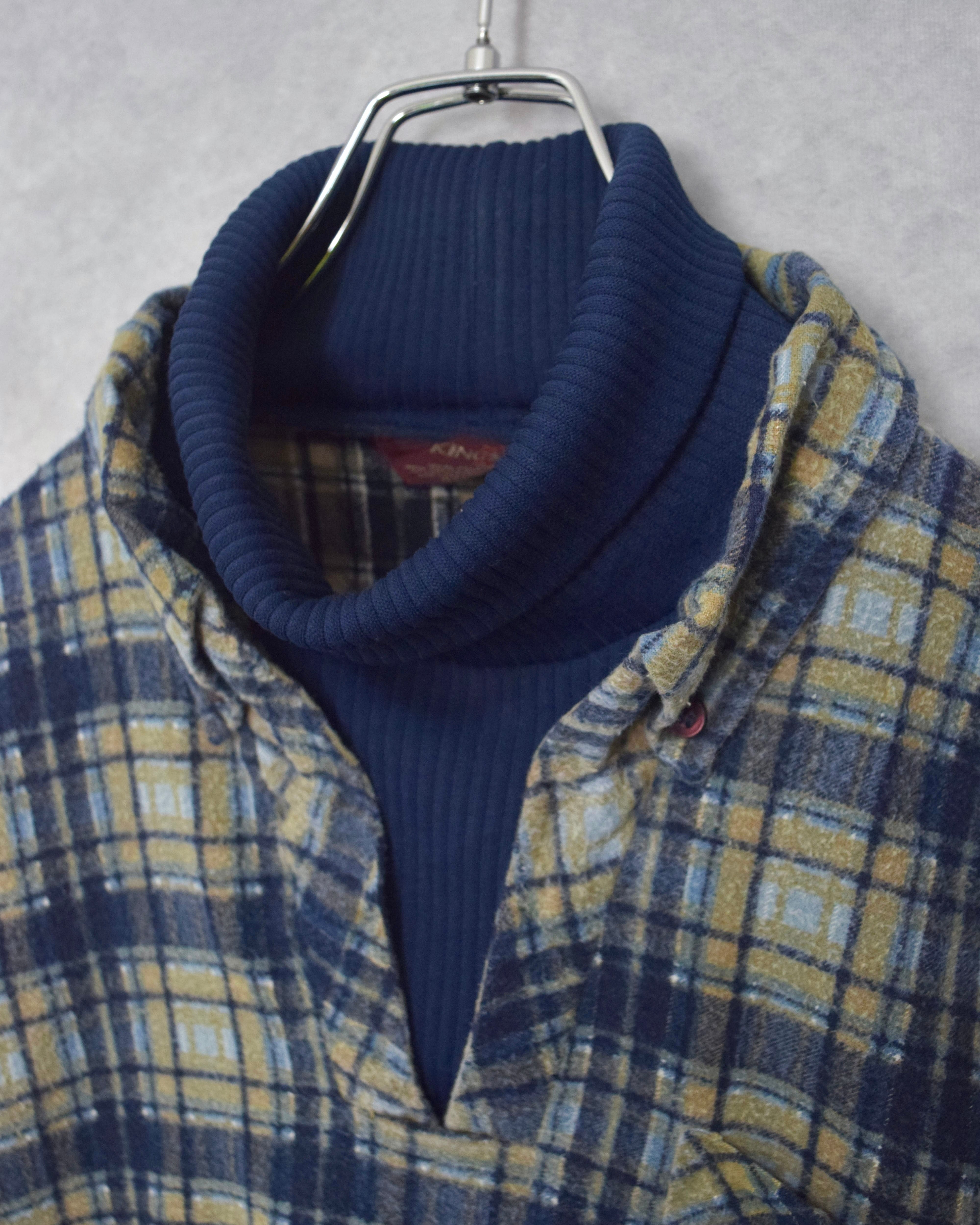 70s " king sport " fake layered cotton printed shirt / size XL(about L)