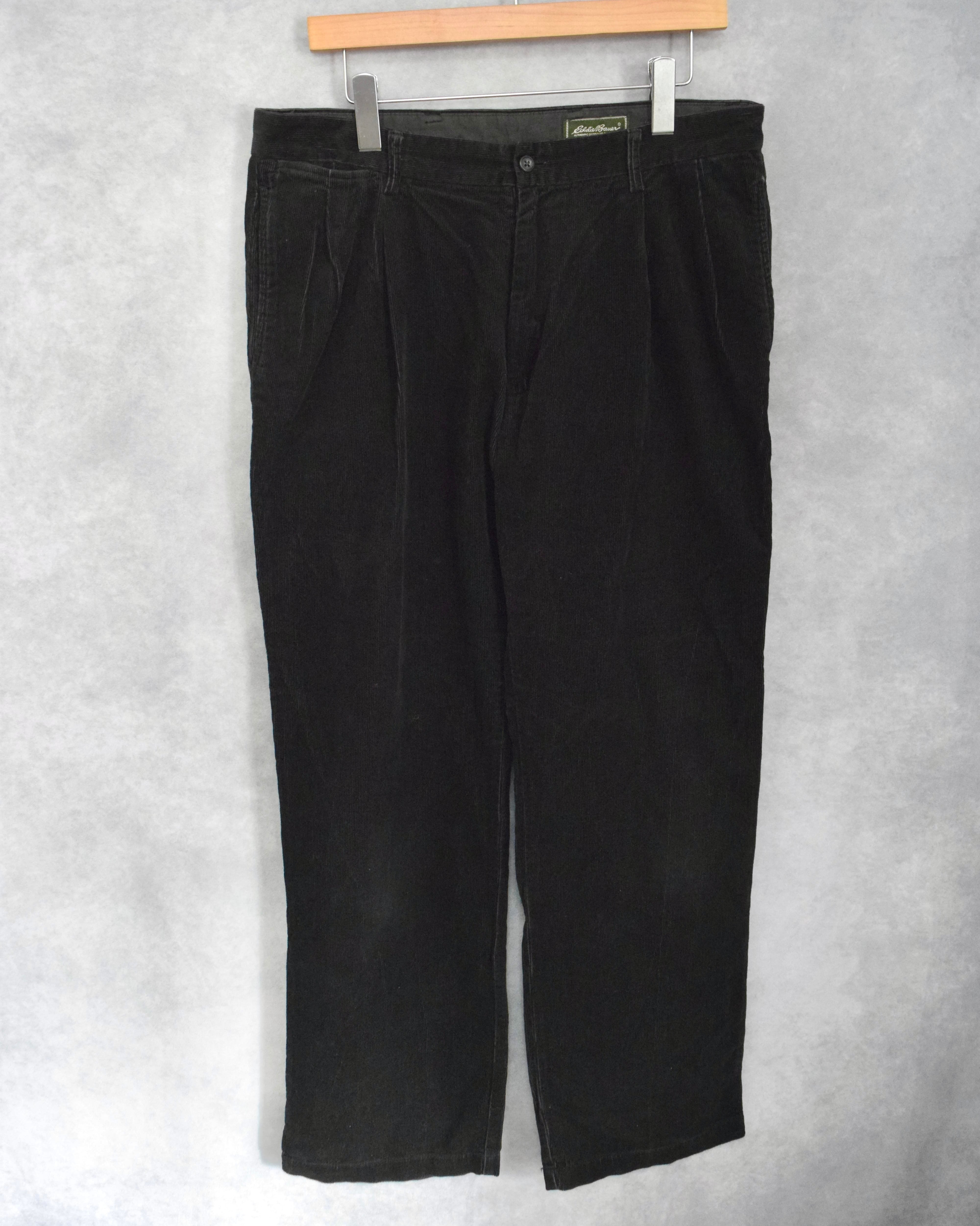 00年代頃のエディバウアーのブラックコーデュロイツータックスラックス。