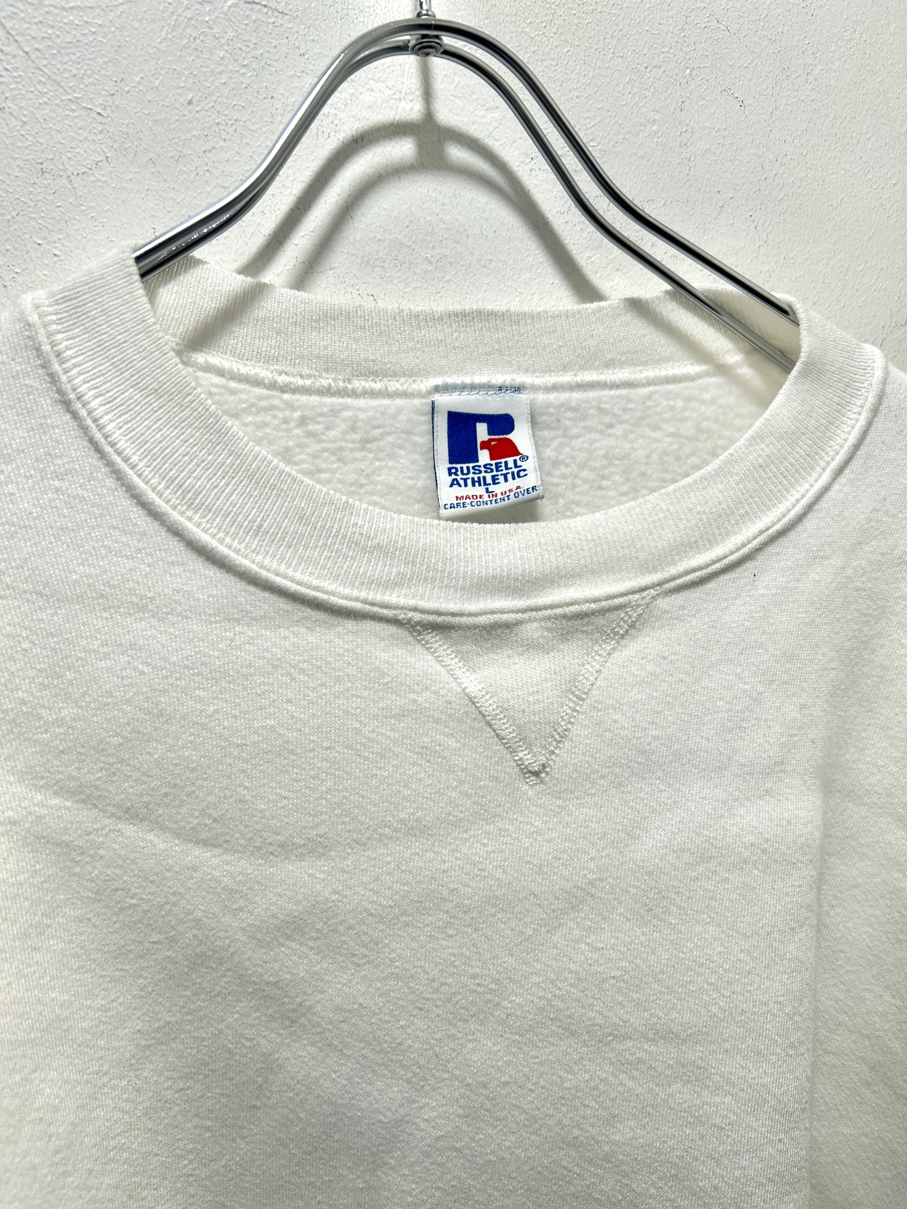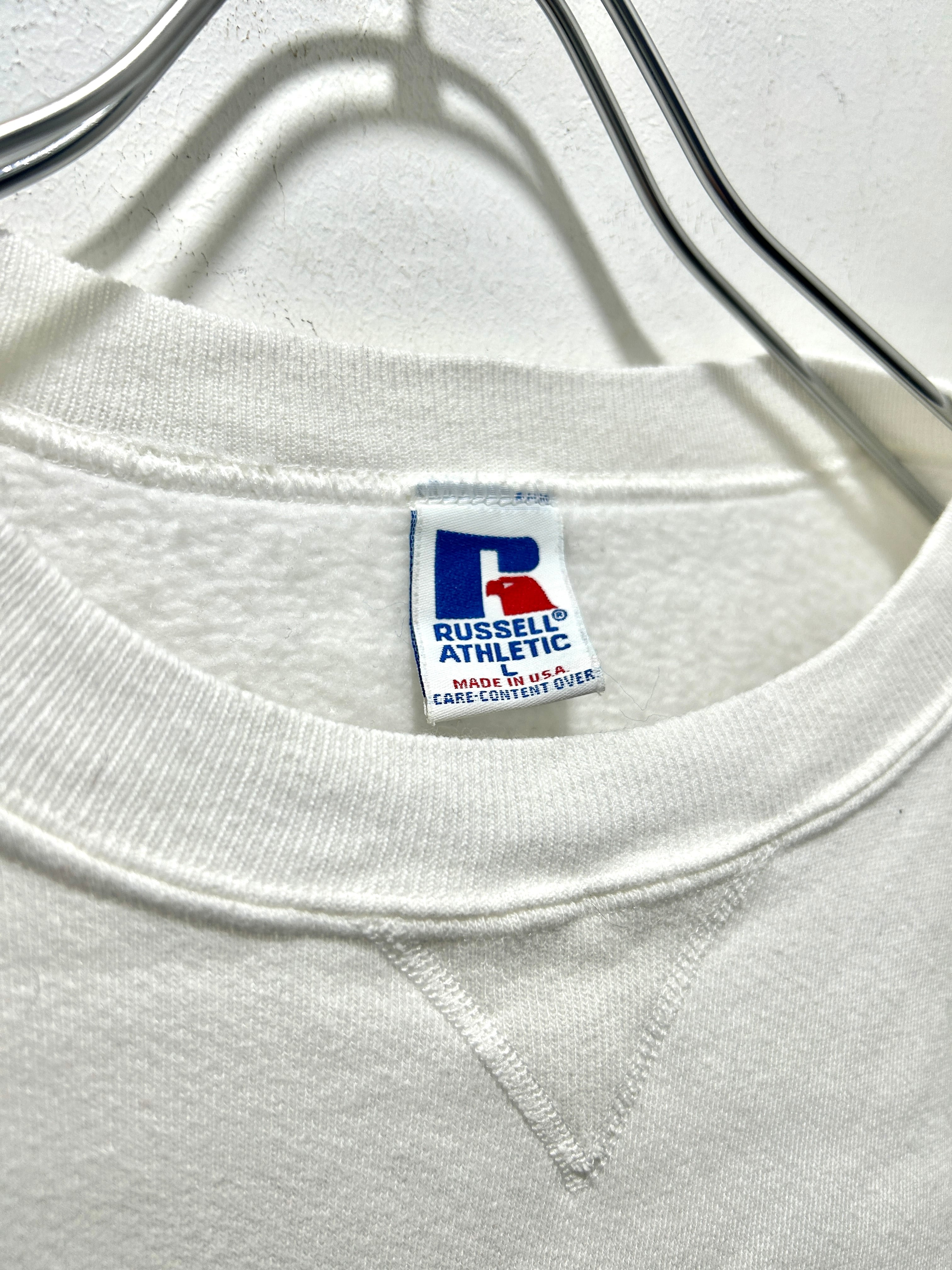 90s " russell athletic " white solid sweatshirt / made in usa / size L