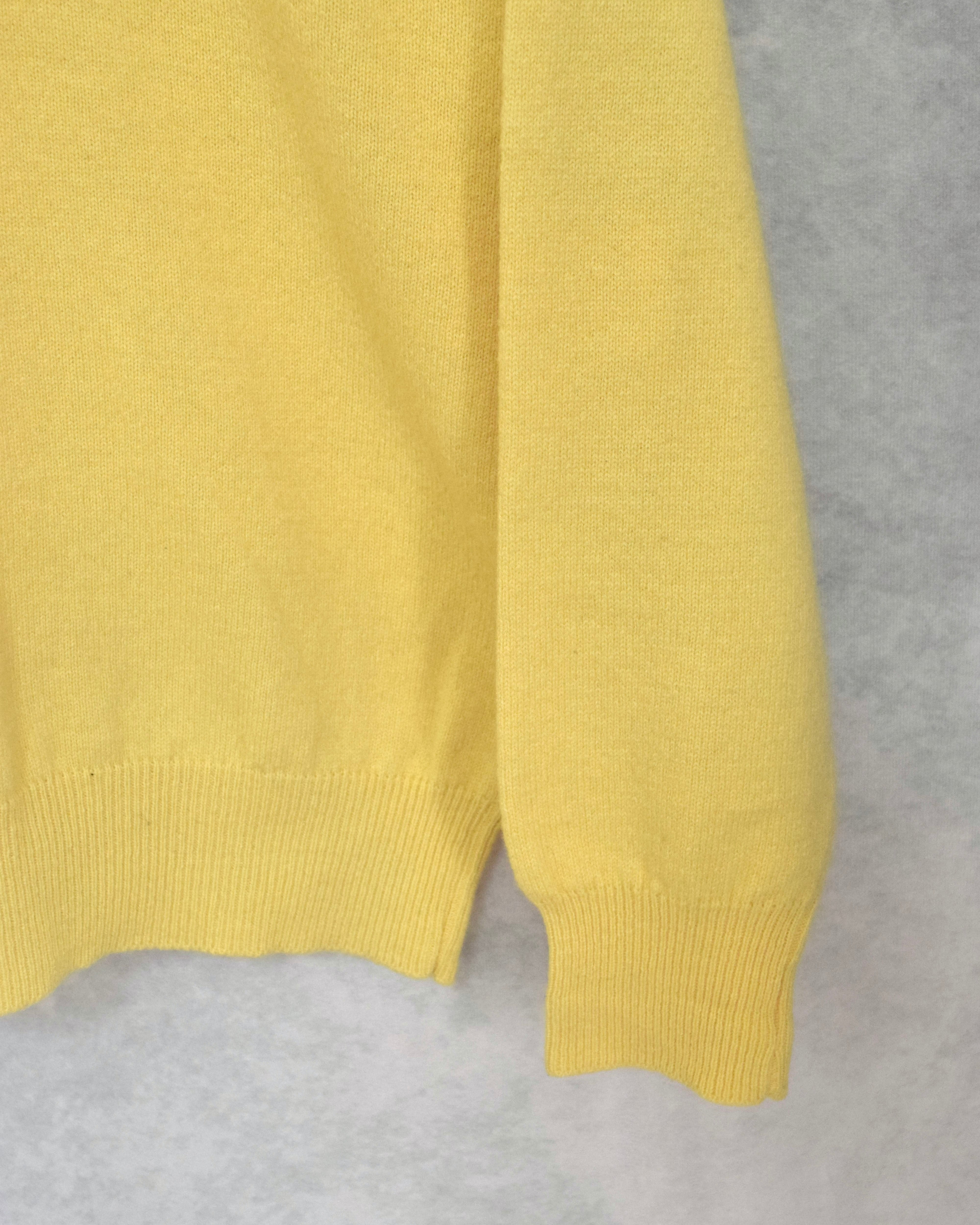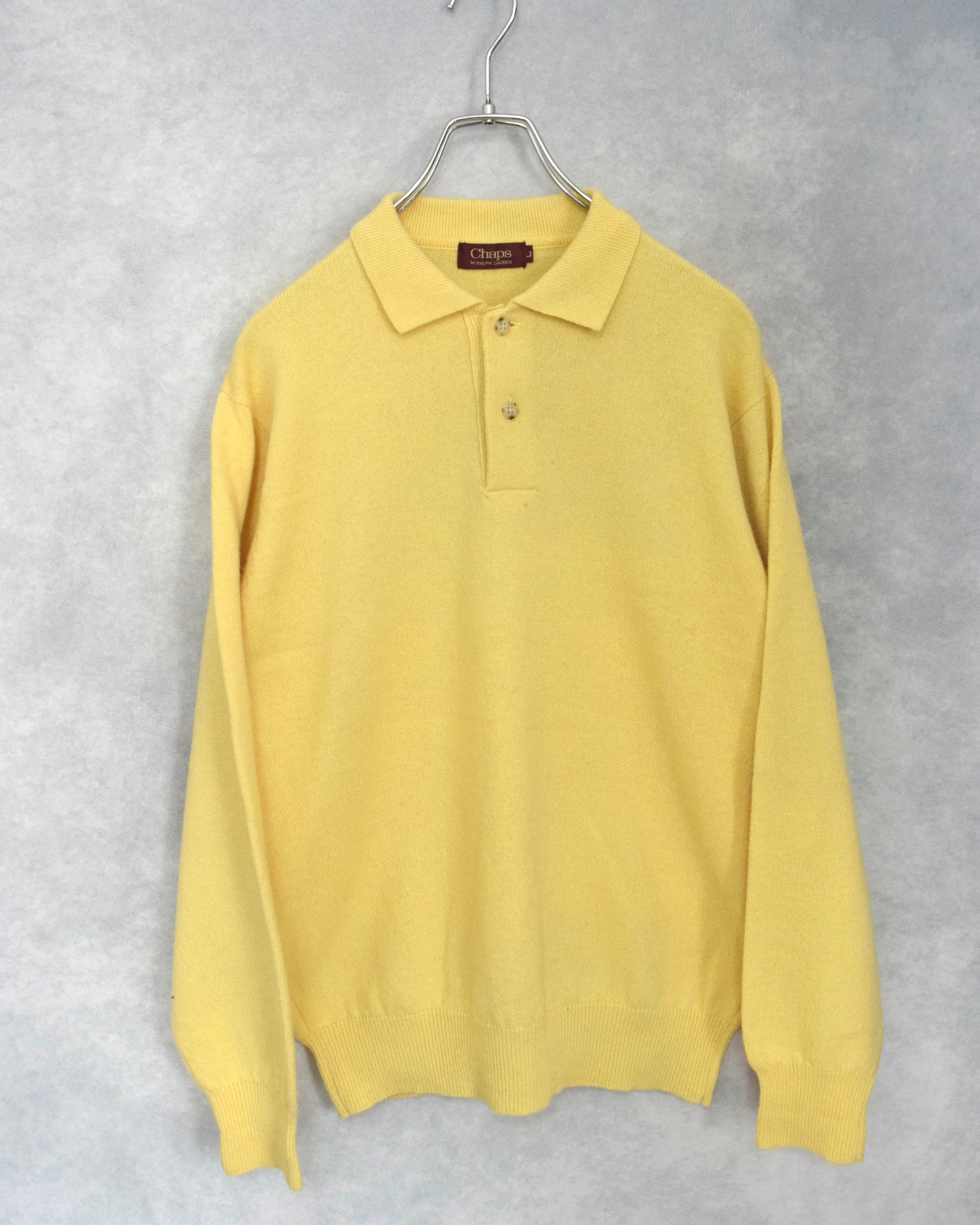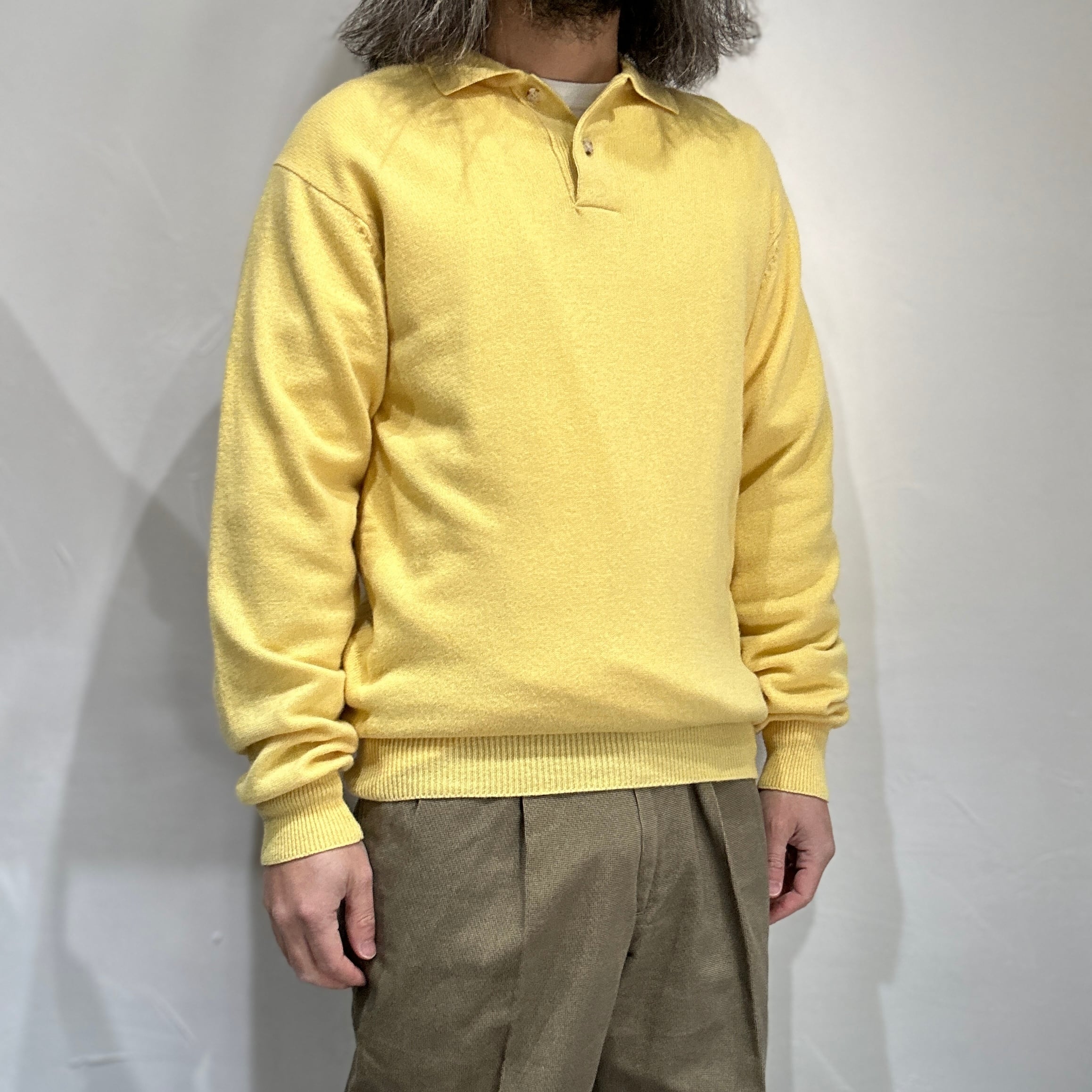 差し色に使えそうな気持ちの良いイエローカラーのウールニットポロ。