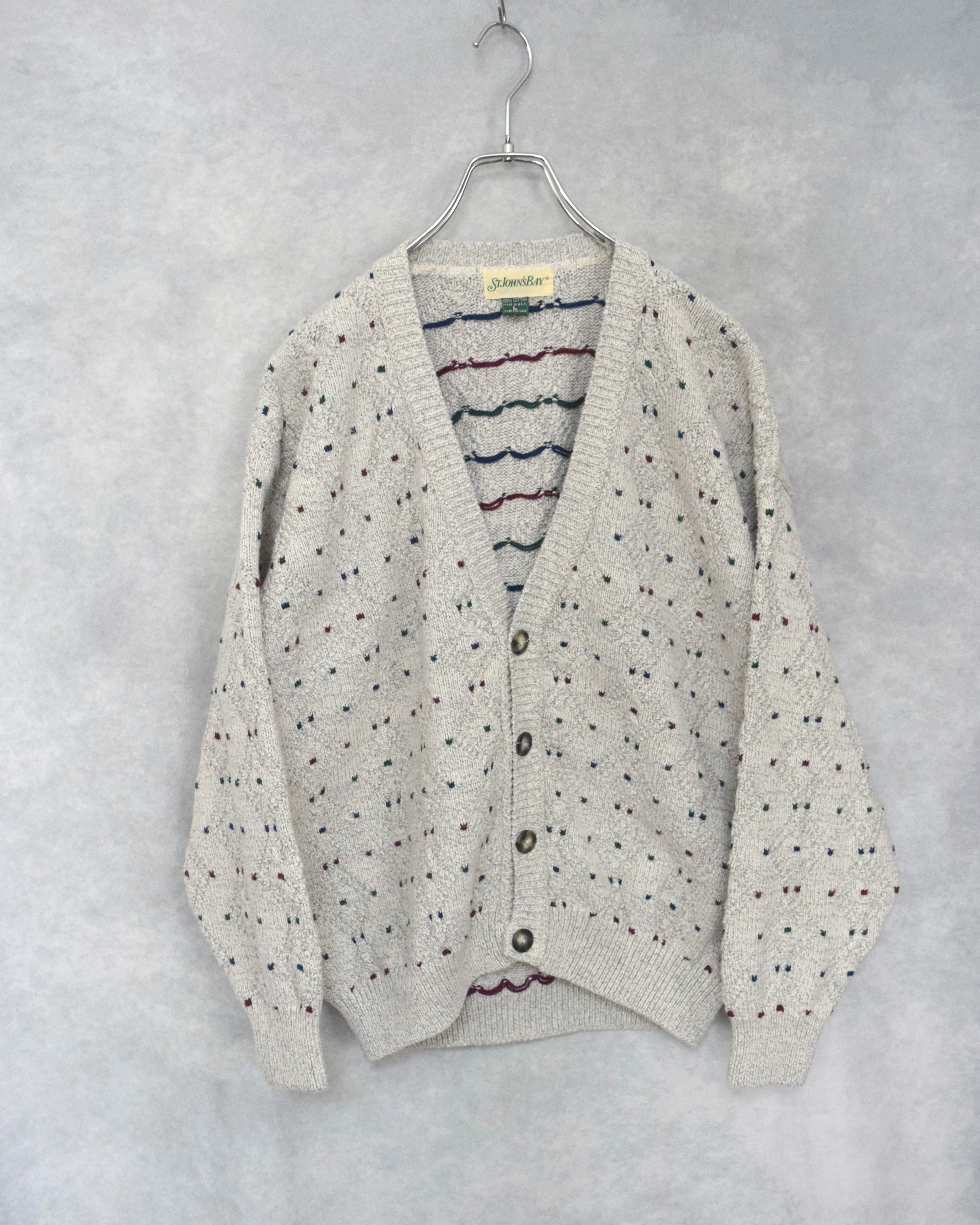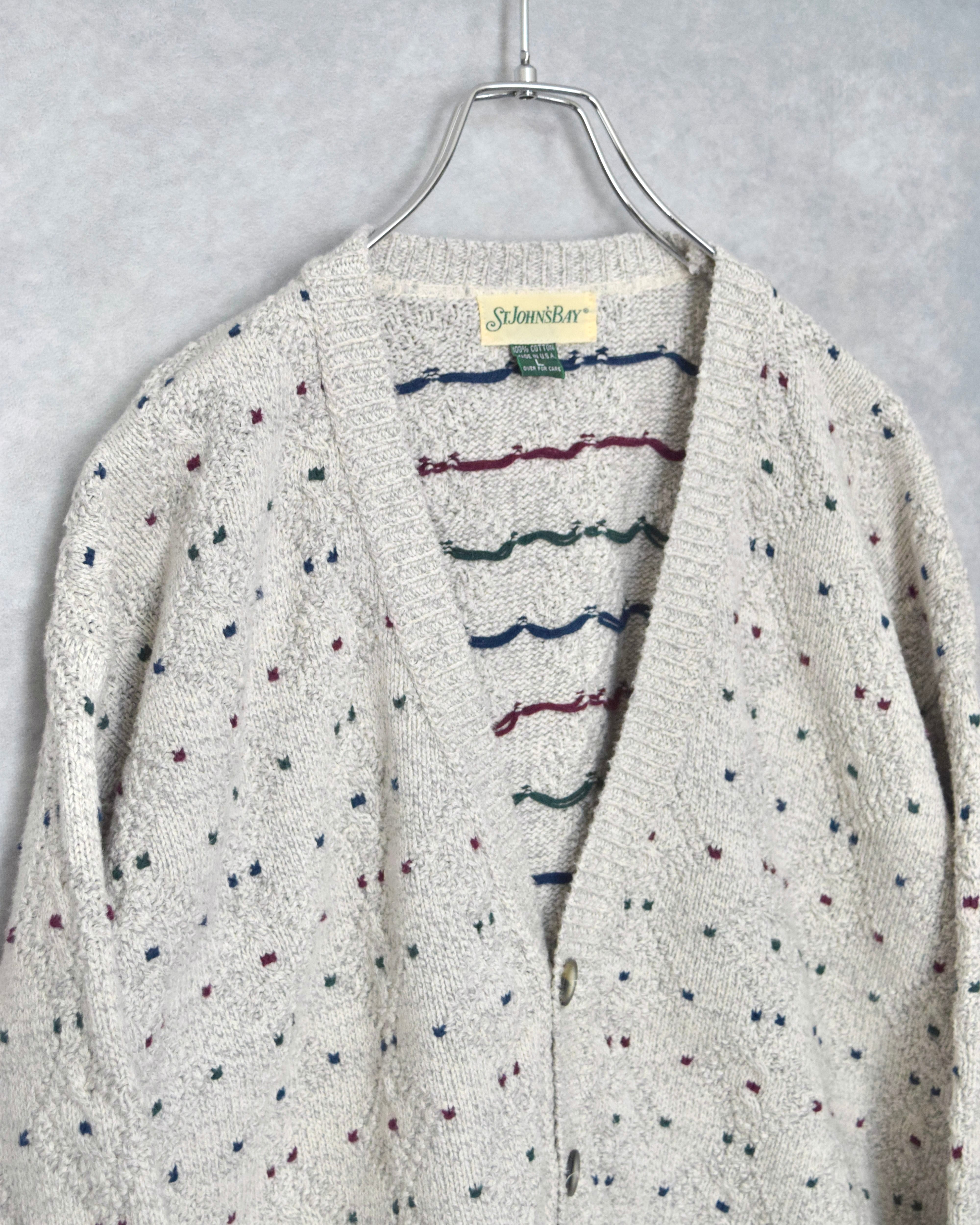 90s " st jones bay " cotton knit cardigan / made in usa / size L