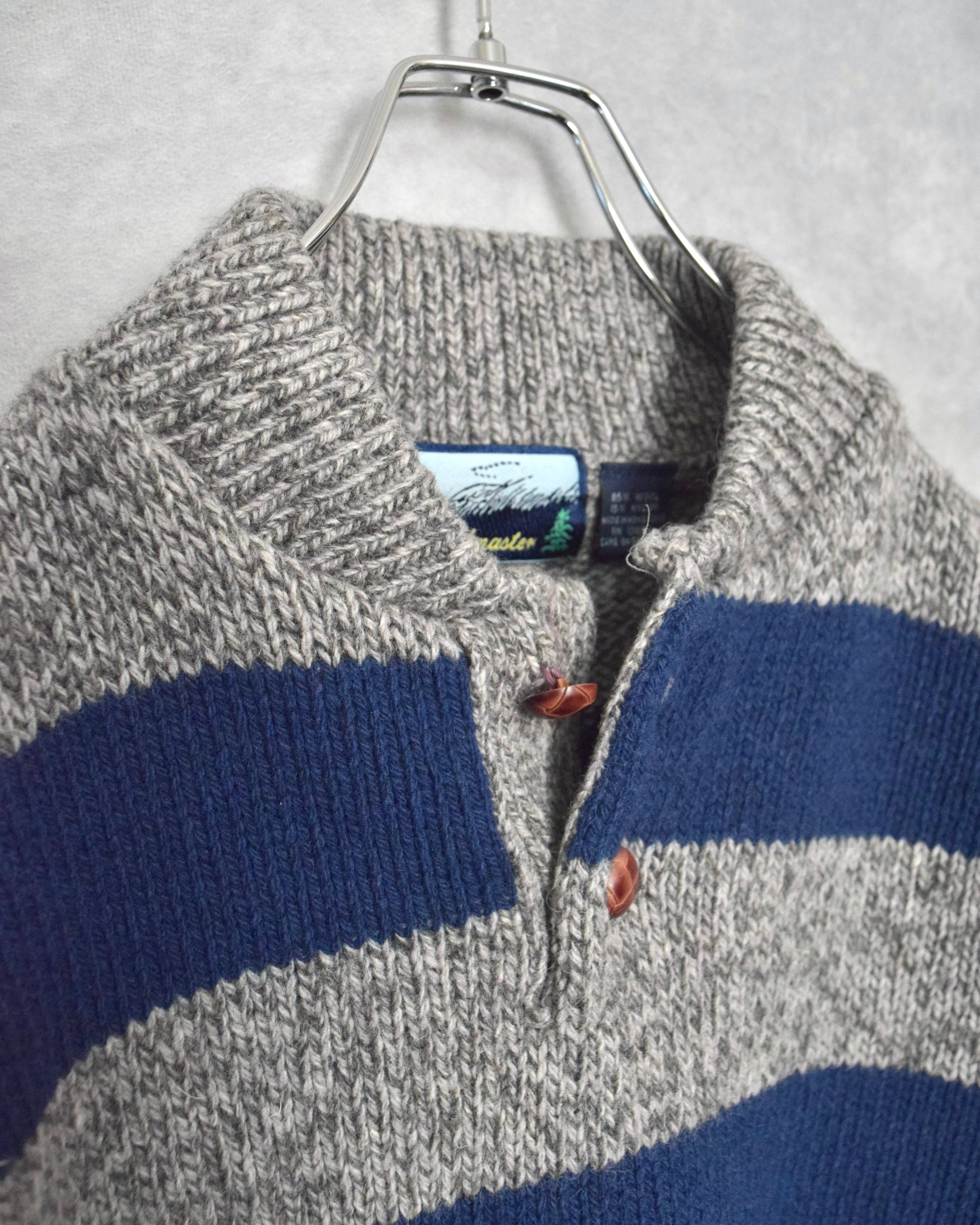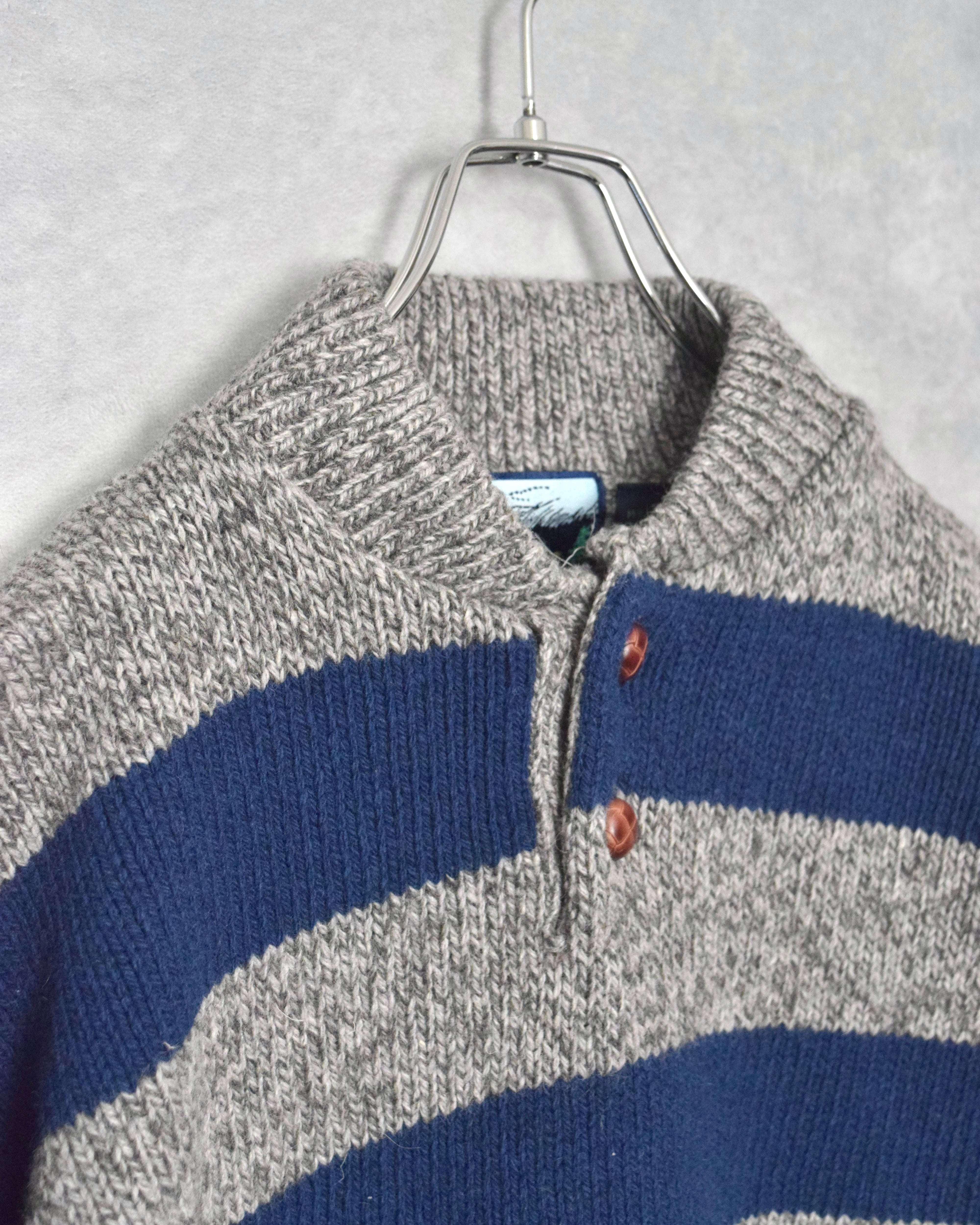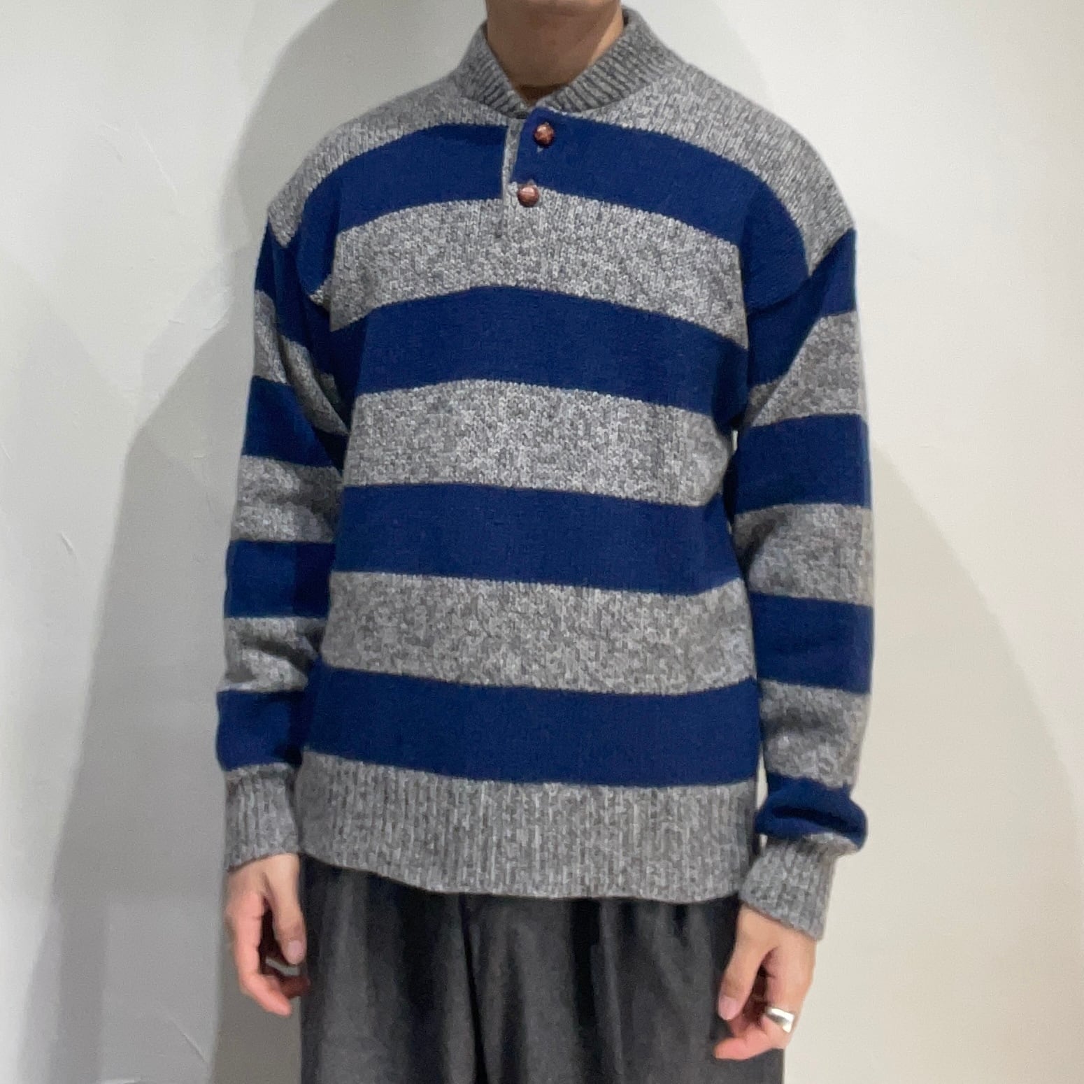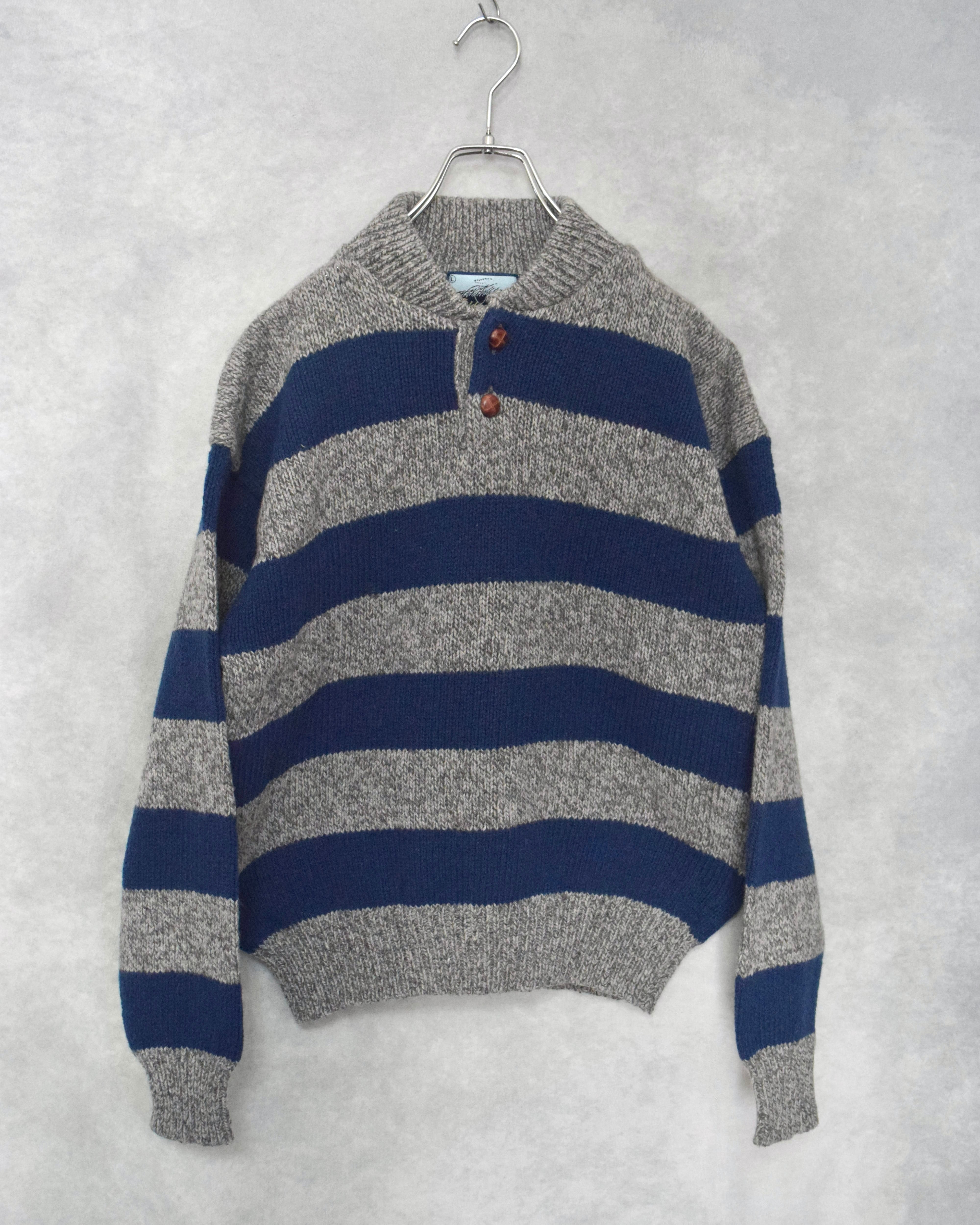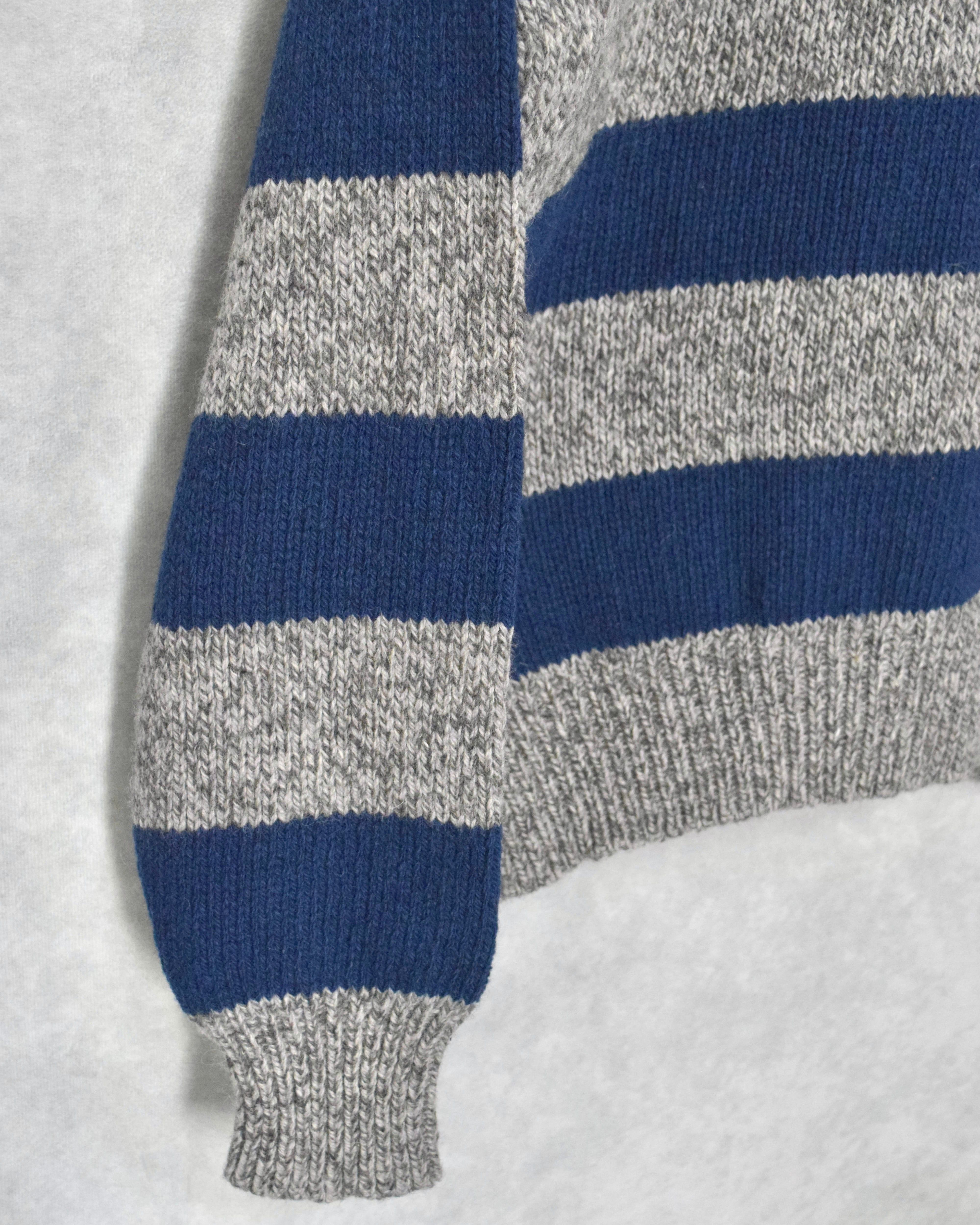 風合いの良いメランジグレーにネイビーのファットボーダーパターン。