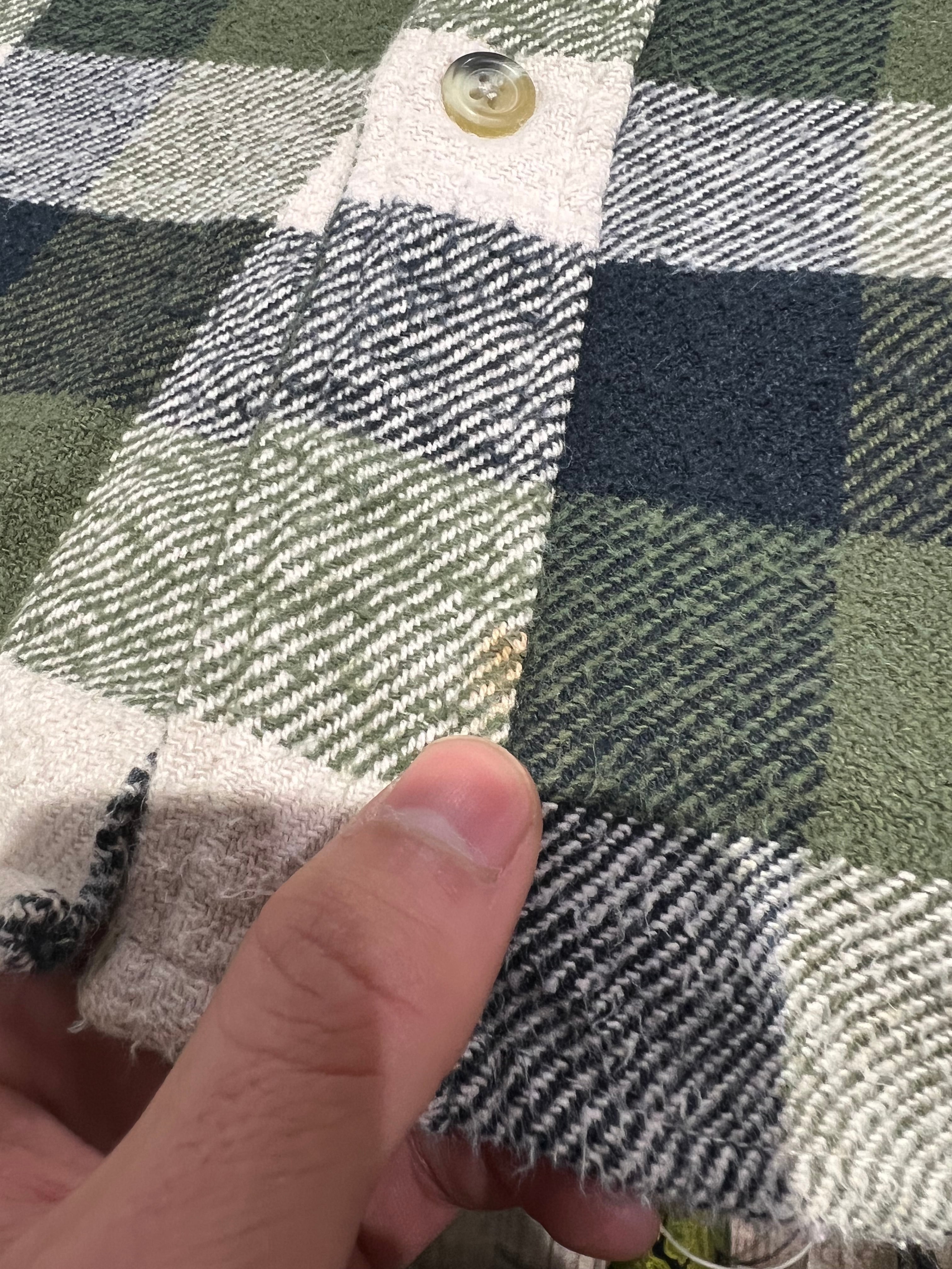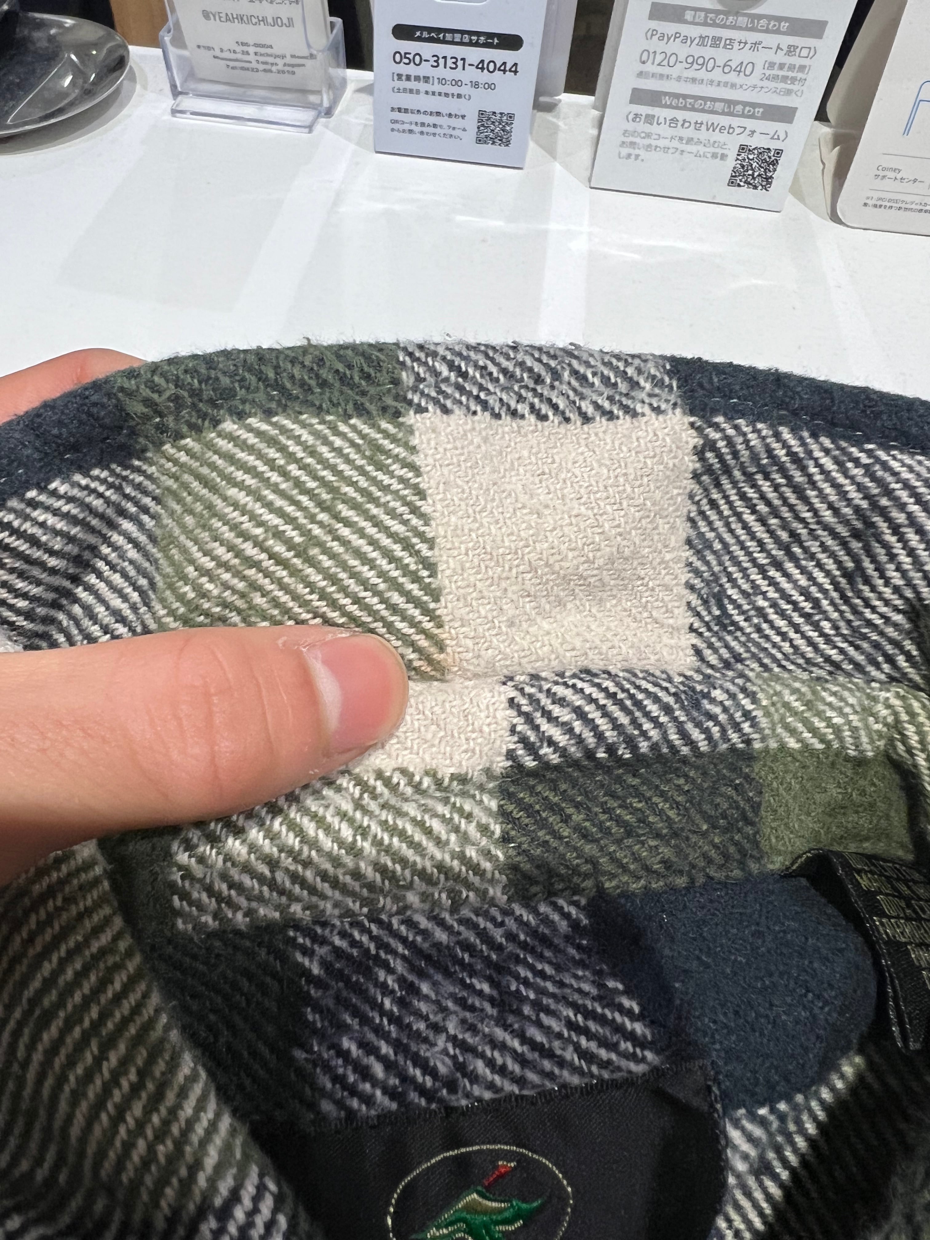 配色はモスグリーンxホワイトxブラックのチェック柄。