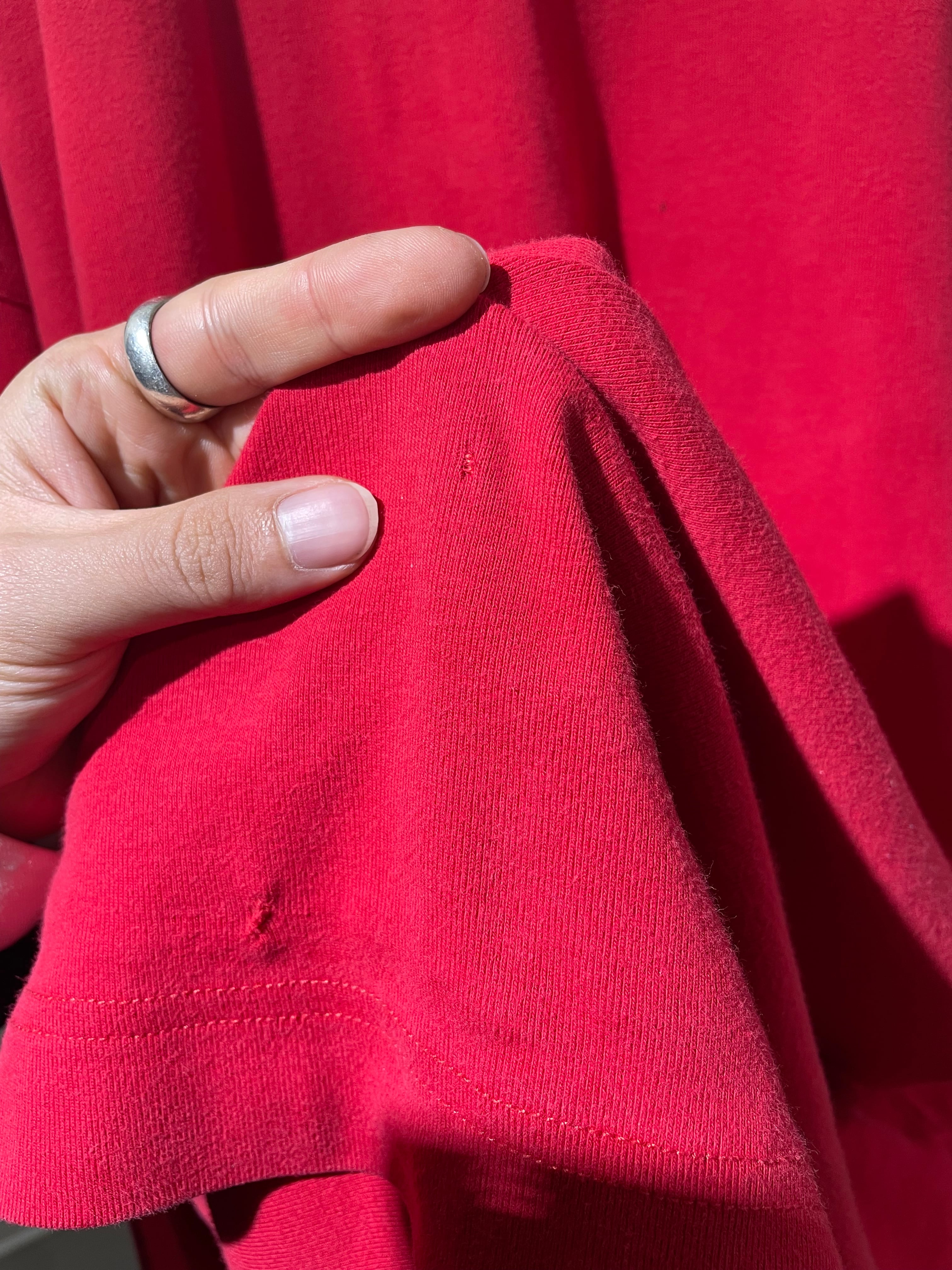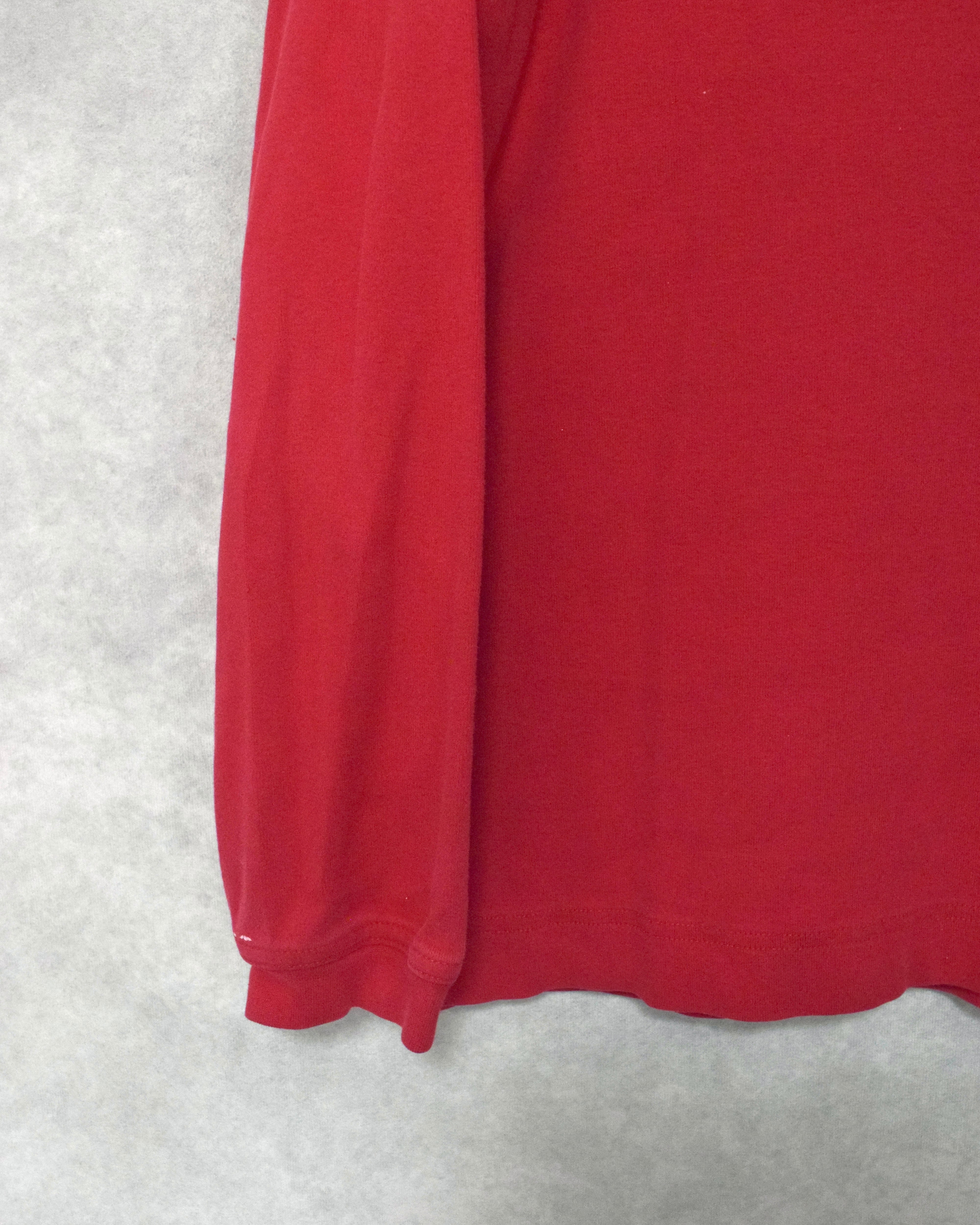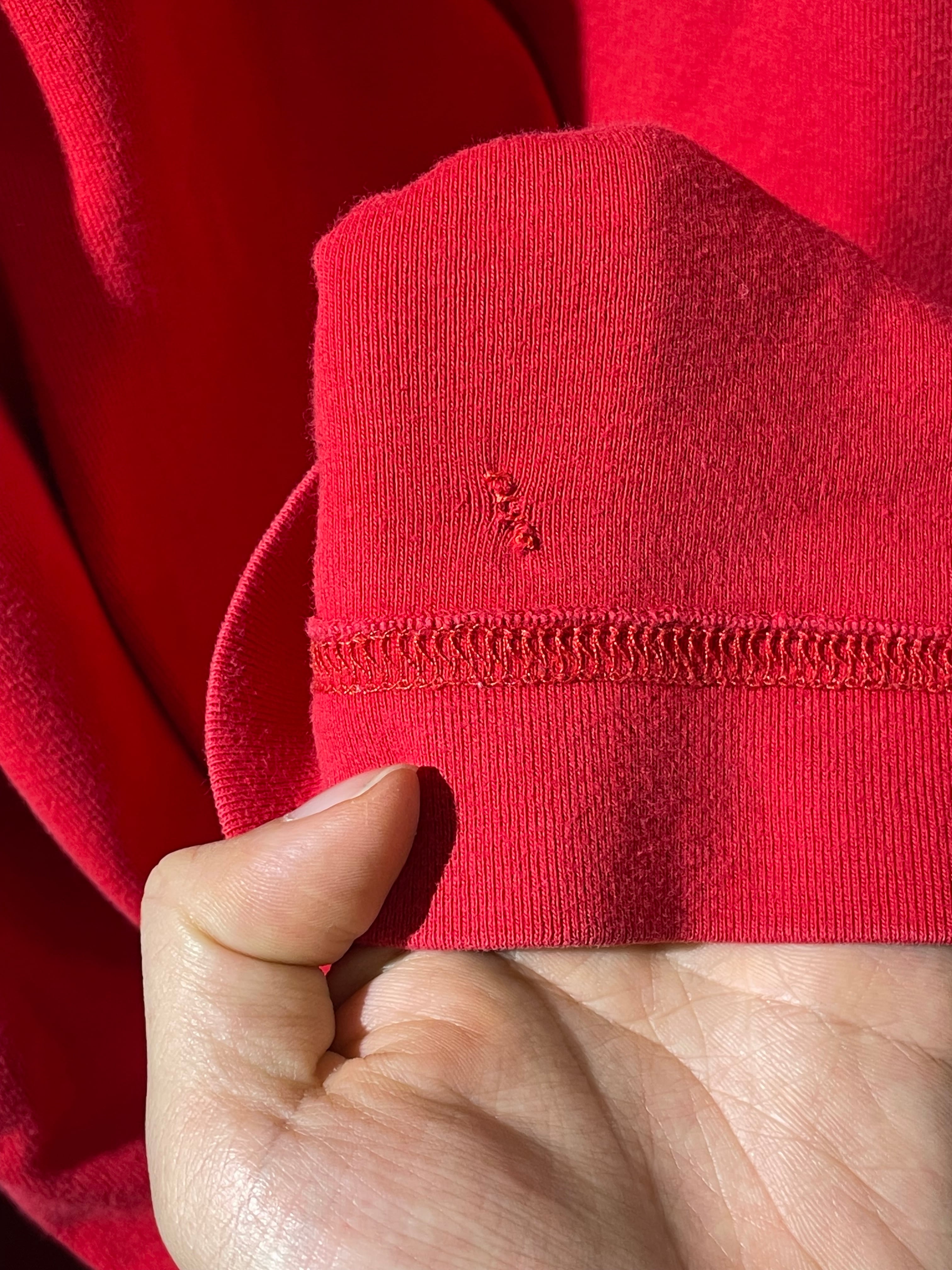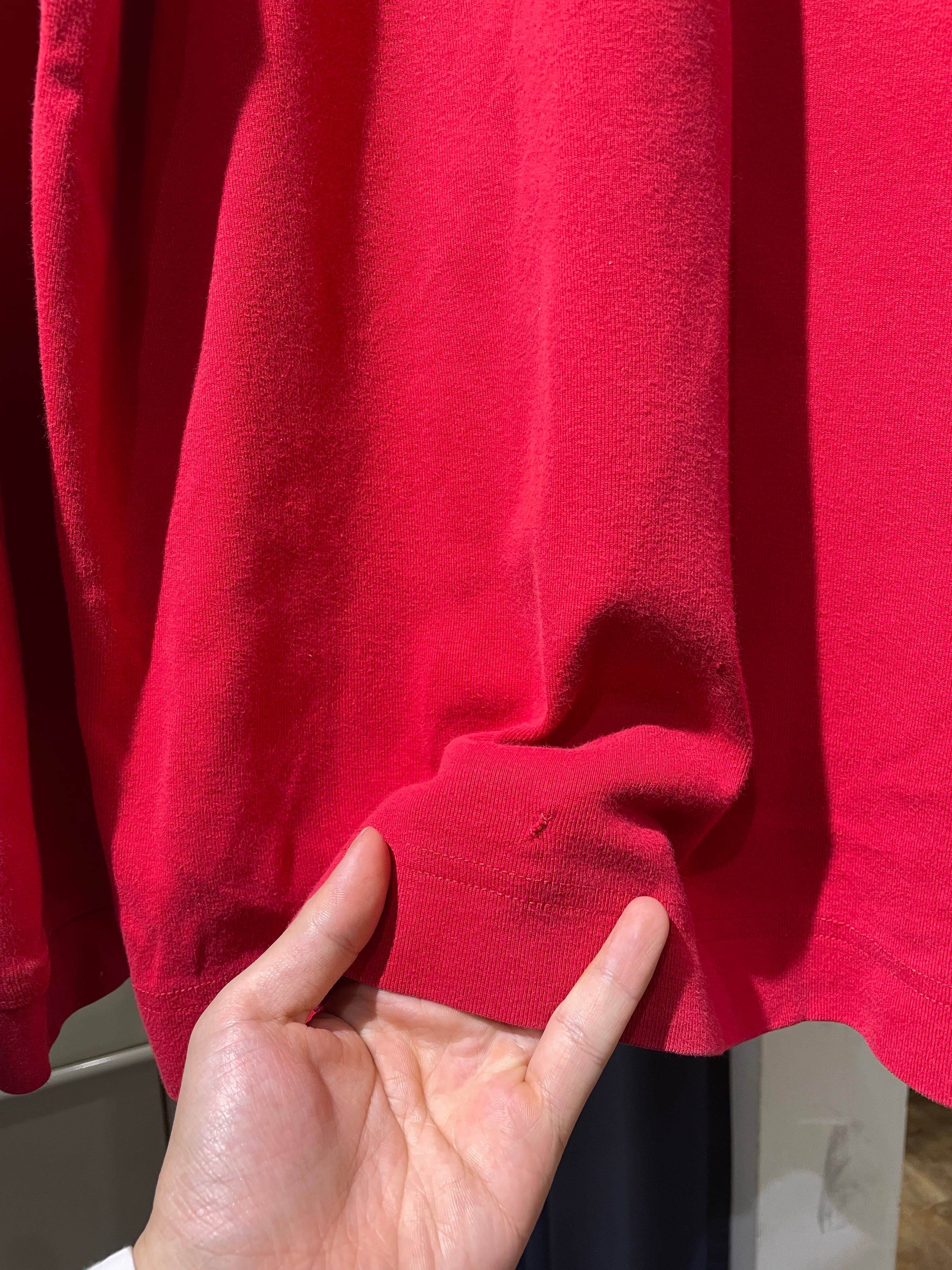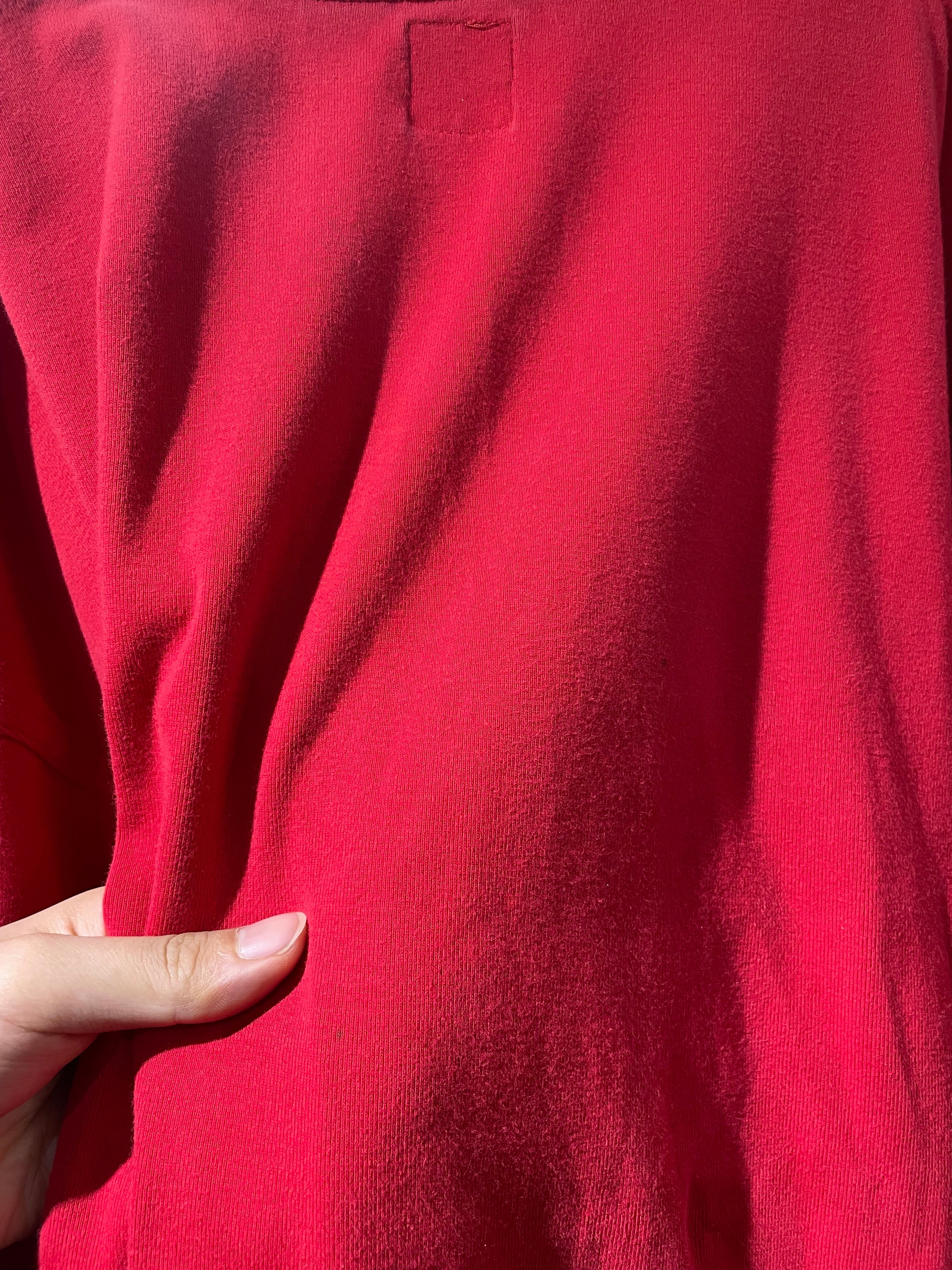 発色の良い赤色のインナー、一枚持っていると何かと出番の多い1着かと思います。
