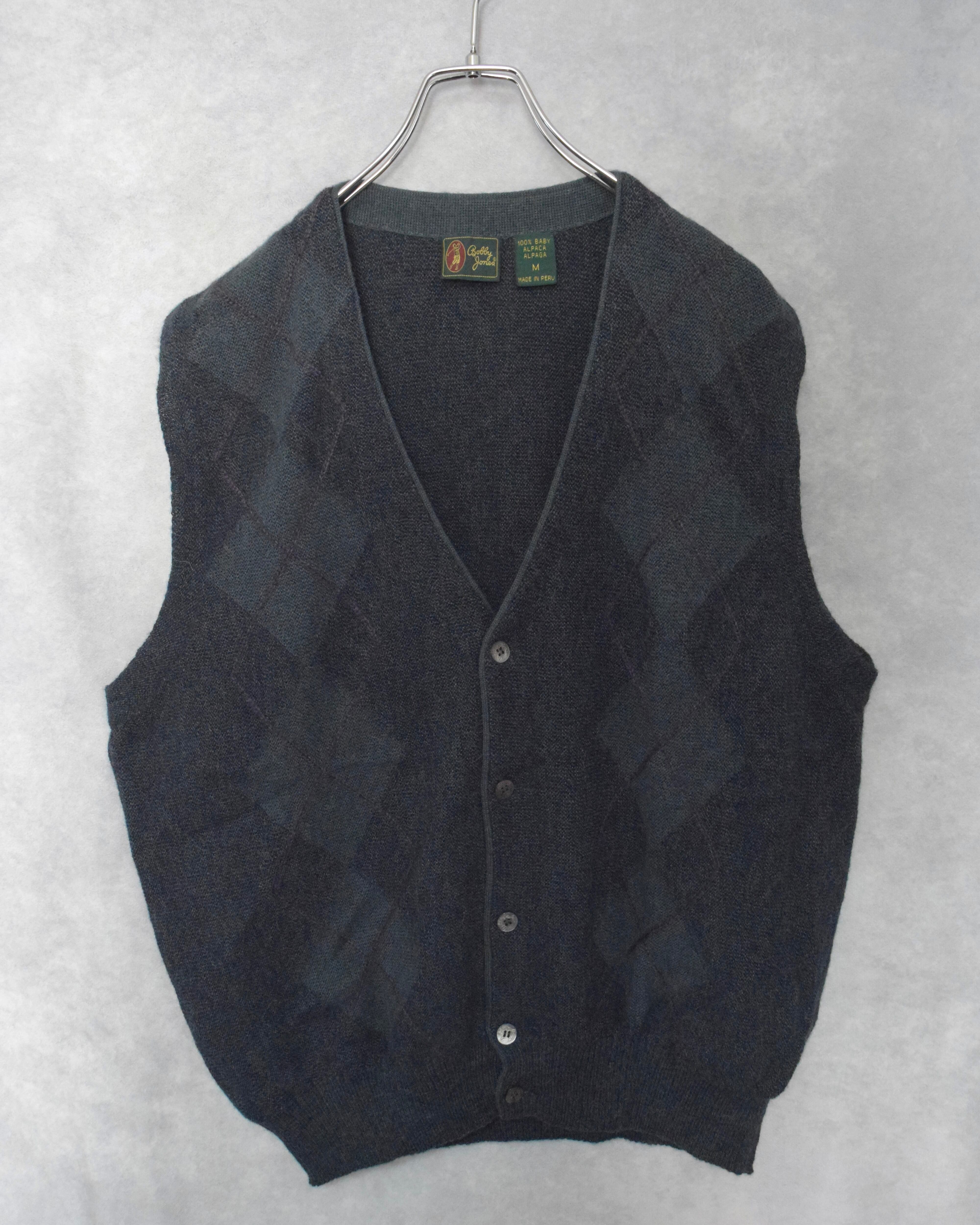 またアーガイルというスコットランド伝統の柄に南アメリカであるペルーの名産素材アルパカを使用して生産している、というのが古着好きには刺さるポイントかと思います。