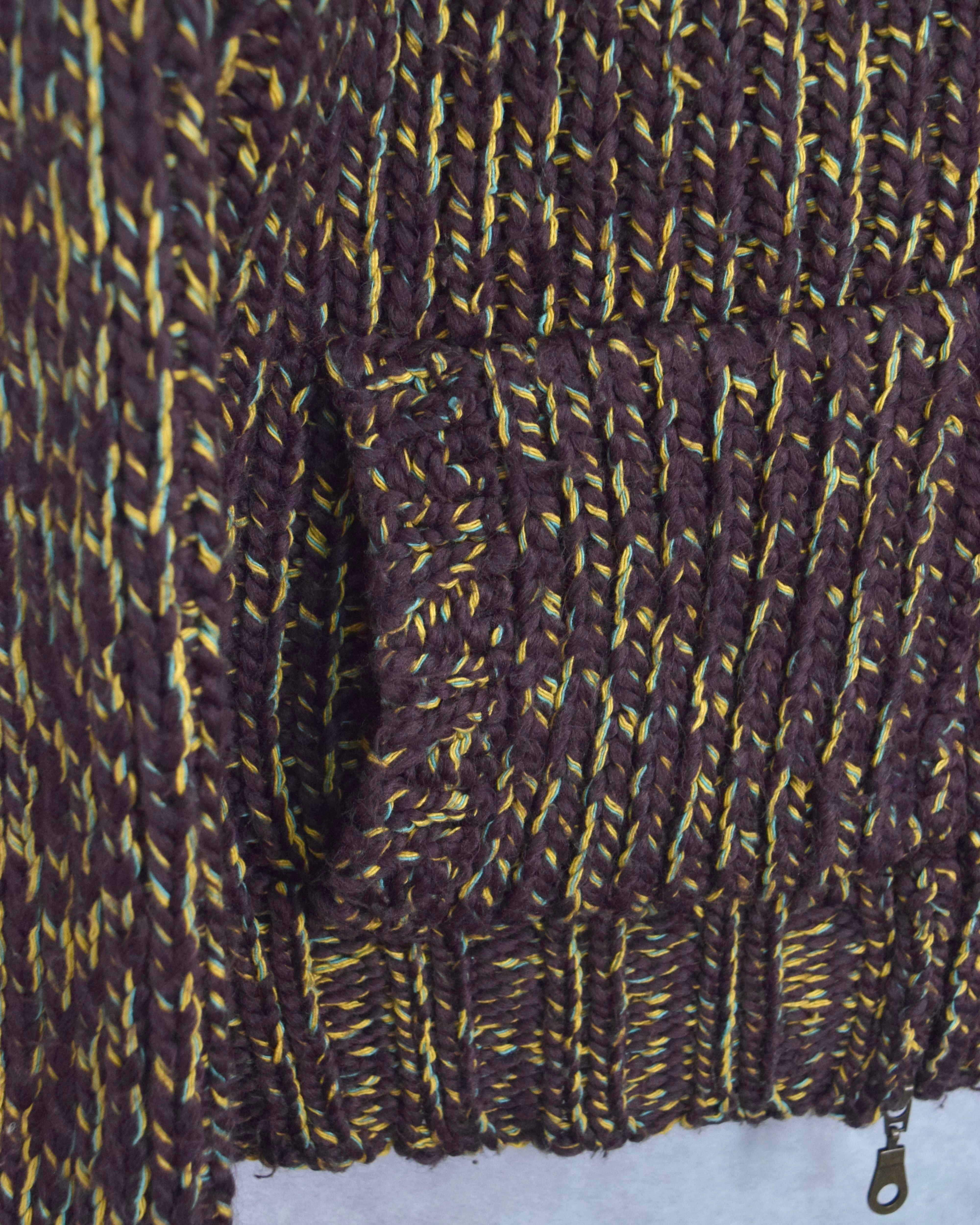 ポケット上の編みとラインを合わせているところにこだわりを感じます。