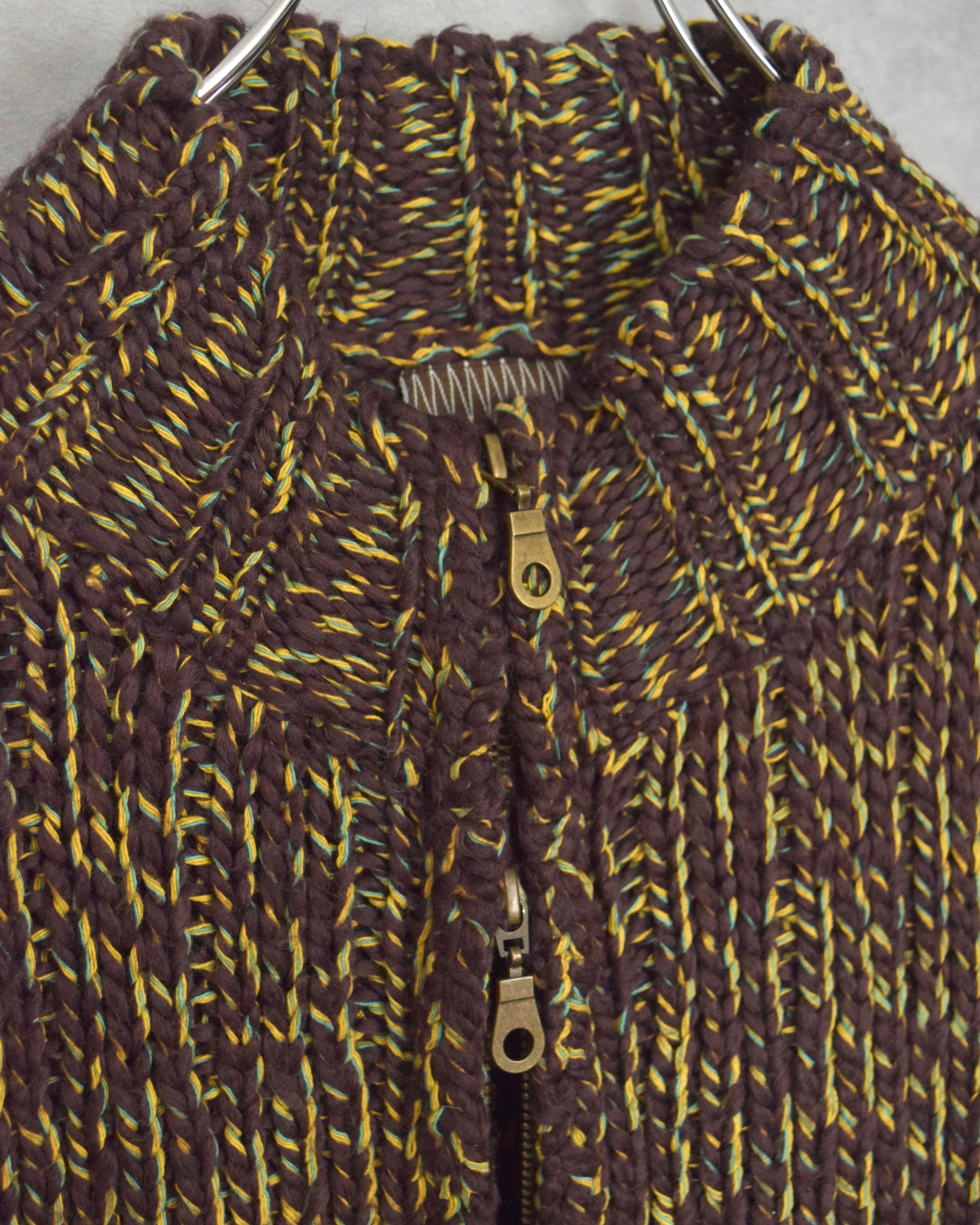 太めなブラウンと細めなイエロー、ティファニーブルーの糸を使用したミックスカラー。