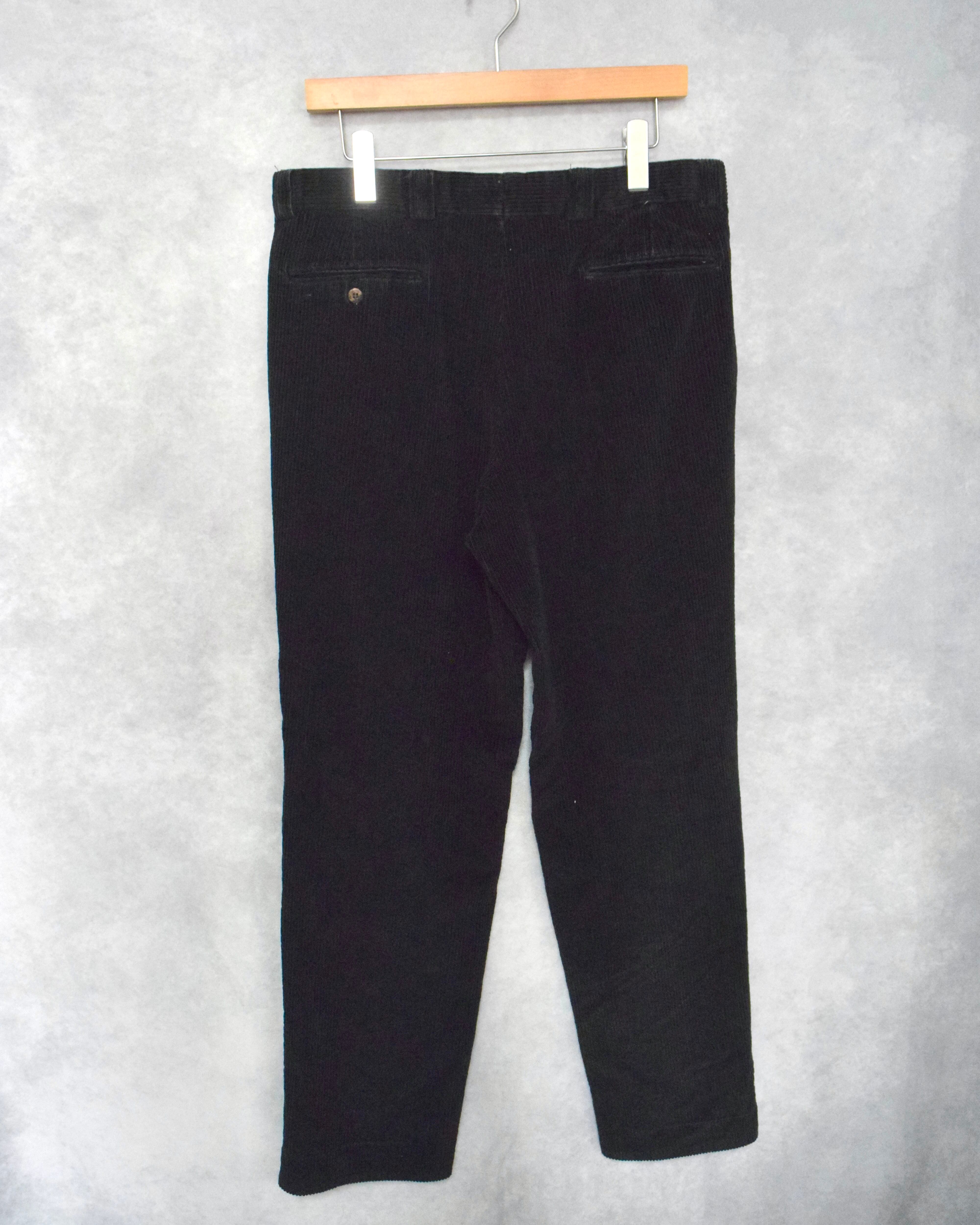 00s black wide corduroy two tuck slacks / size 35 × 32