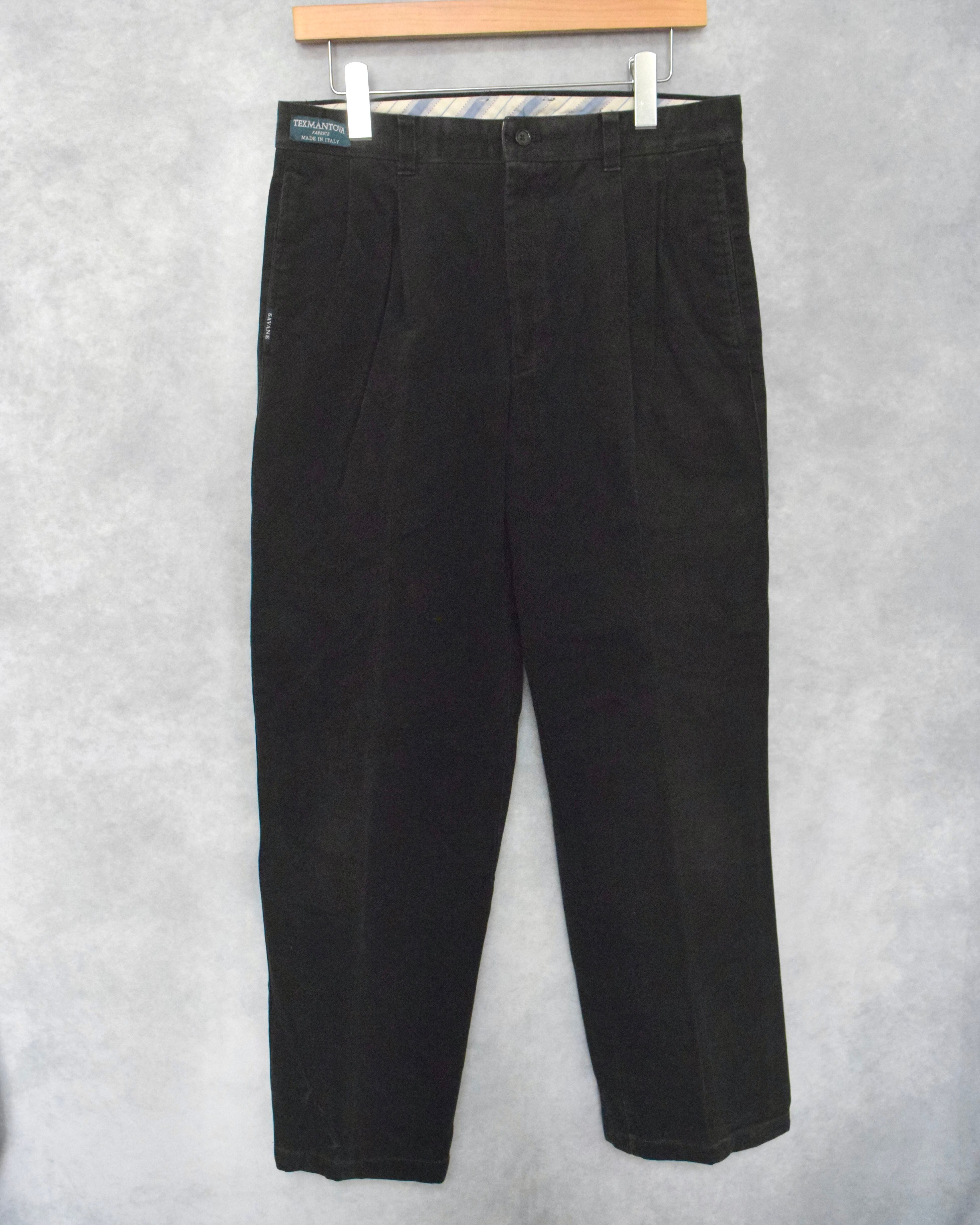 90s " savane " black heavy cotton two tuck slacks / size 33 × 31