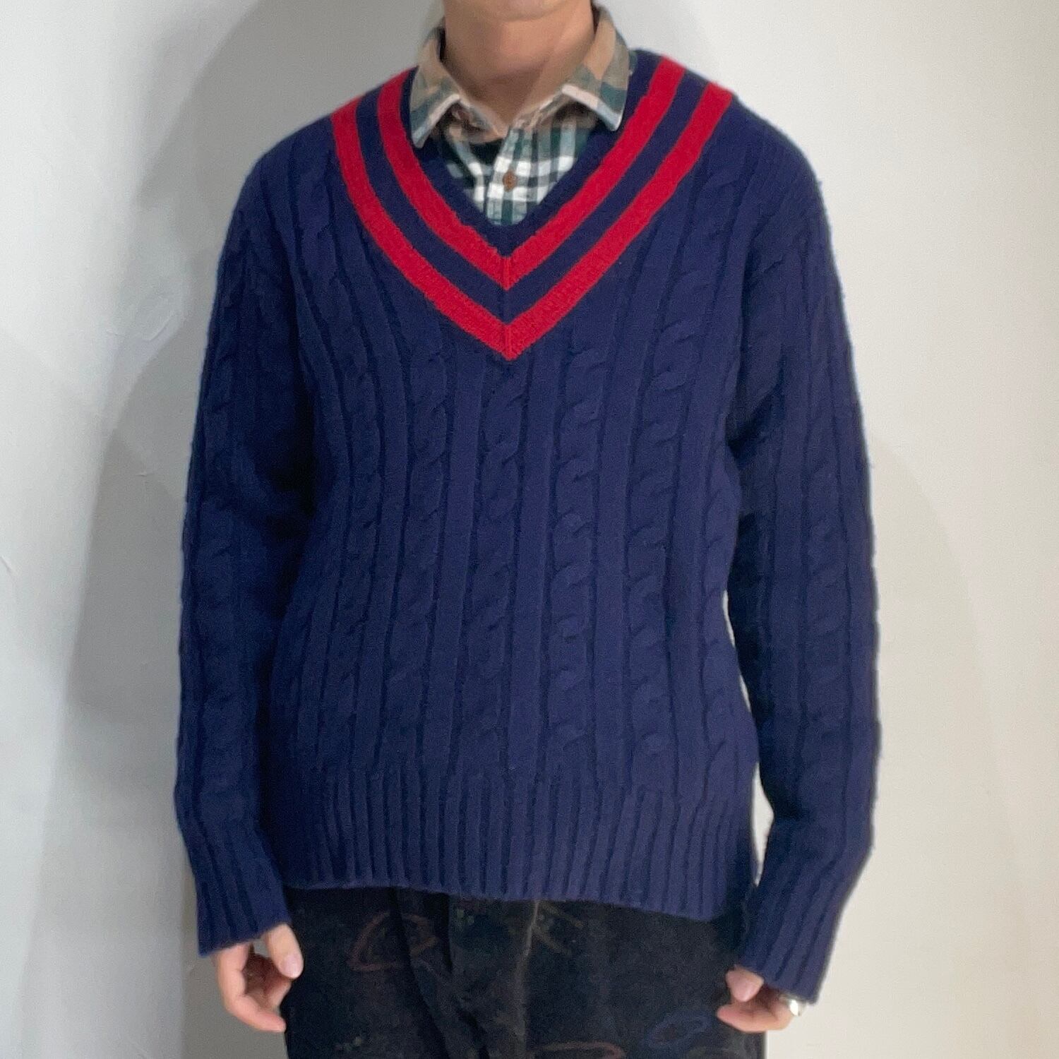デザインは正統派なチルデンニット。